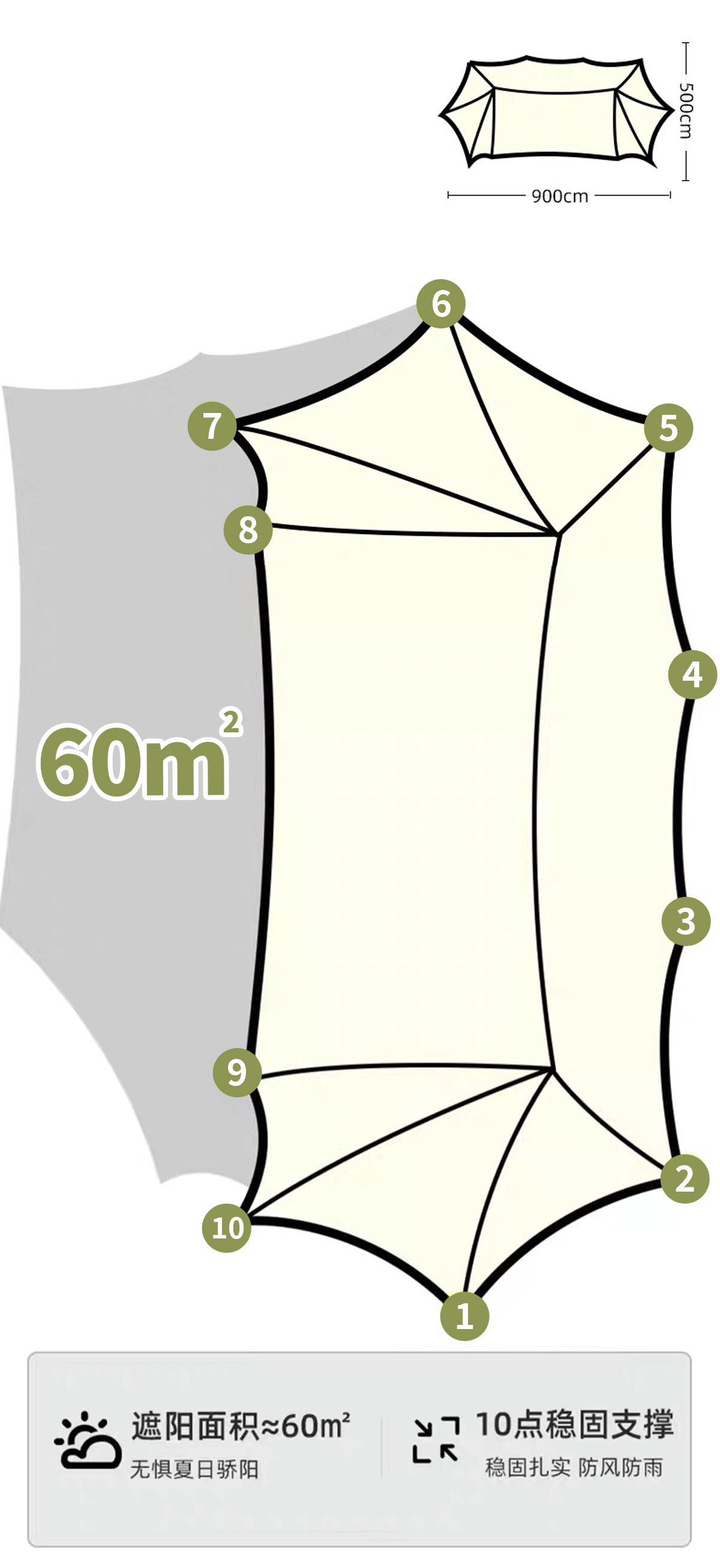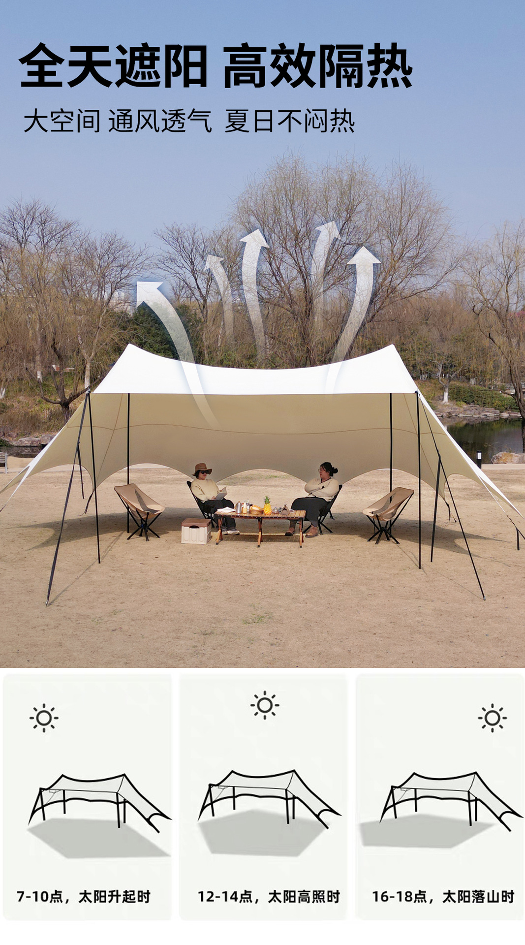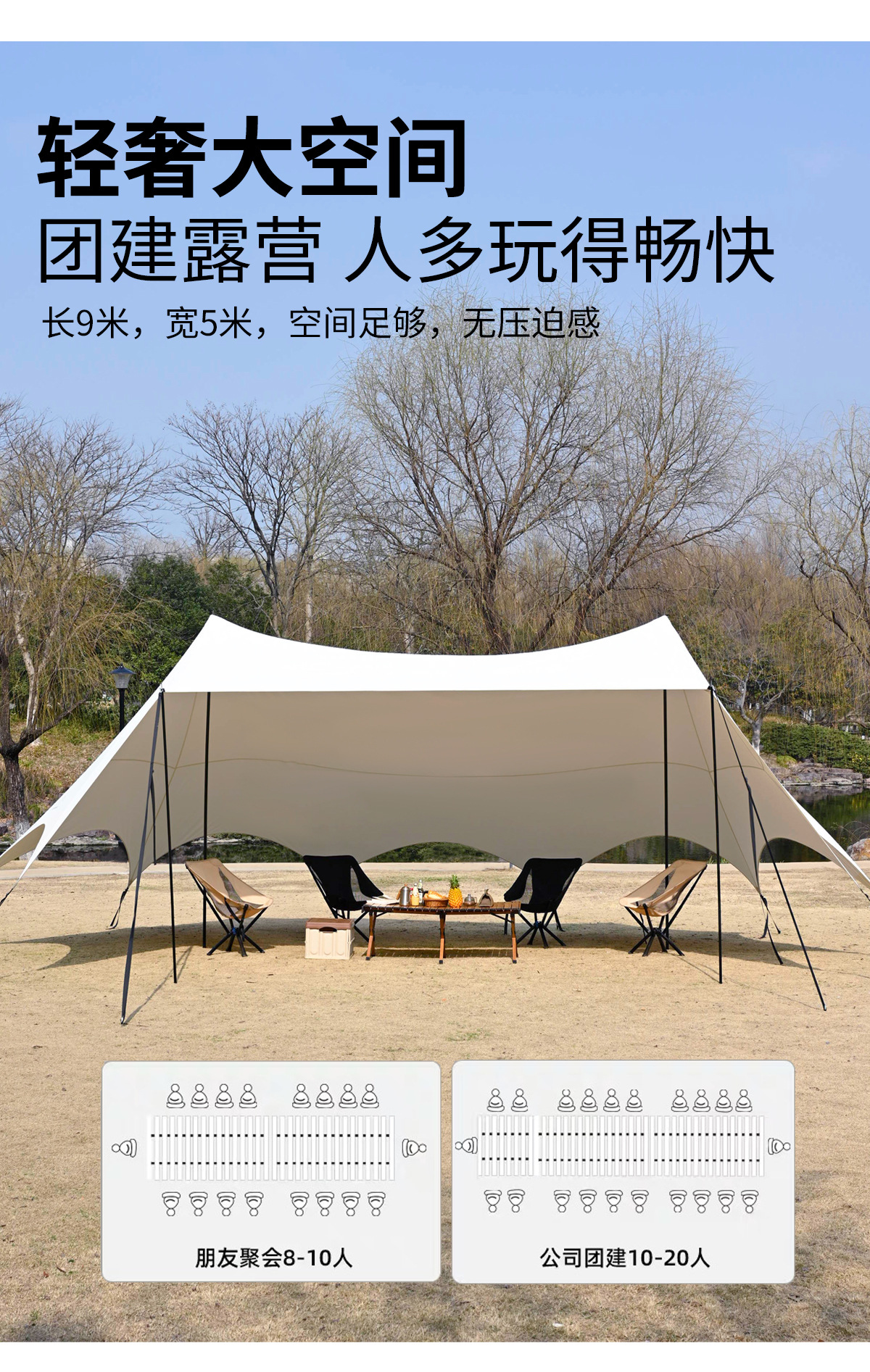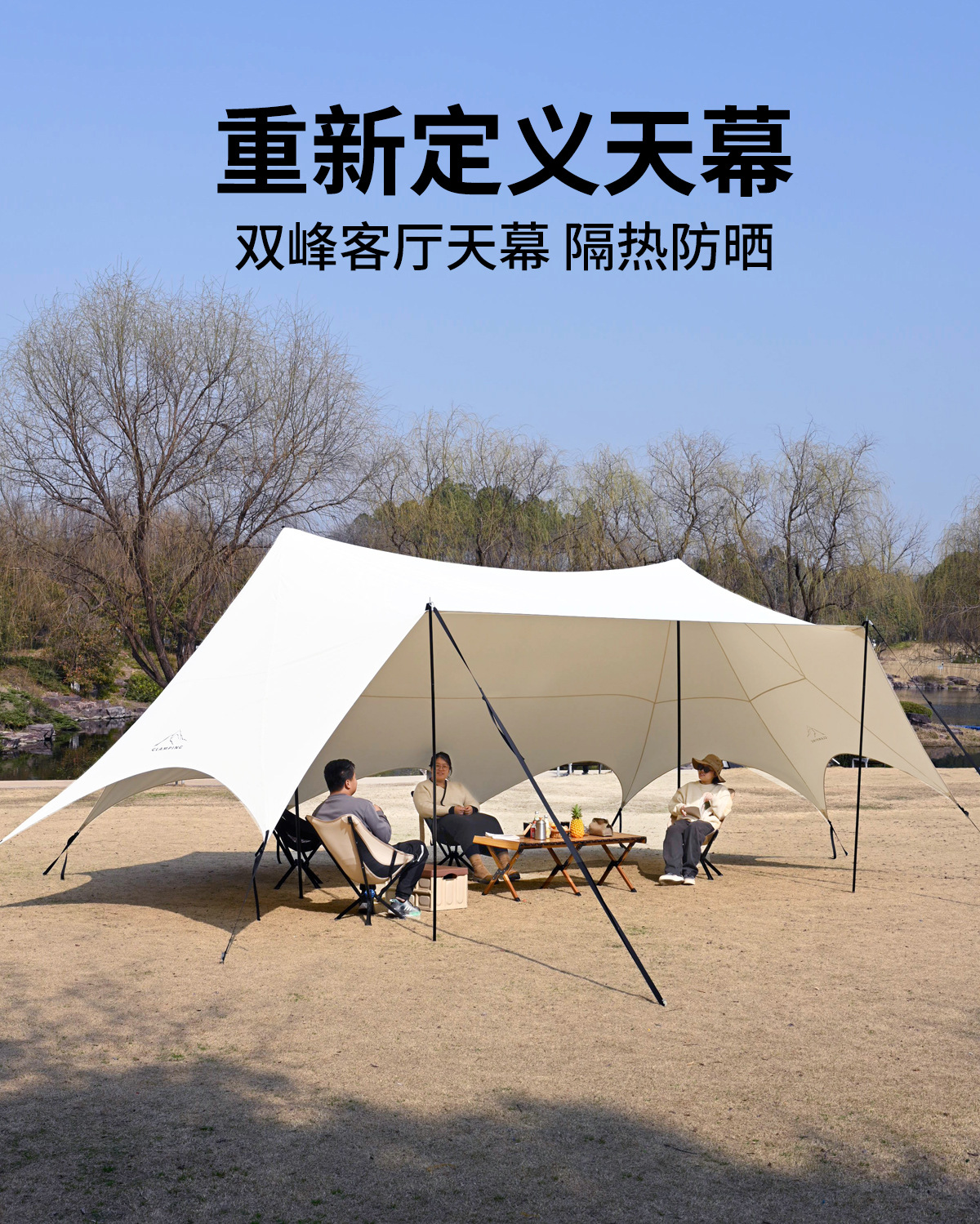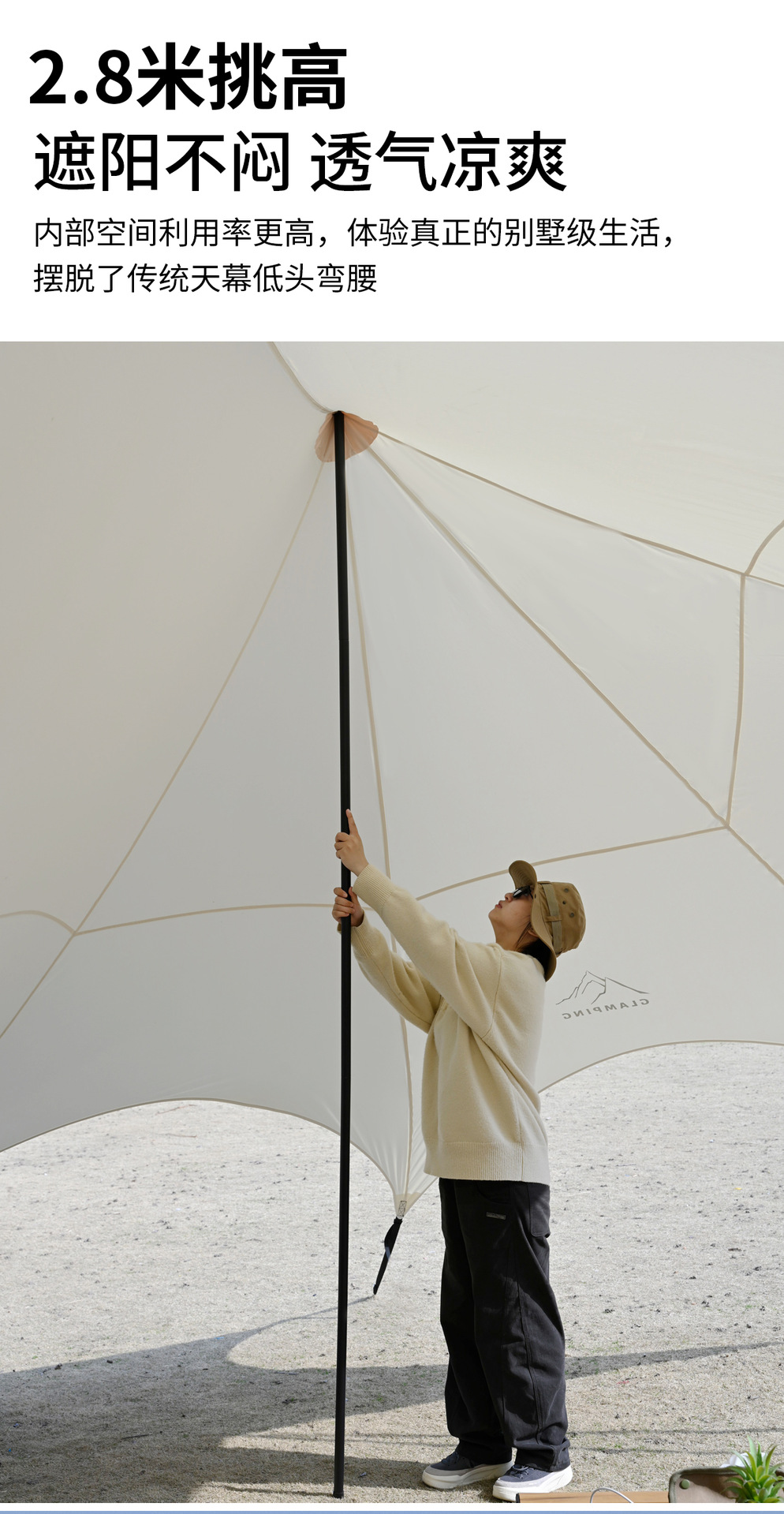 RX 야외 대형 타워 거실 더블 피크 돔 캐노피 텐트 캠프 블랙 접착제 태양 보호 캐노피 차양