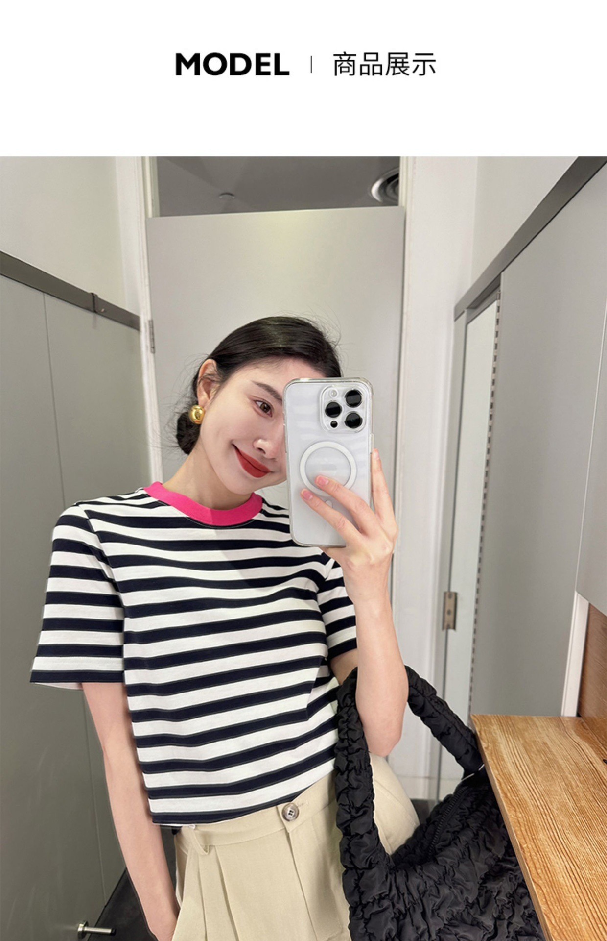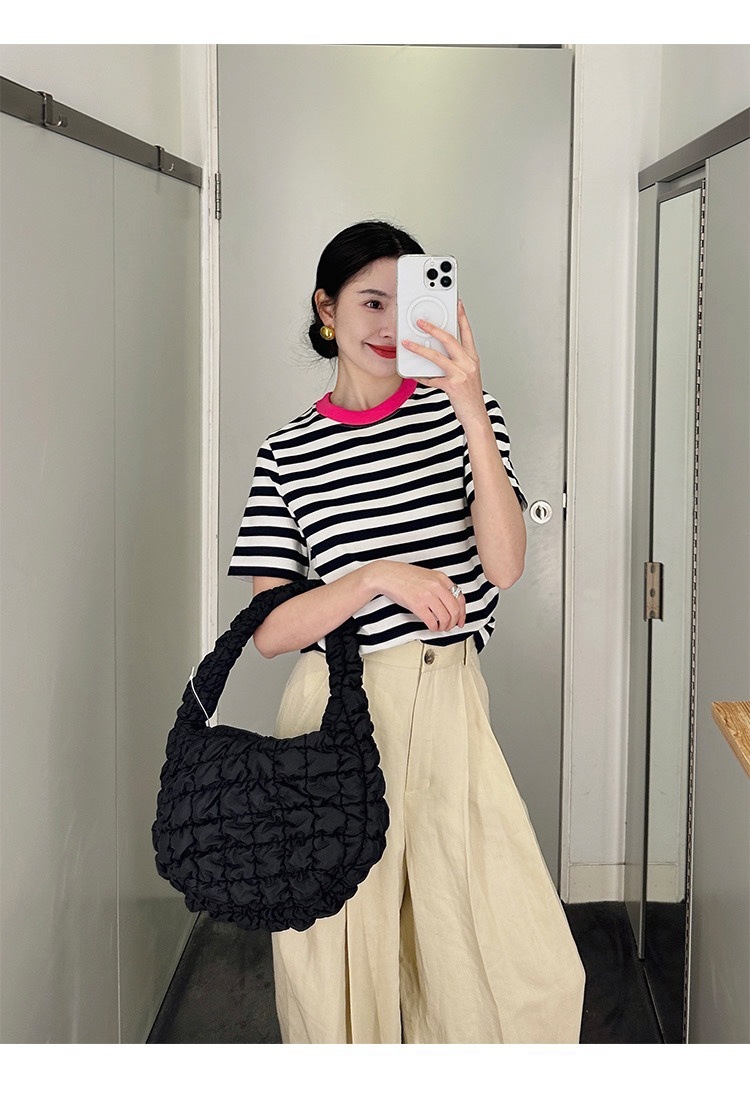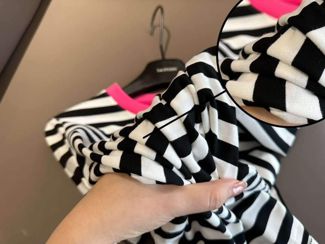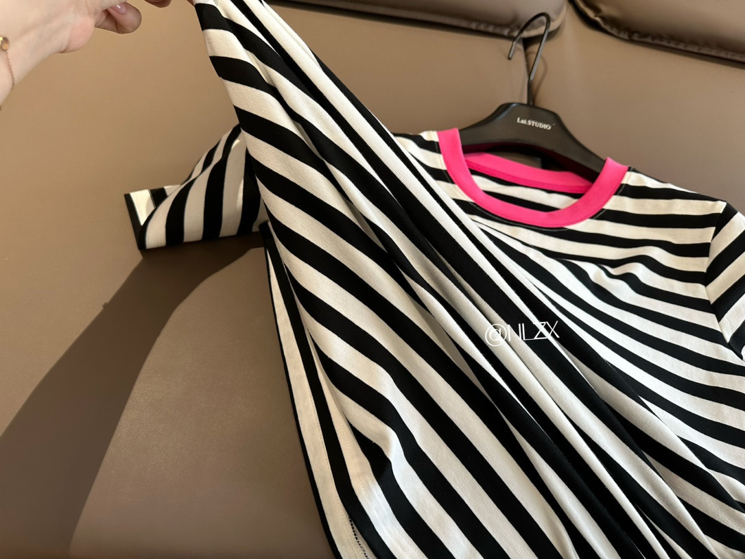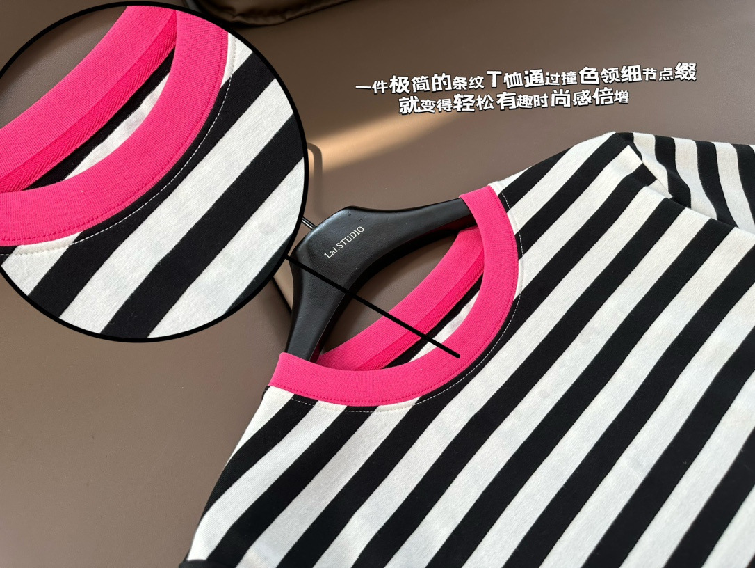 클리어 로즈 핑크 콘트라스트 컬러 칼라 스트라이프 티셔츠 여성용 풀오버 스웨터 반팔 스웨터 라운드 넥 짧은 한국 바닥 셔츠스토어 가기