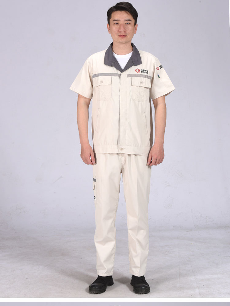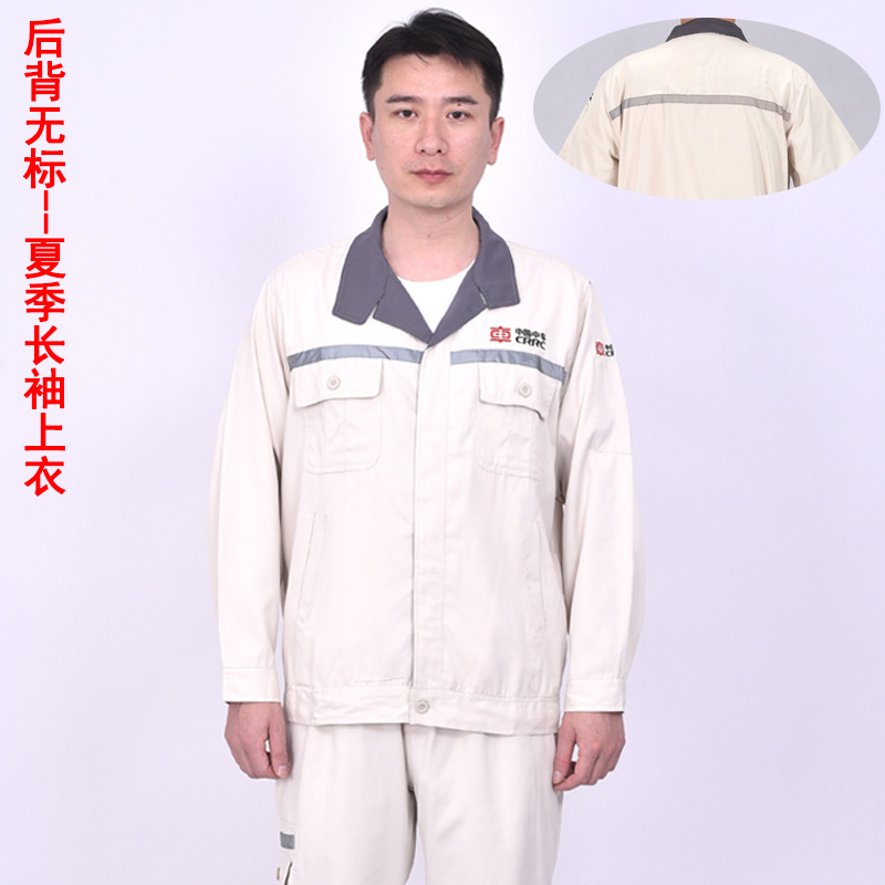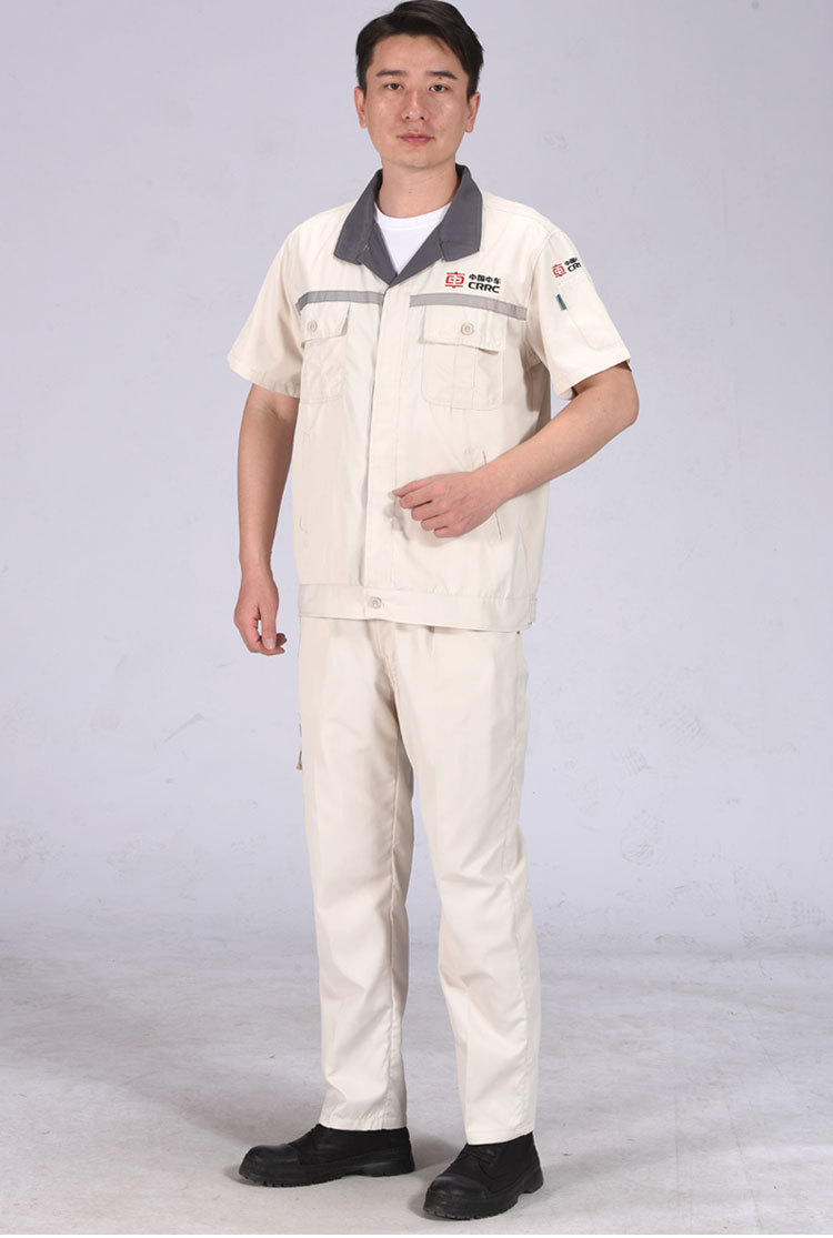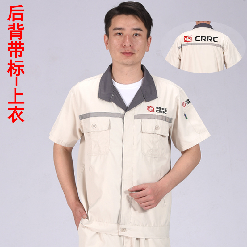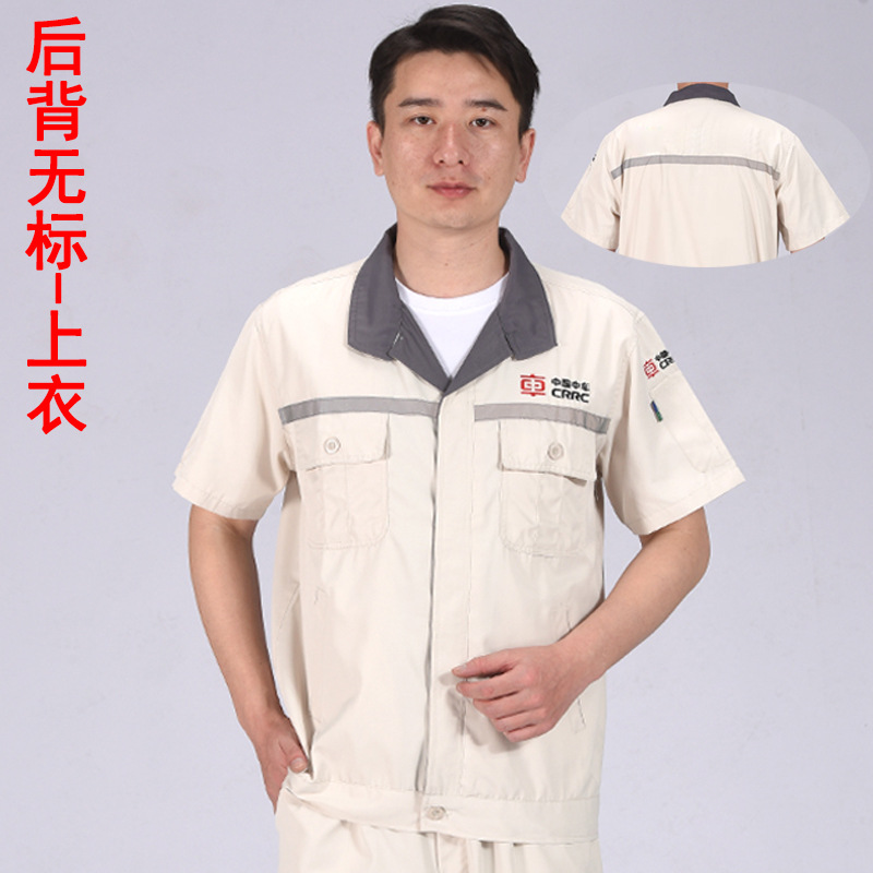중국 중형 자동차 작업복 여름 얇은 베이지 색 남성차 반팔 작업복 공장 작업장 고속 열차 작업복