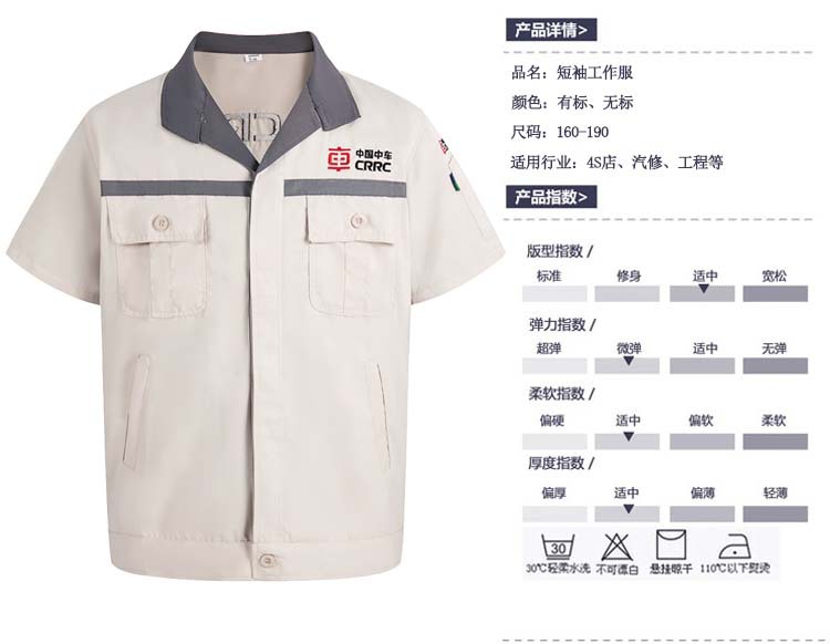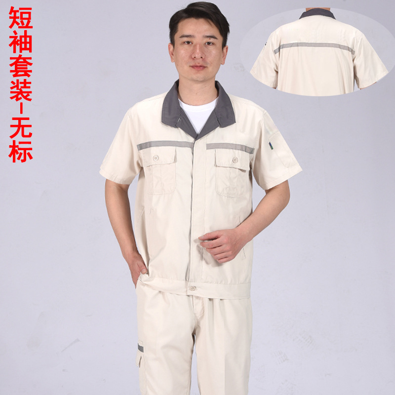 중국 중형 자동차 작업복 여름 얇은 베이지 색 남성차 반팔 작업복 공장 작업장 고속 열차 작업복스토어 가기