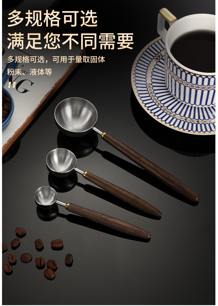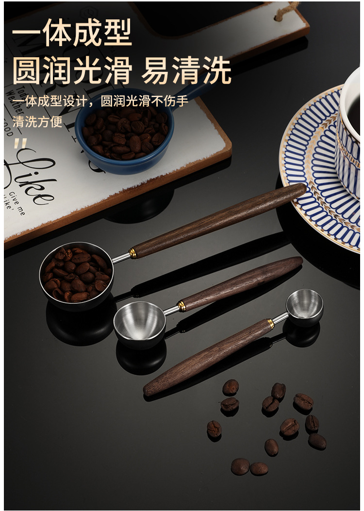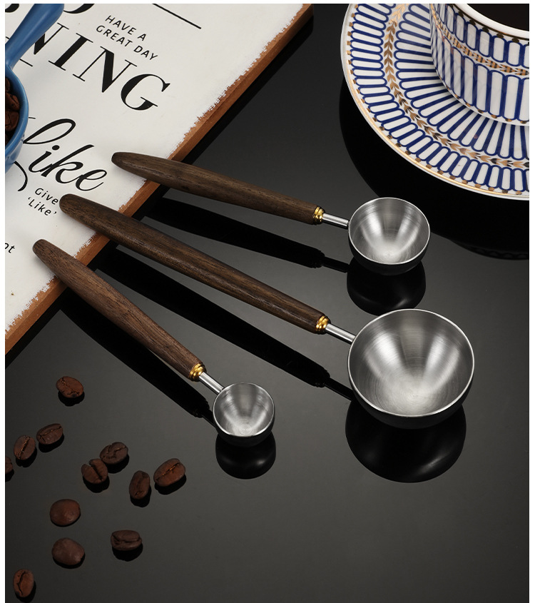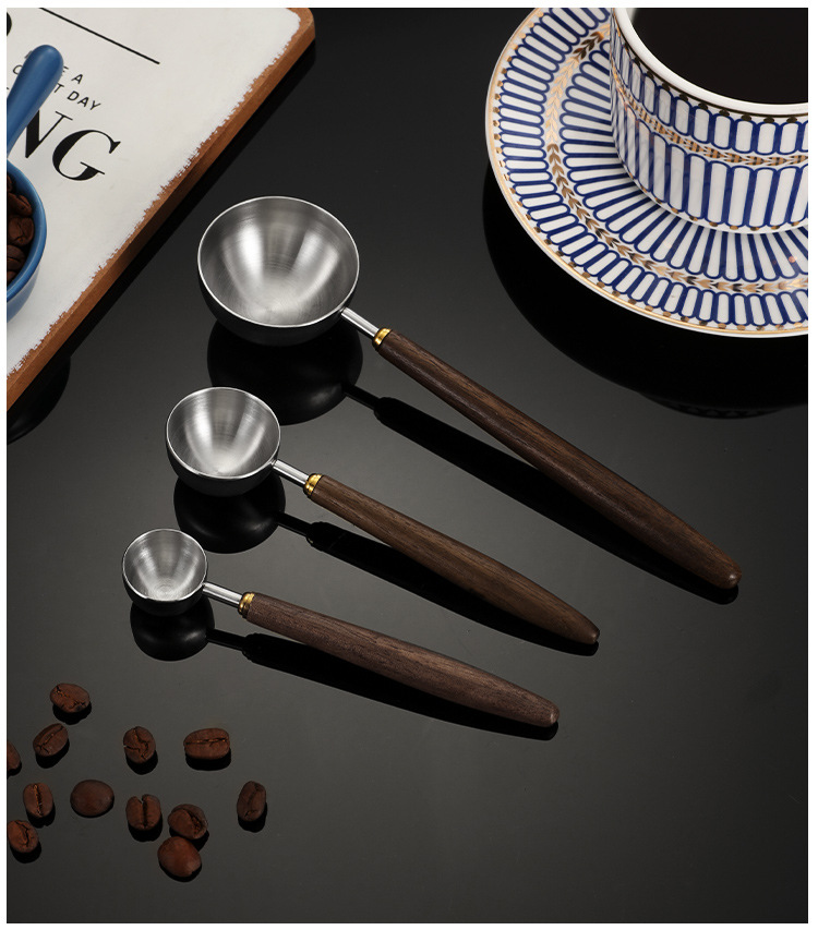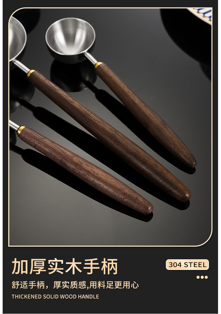 304 호두나무 손잡이 계량스푼 분유 커피콩 스푼 가정용 주방 베이킹 도구 다기능 계량스푼 손잡이