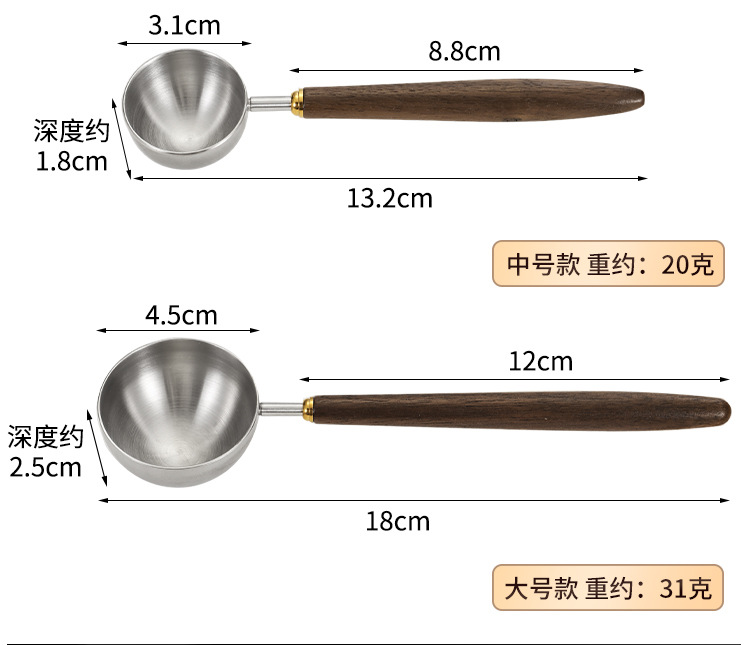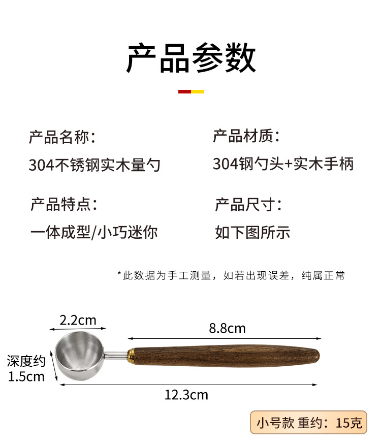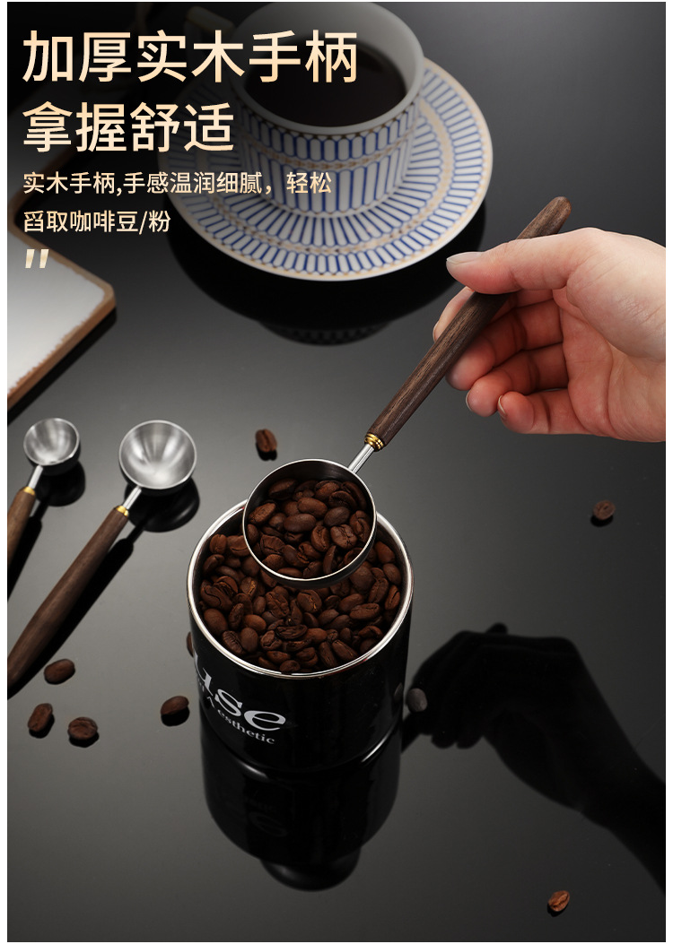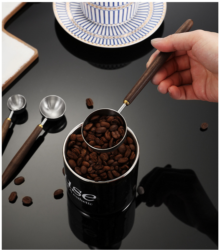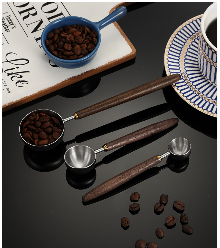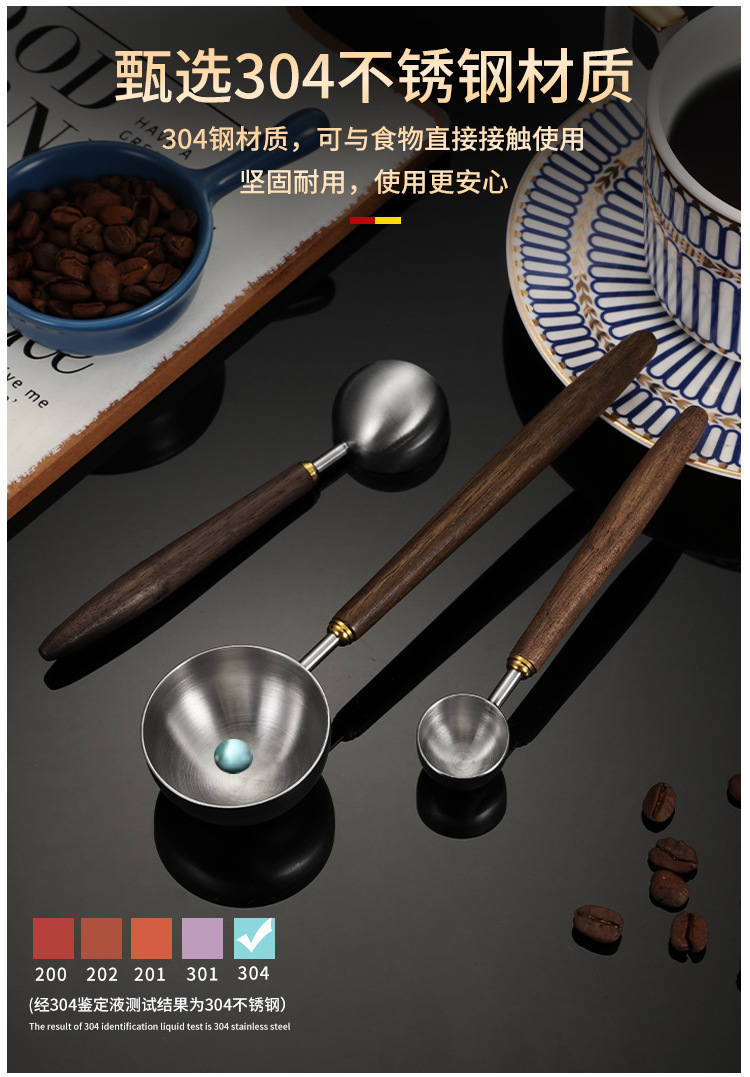304 호두나무 손잡이 계량스푼 분유 커피콩 스푼 가정용 주방 베이킹 도구 다기능 계량스푼 손잡이