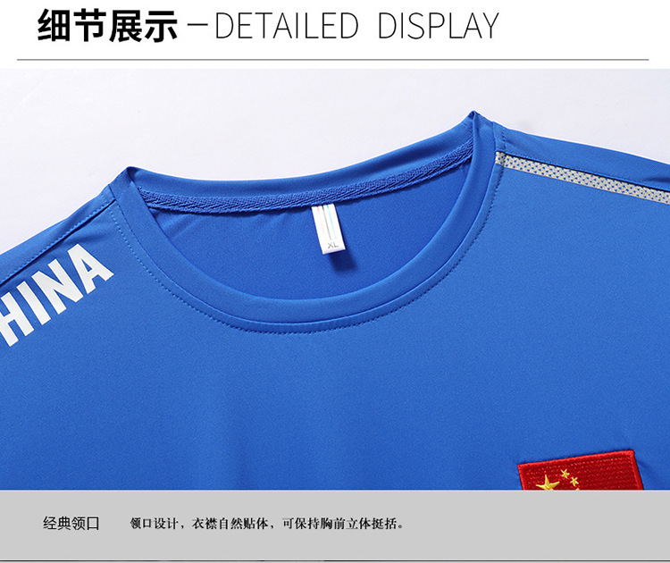 중국 팀 국가 유니폼 남성과 여성을위한 속건성 반팔 티셔츠 속건성 라운드 넥 티셔츠 여름 스포츠 훈련 유니폼 축구 유니폼 훈련 유니폼