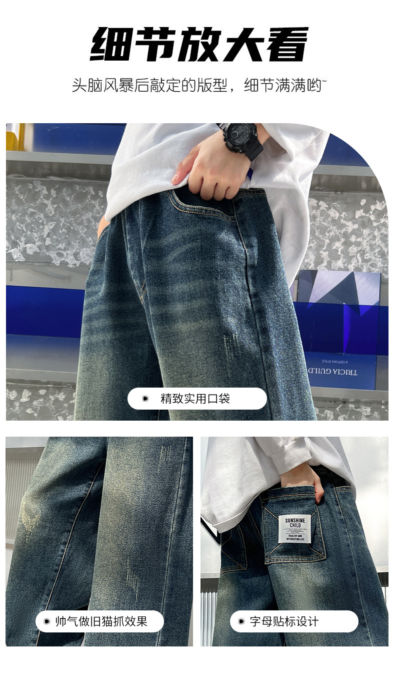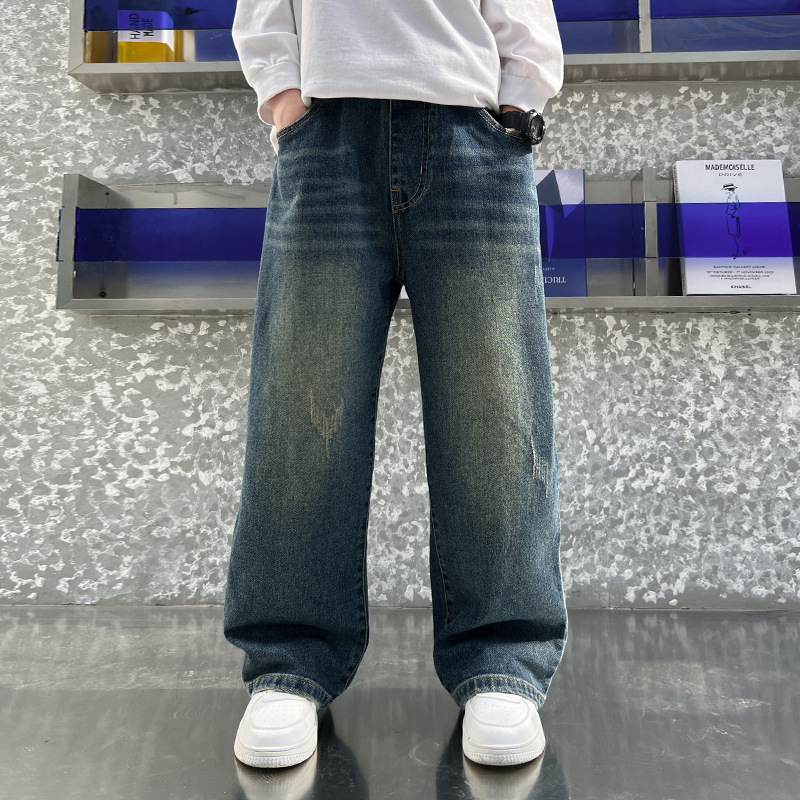 남아용 바지 봄 가을 겨울 청바지 2025 신상 중대형 아동 겨울 와이드 레그 스트레이트 아메리칸 레트로 플리스 안감스토어 가기