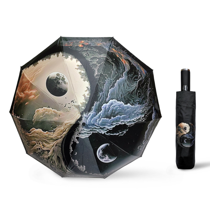 비행 사랑 우산 우산 우산 물 색상 변경 여성 학생 이중 사용 태양 우산 자동 접이식 태양 보호 태양 우산스토어 가기