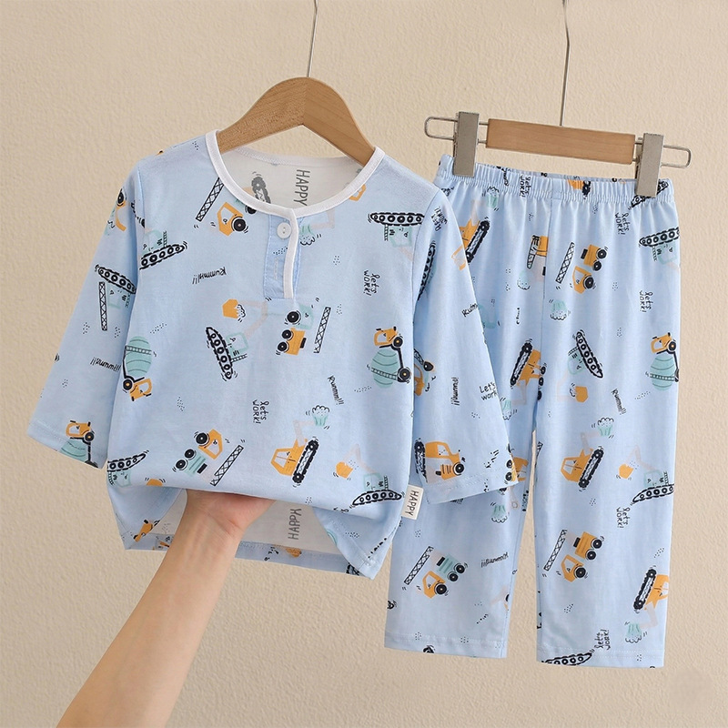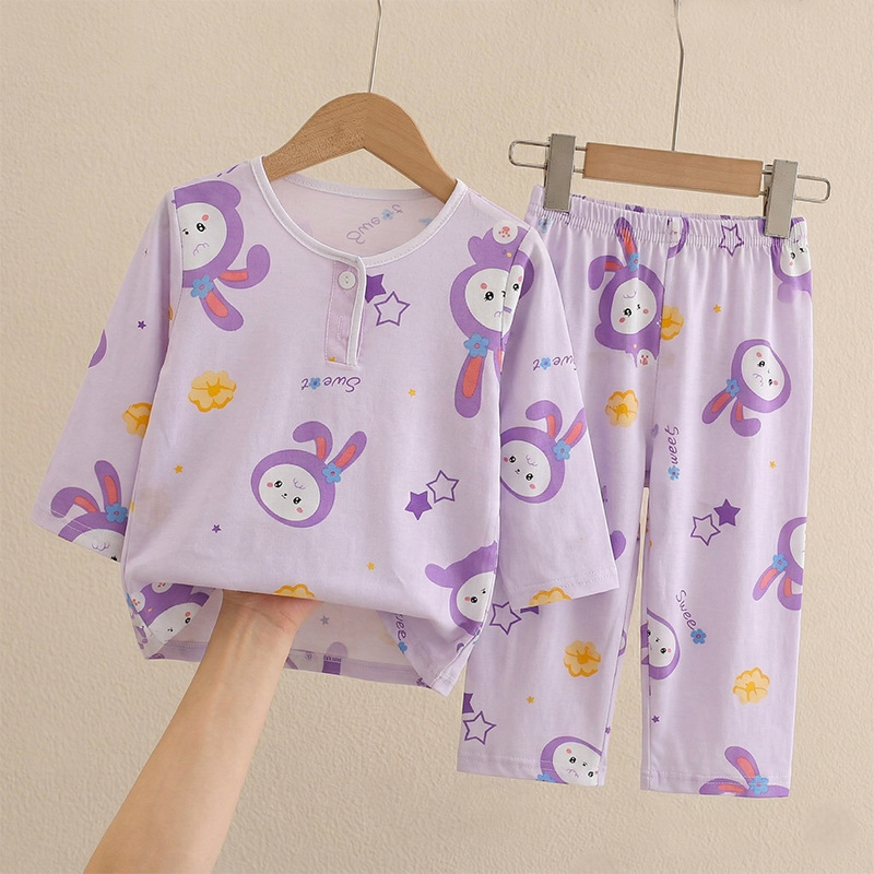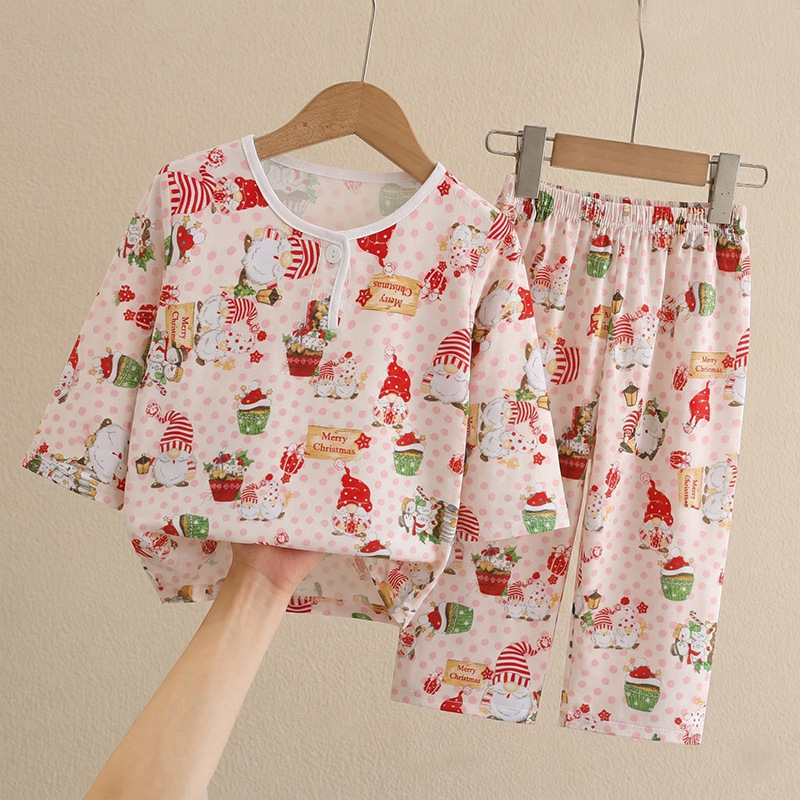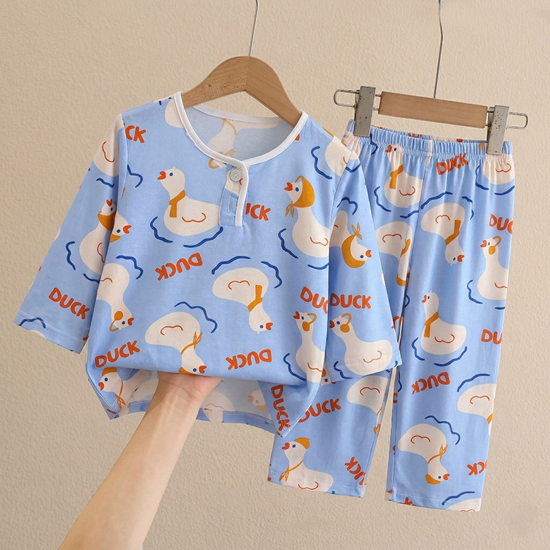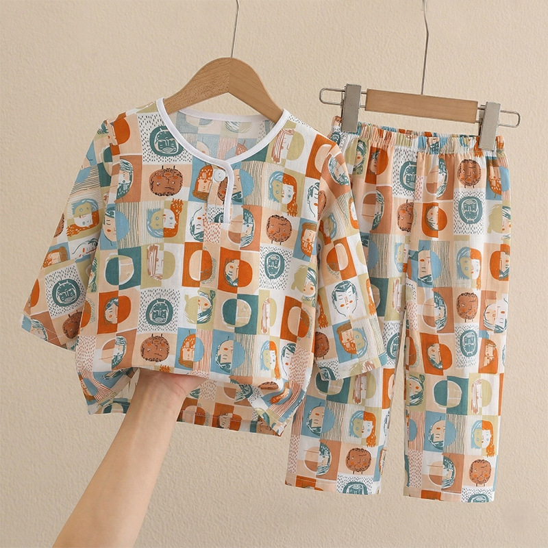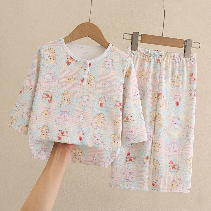 여름 새로운면 실크 어린이 긴팔 바지 소년 소녀 아기 잠옷 도매면 실크 수면 에어컨 가정복 세트