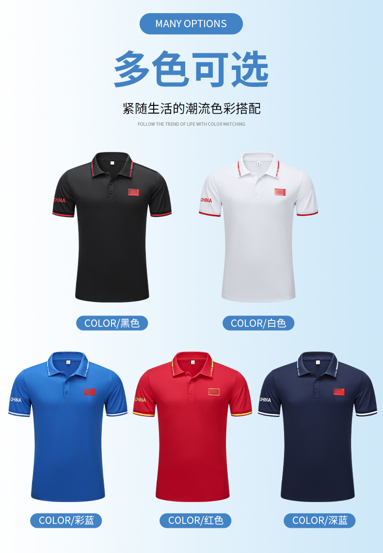 중국 팀 스포츠웨어 반팔 티셔츠 세트 남자 태권도 수영 심판 코치 빠른 건조 폴로 셔츠 나들이 옷스토어 가기