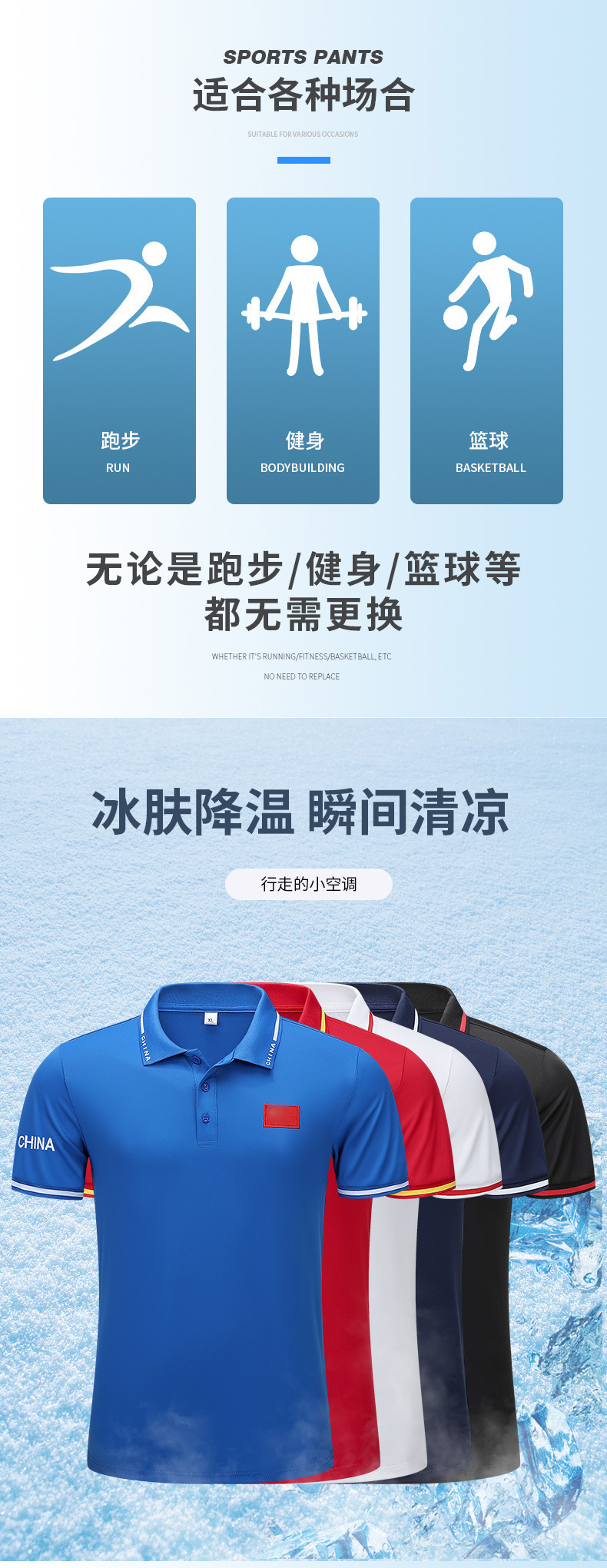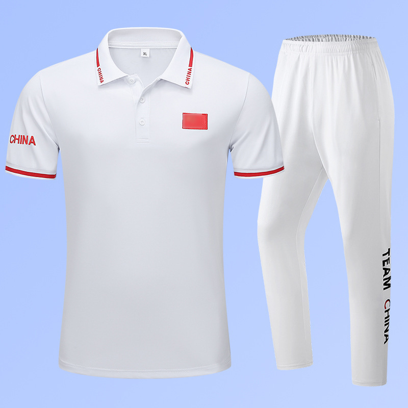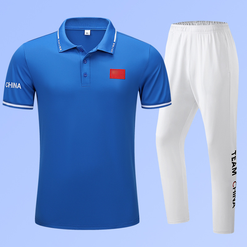 중국 팀 스포츠웨어 반팔 티셔츠 세트 남자 태권도 수영 심판 코치 빠른 건조 폴로 셔츠 나들이 옷