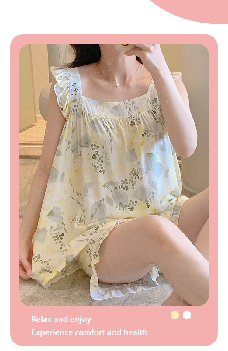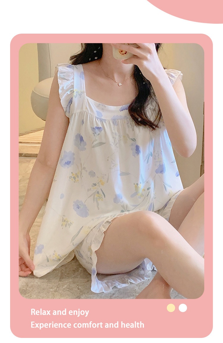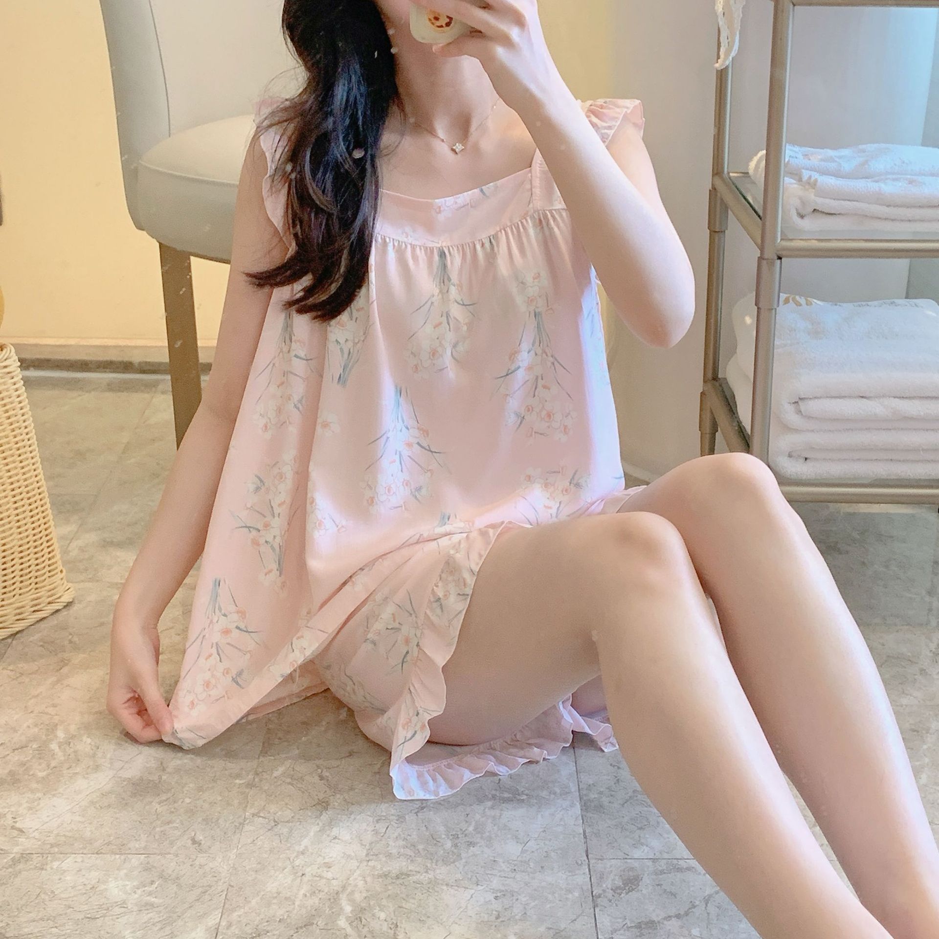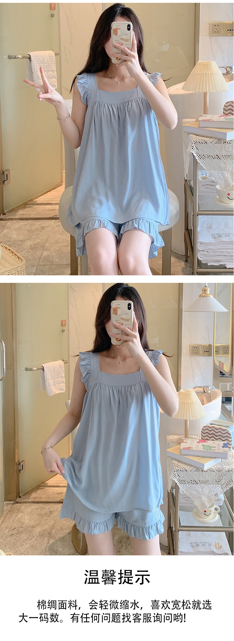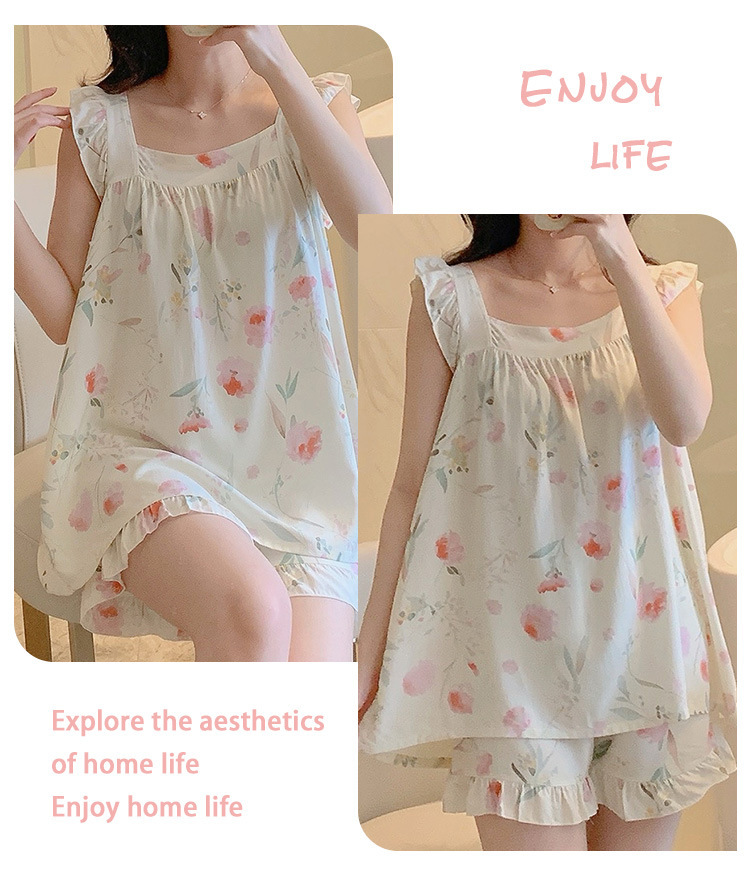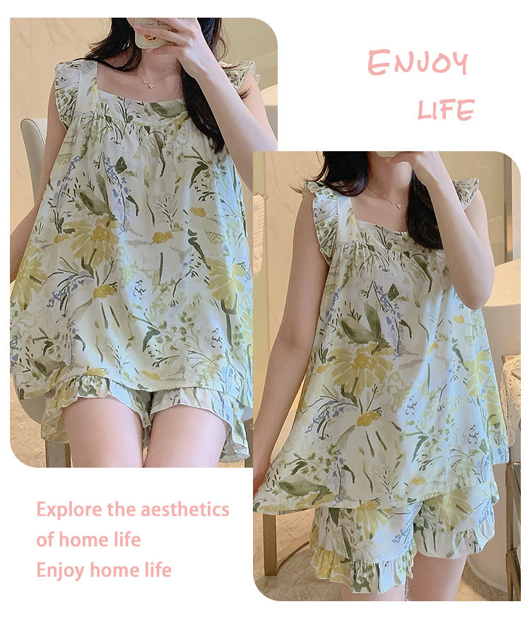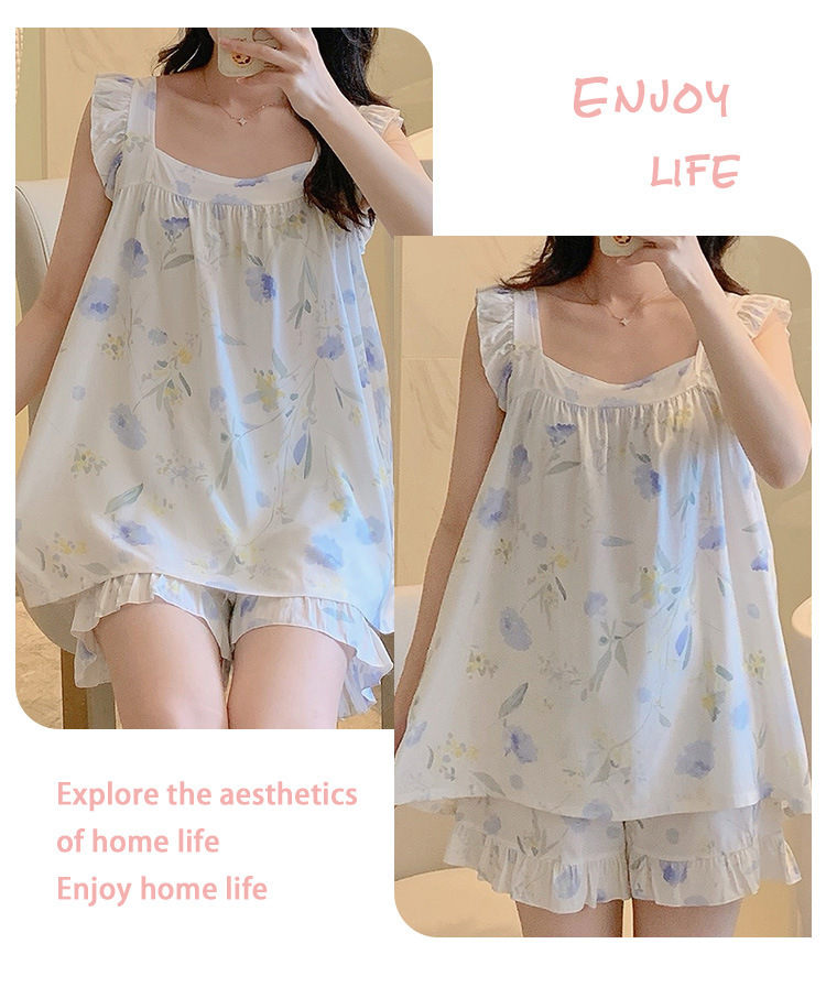 여성면 실크 잠옷 여름 새로운 달콤한 인쇄 야외 학생 반바지 세트 얇은 민소매 면화 실크 홈웨어스토어 가기