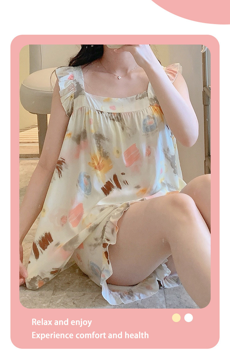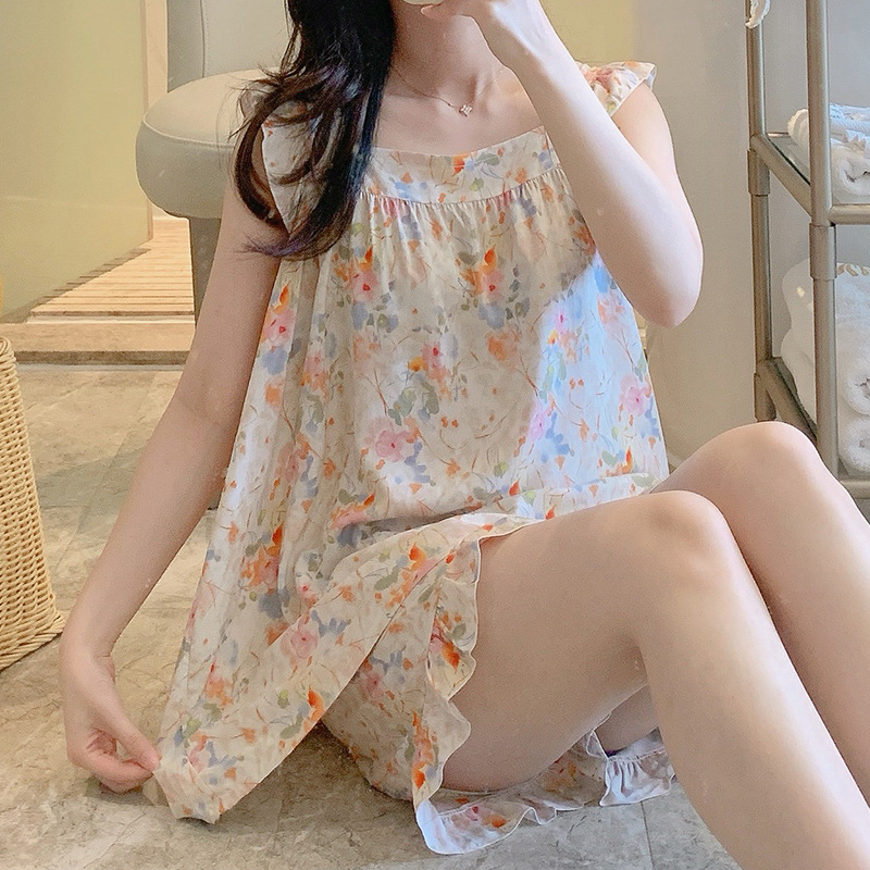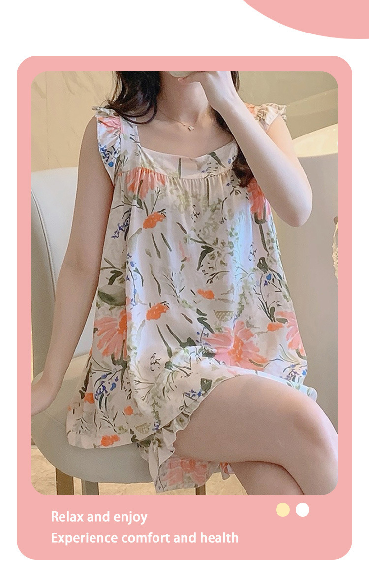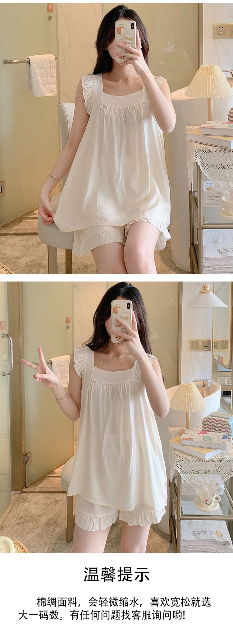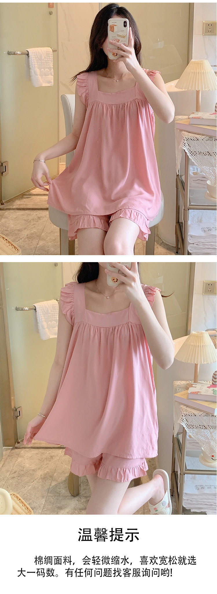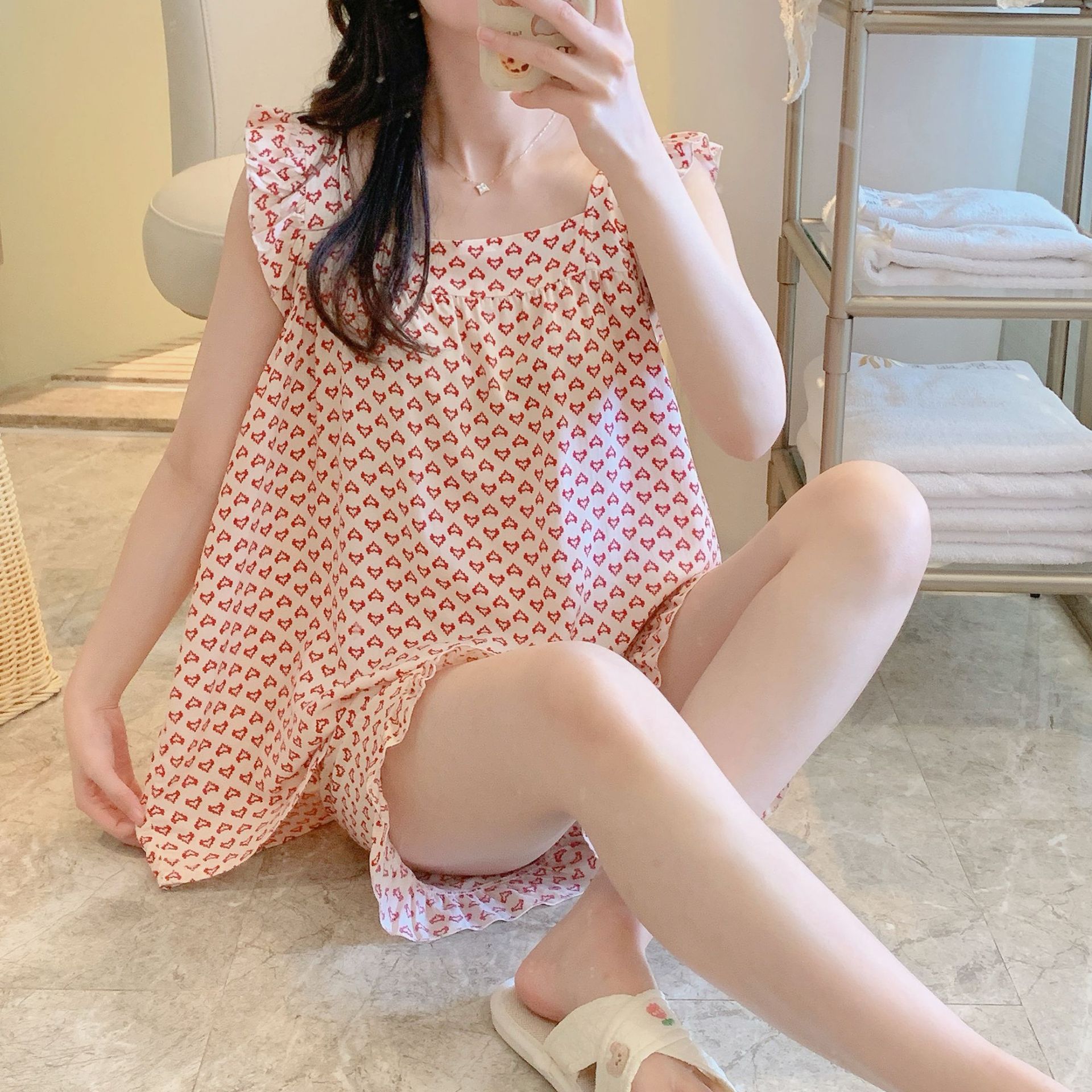 여성면 실크 잠옷 여름 새로운 달콤한 인쇄 야외 학생 반바지 세트 얇은 민소매 면화 실크 홈웨어스토어 가기