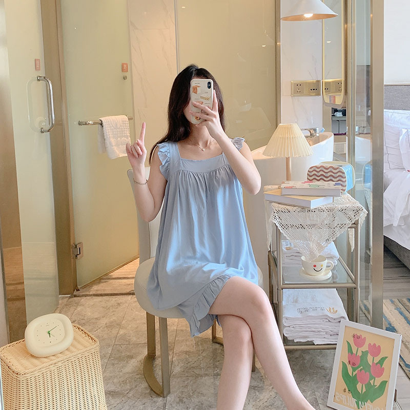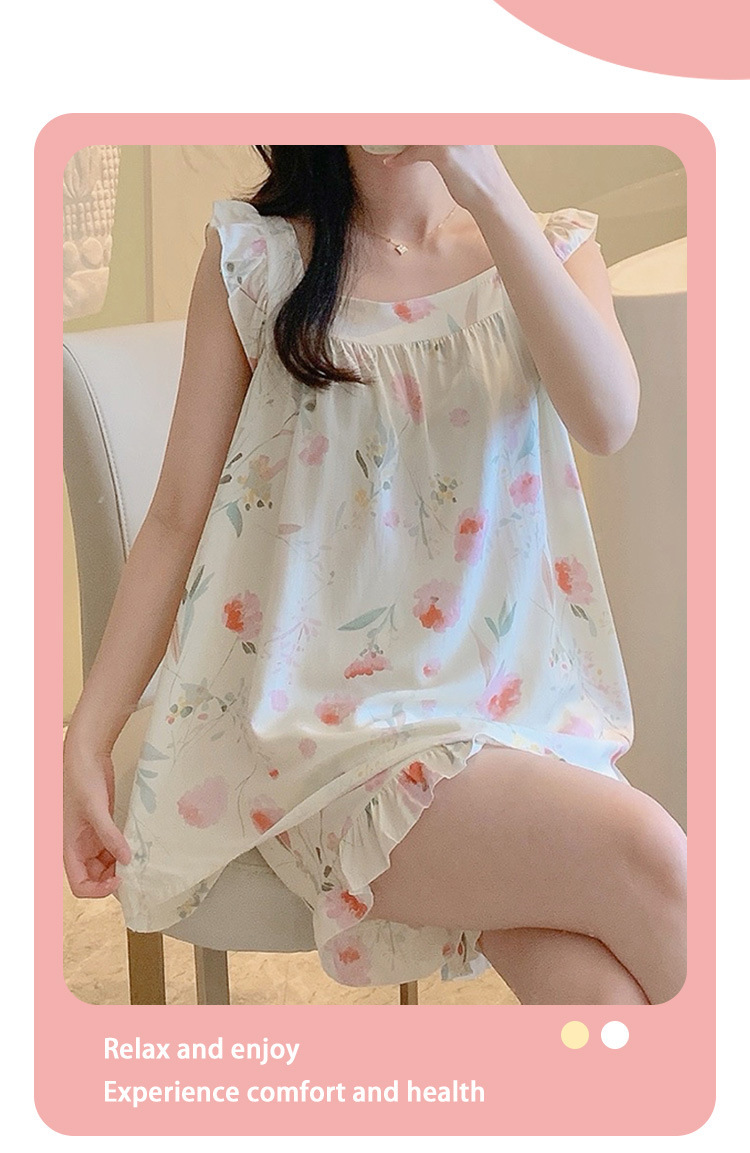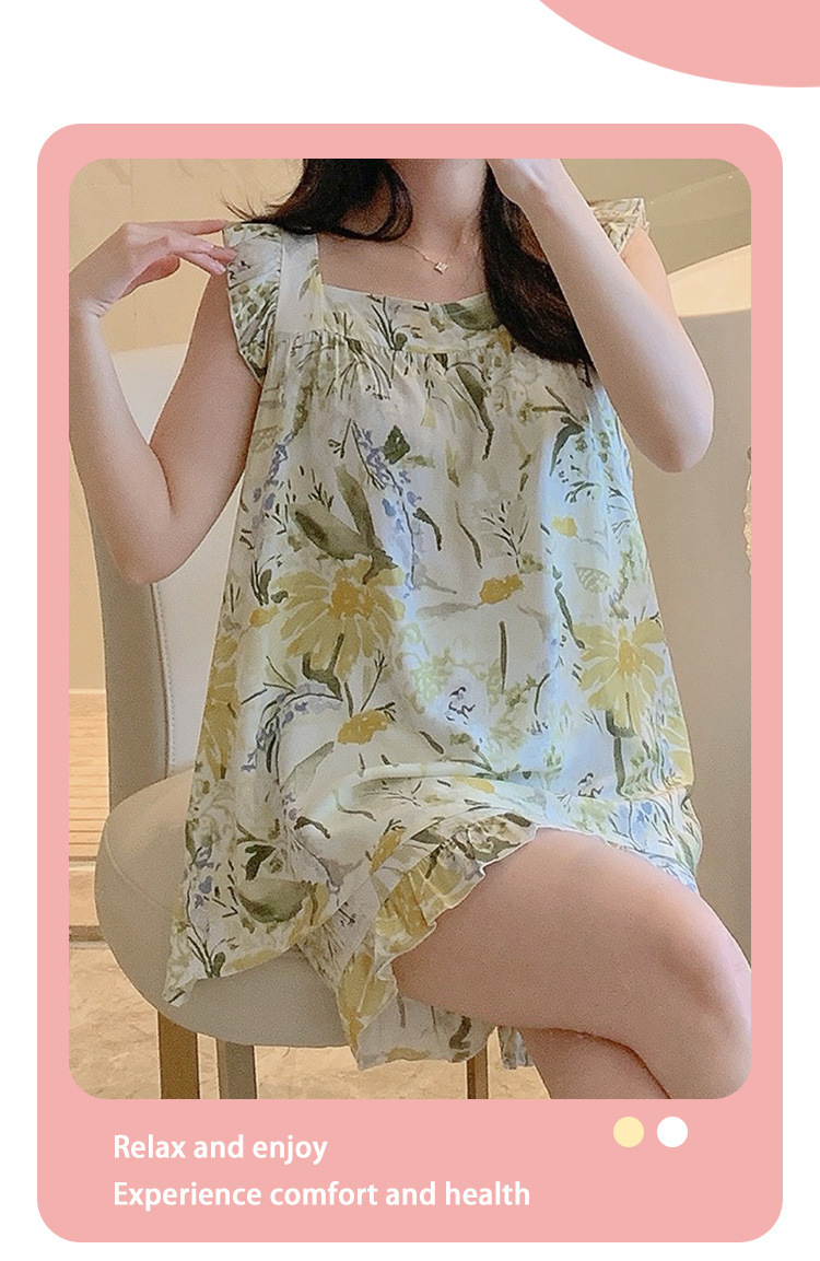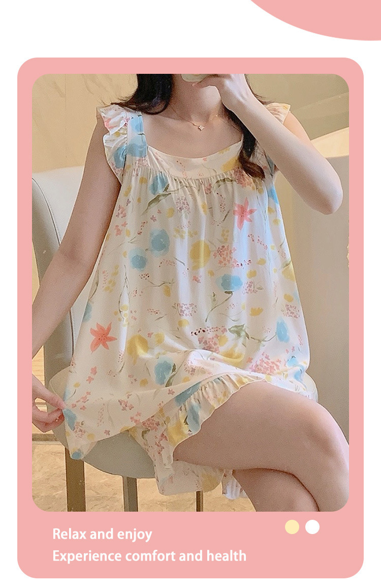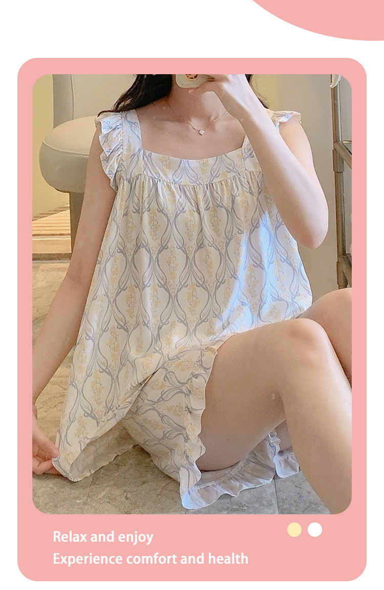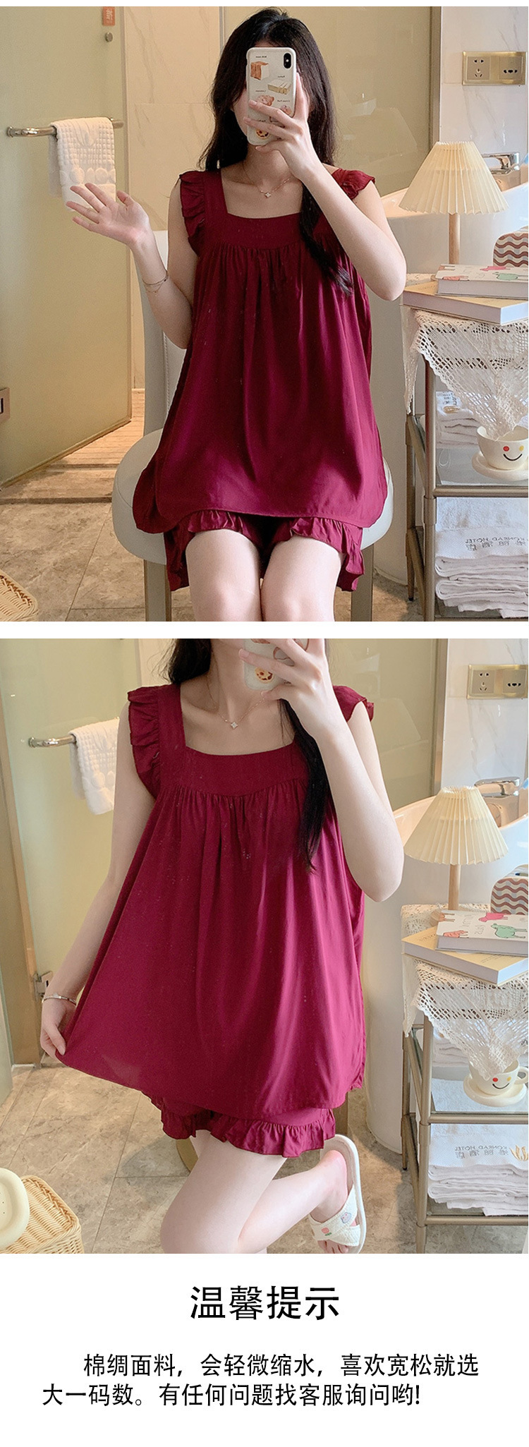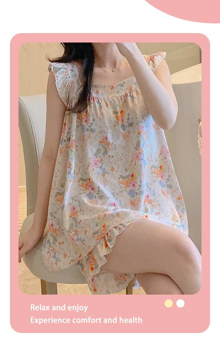 여성면 실크 잠옷 여름 새로운 달콤한 인쇄 야외 학생 반바지 세트 얇은 민소매 면화 실크 홈웨어스토어 가기
