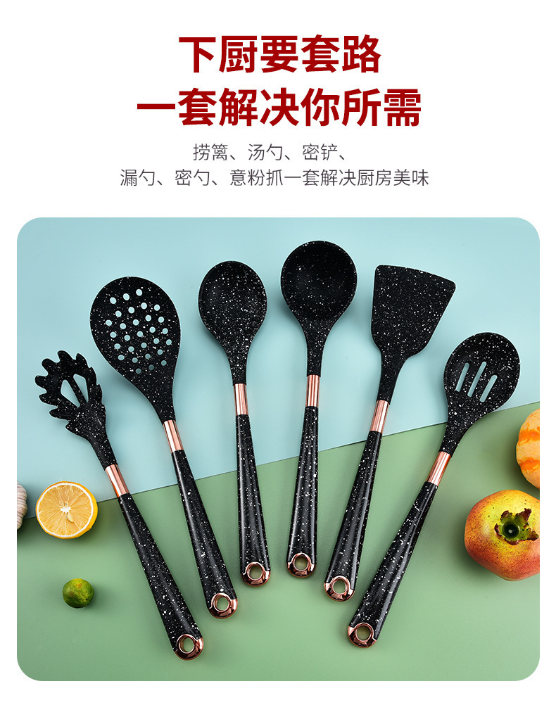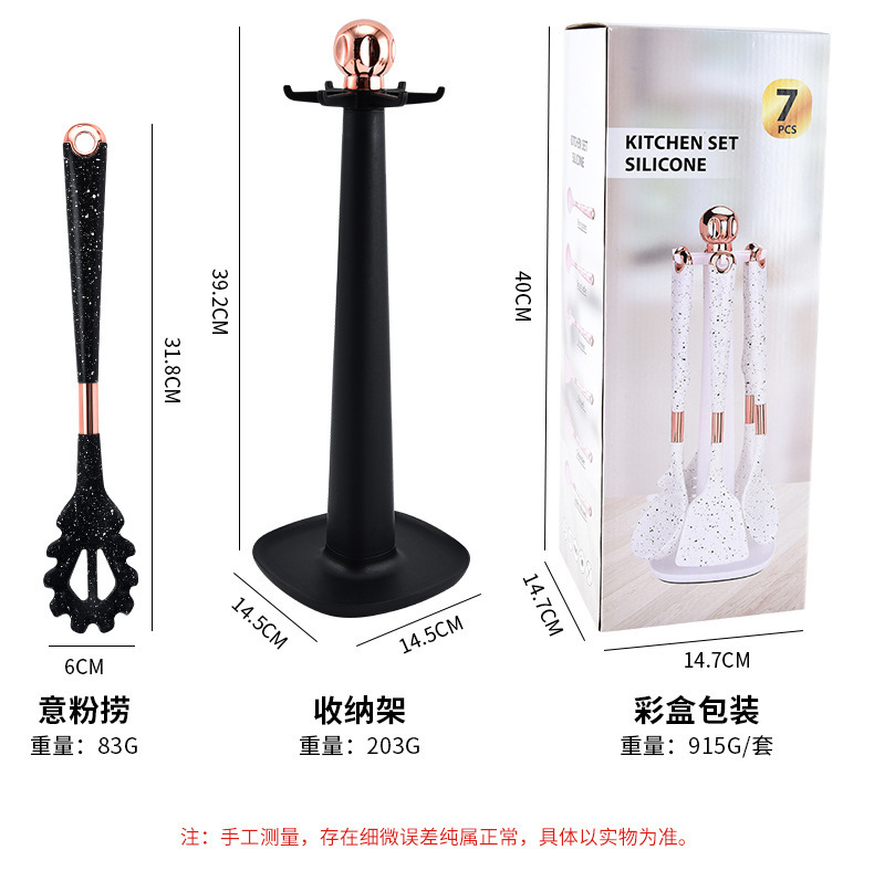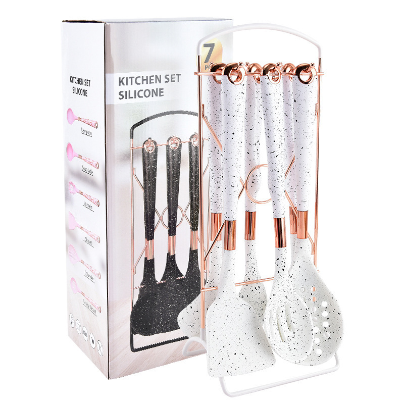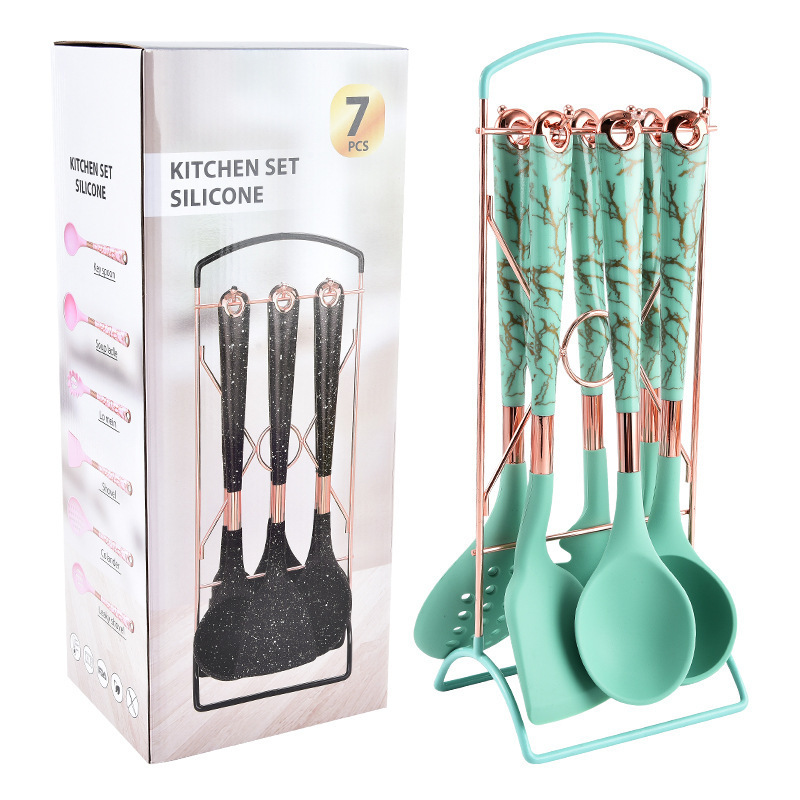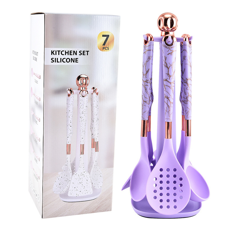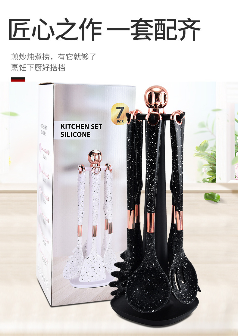 뜨거운 판매 대외 무역 실리콘 주방 용품 7 피스 주방 요리 스푼 비 스틱 주걱 회전 스토리지 랙 세트