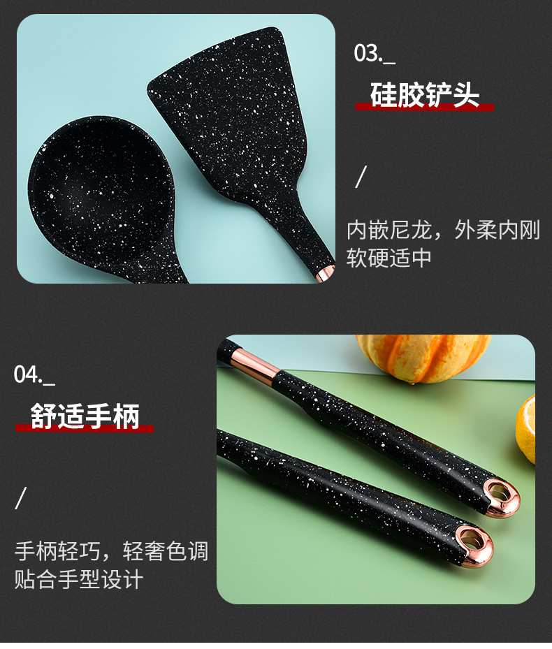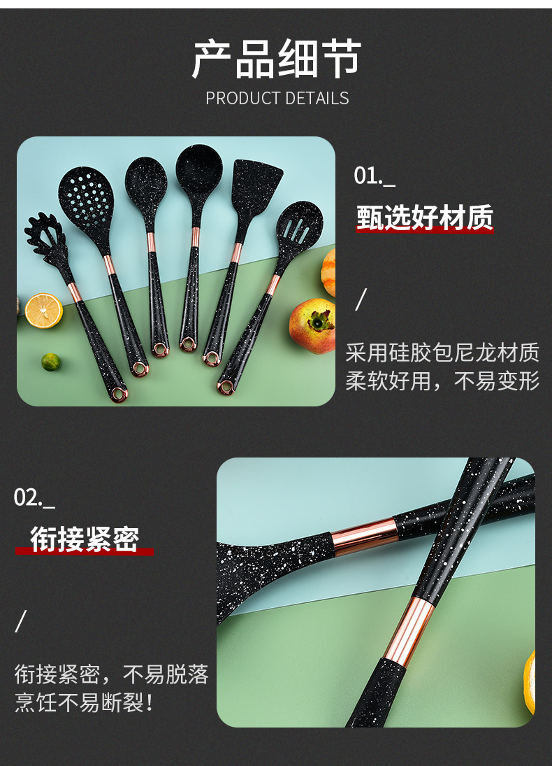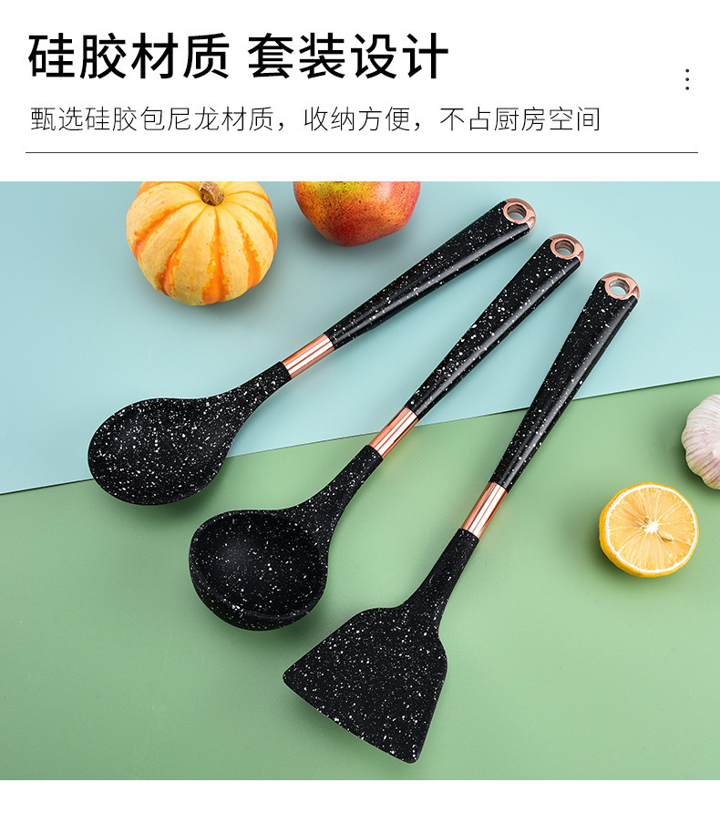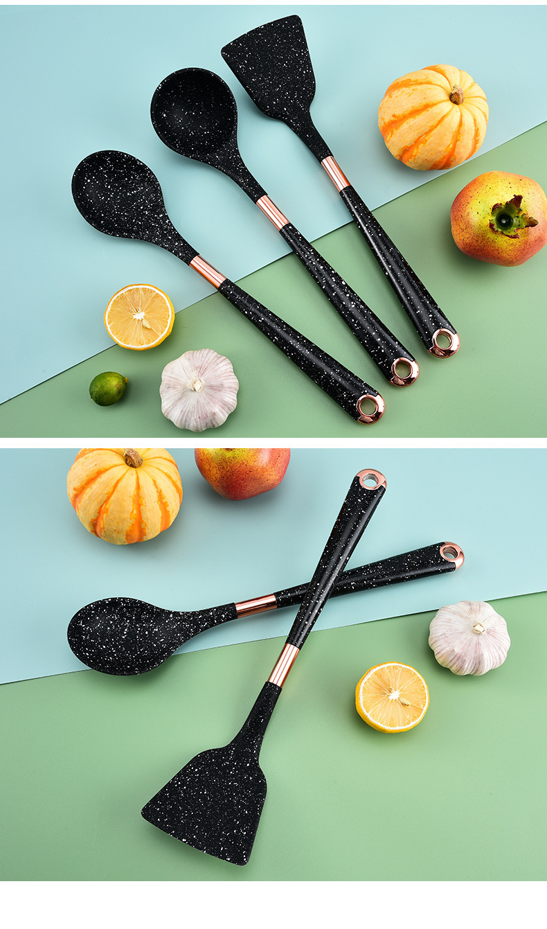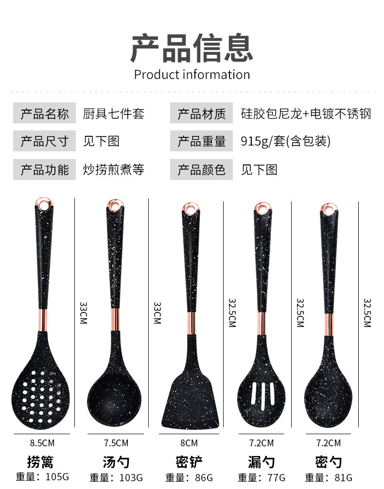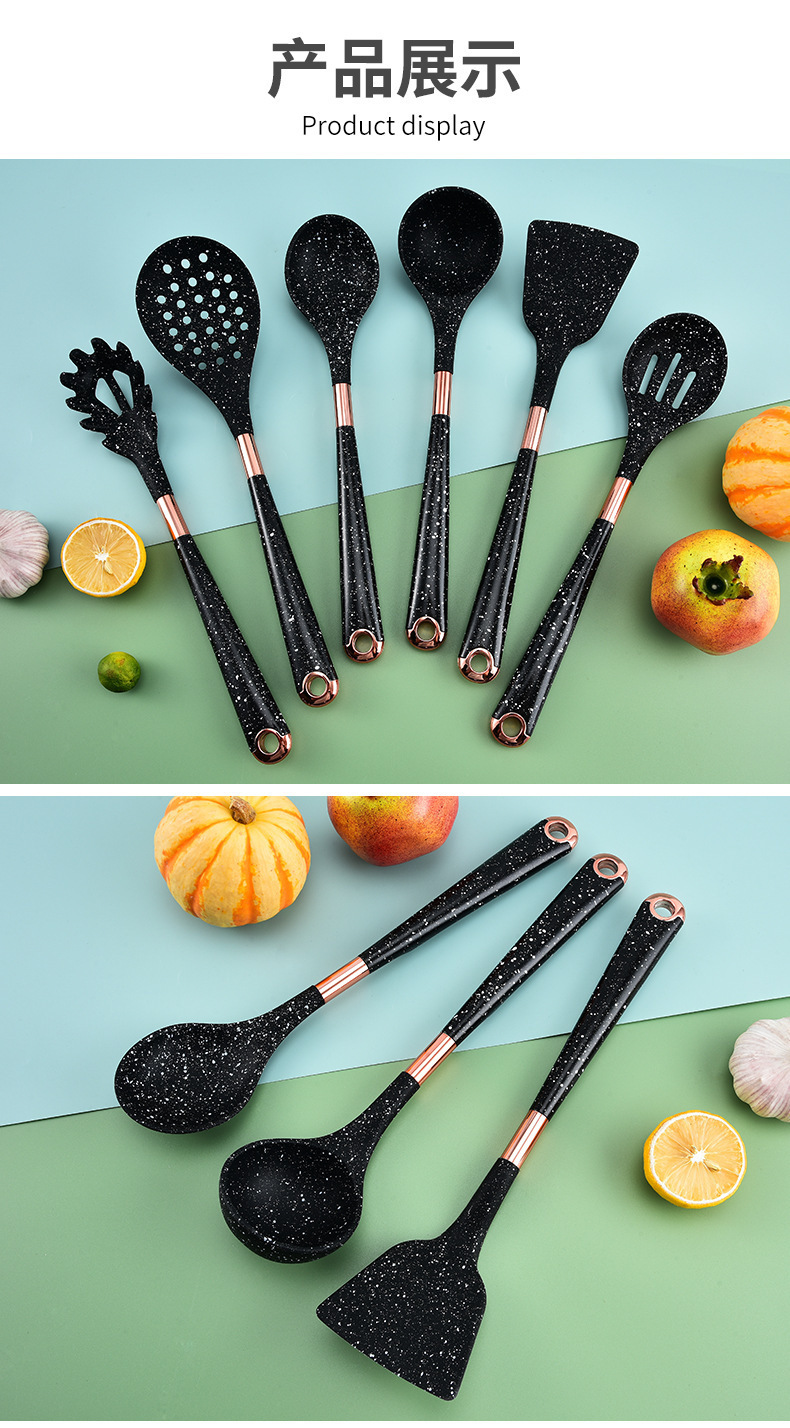 뜨거운 판매 대외 무역 실리콘 주방 용품 7 피스 주방 요리 스푼 비 스틱 주걱 회전 스토리지 랙 세트
