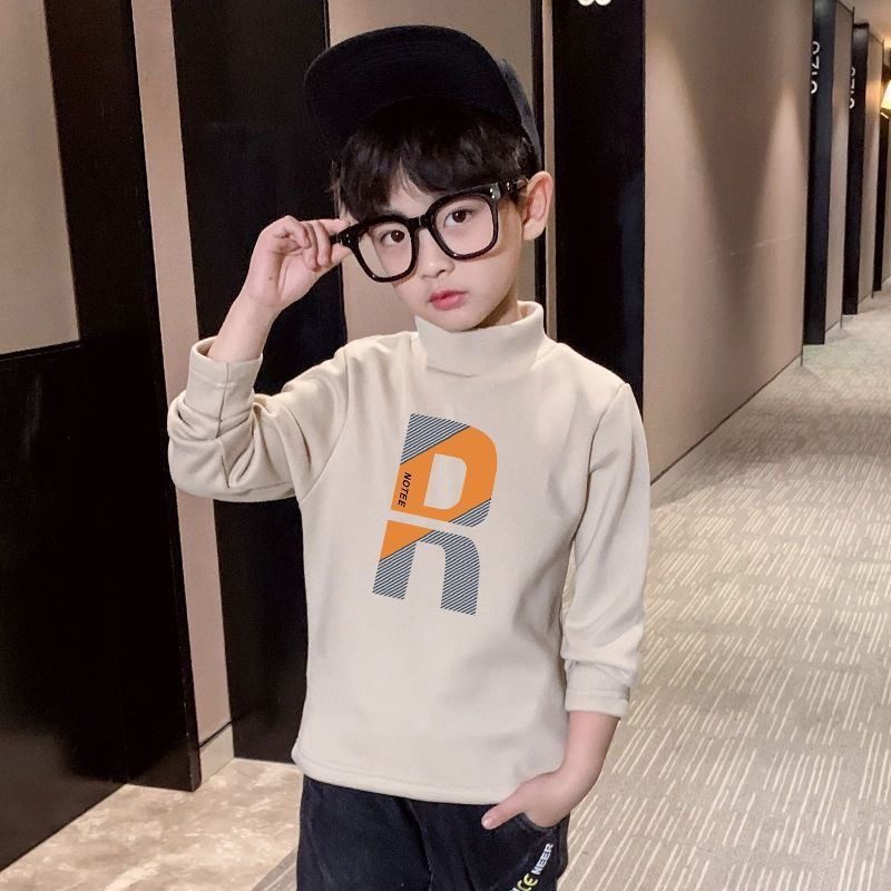 드 벨벳 봄과 가을 새로운 어린이 유니섹스 따뜻한 가까운 편안한 바닥 셔츠 미드 하이 칼라 긴 소매 패션 티셔츠