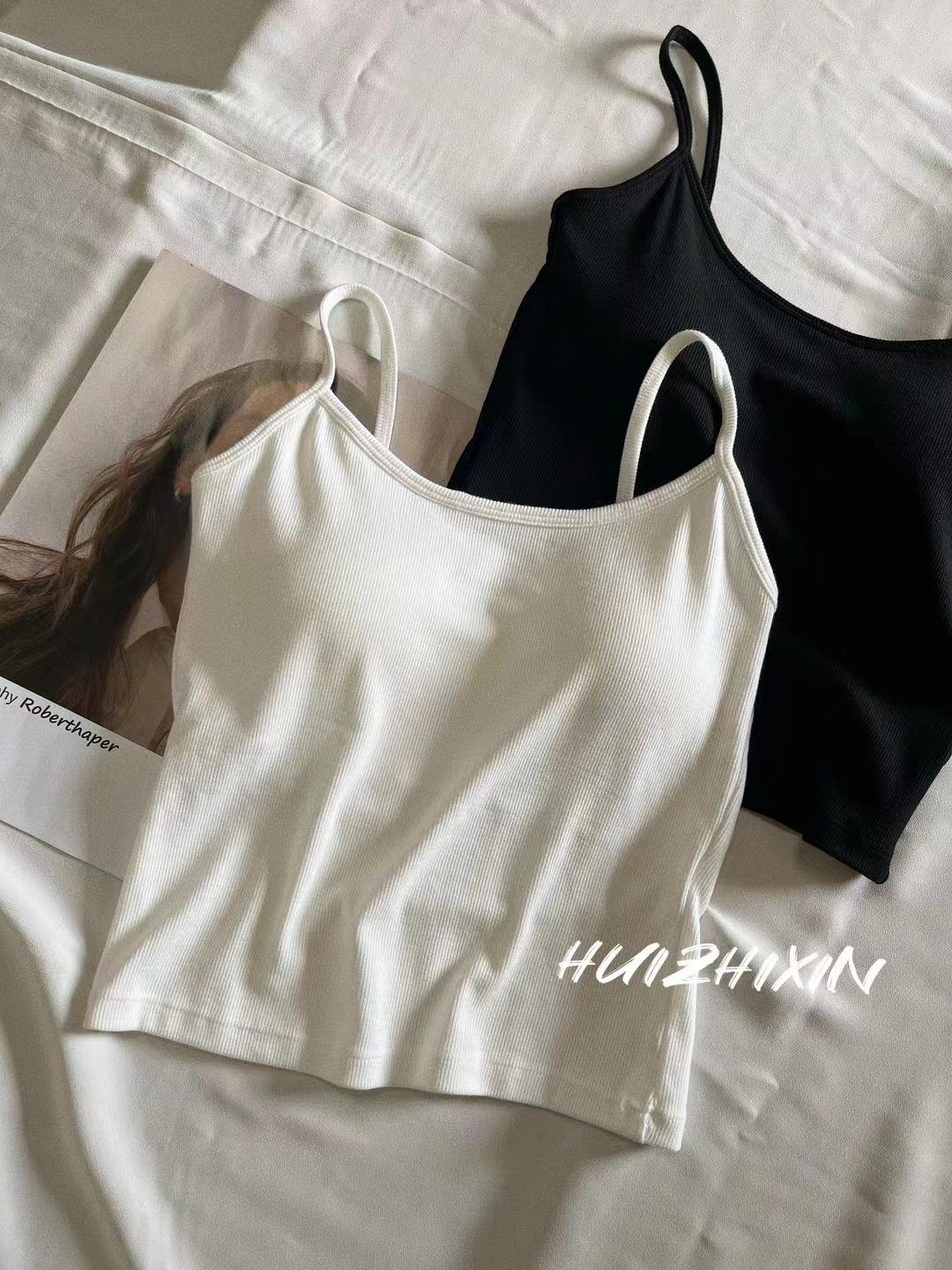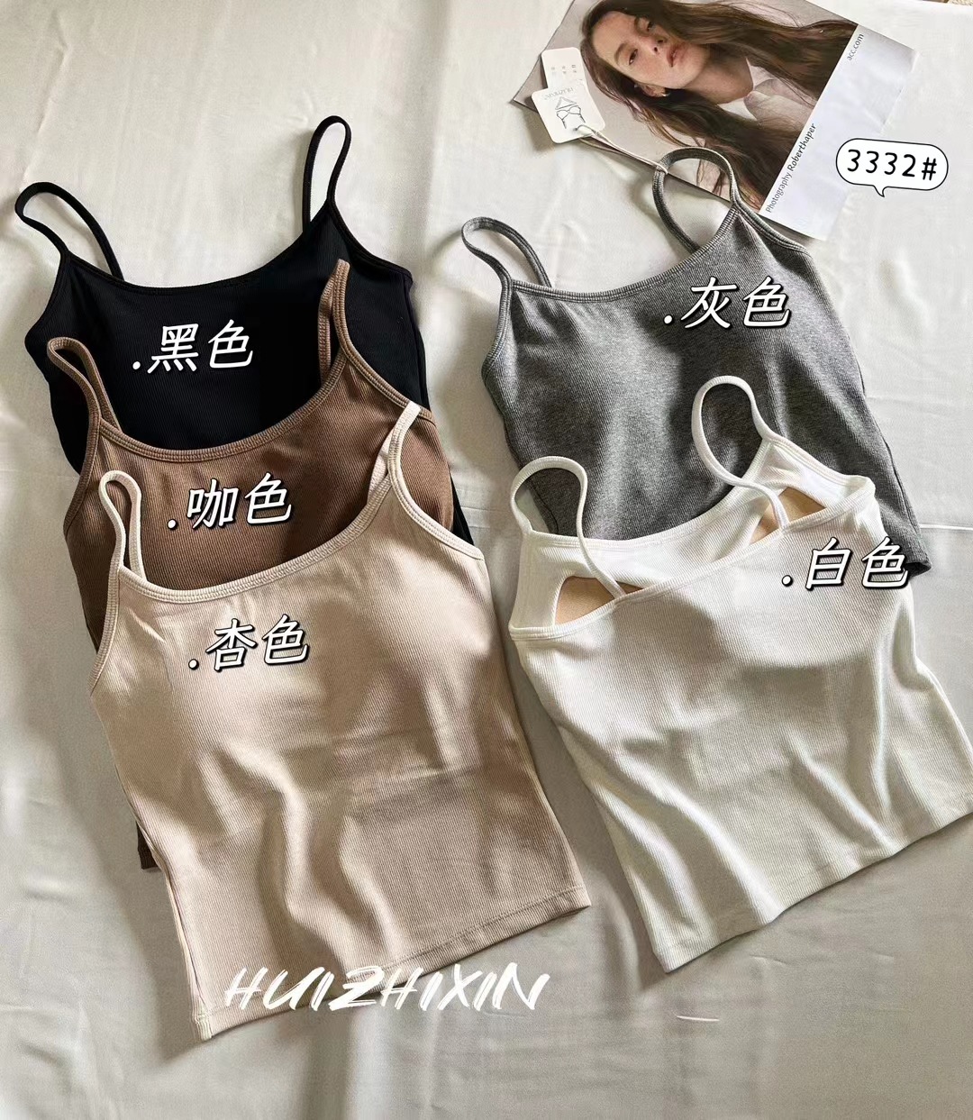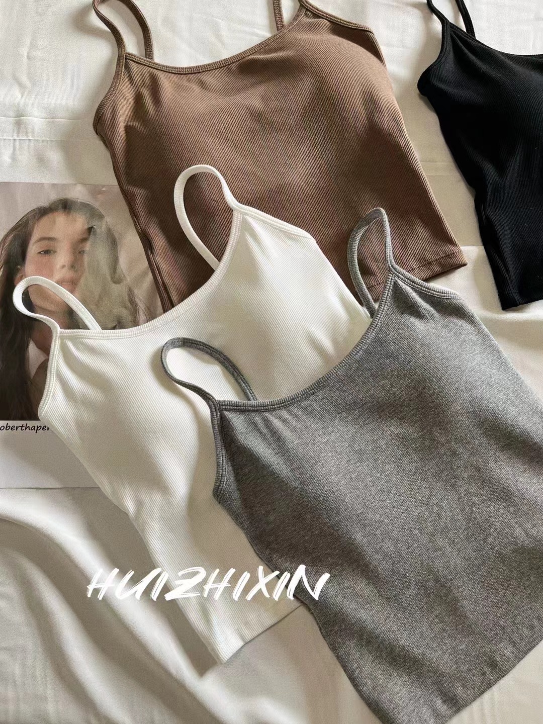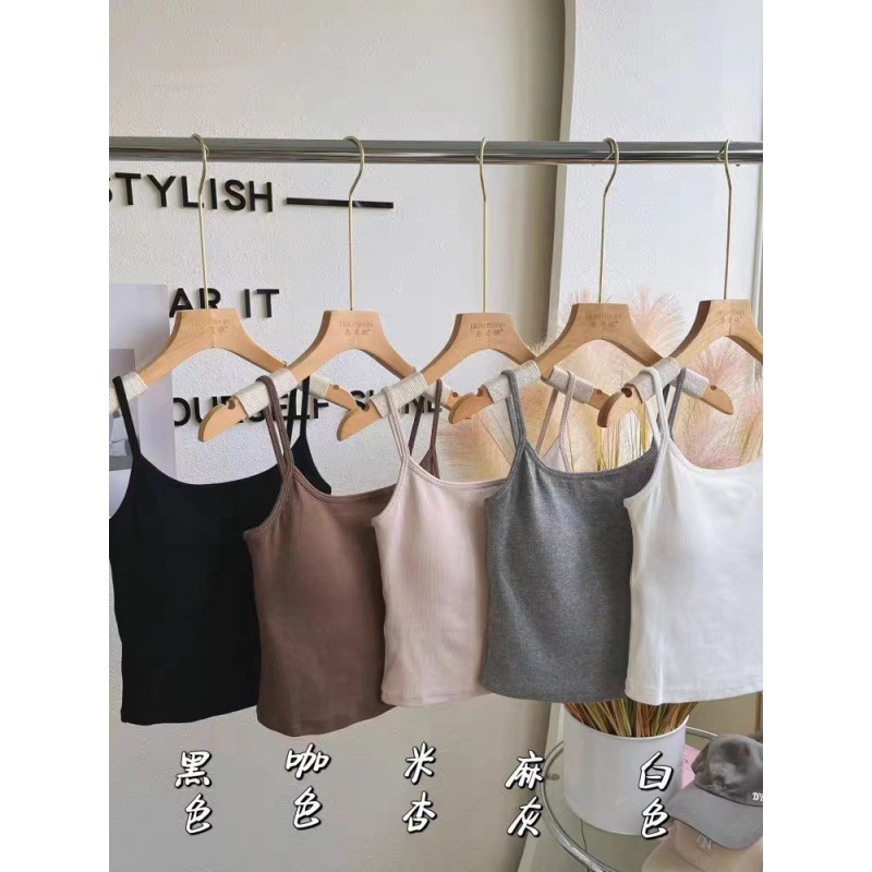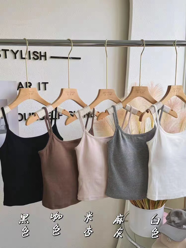 봄과 여름 새로운 한국 스타일 소녀의 얇은 어깨 끈 실 캐미솔 여성 속옷 가슴 패드 뷰티 백 탑스토어 가기