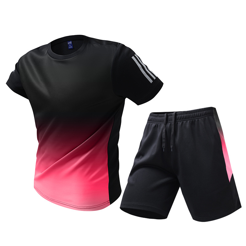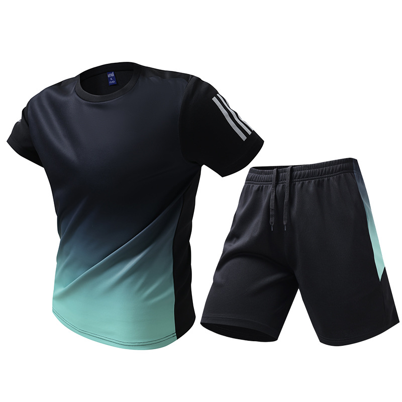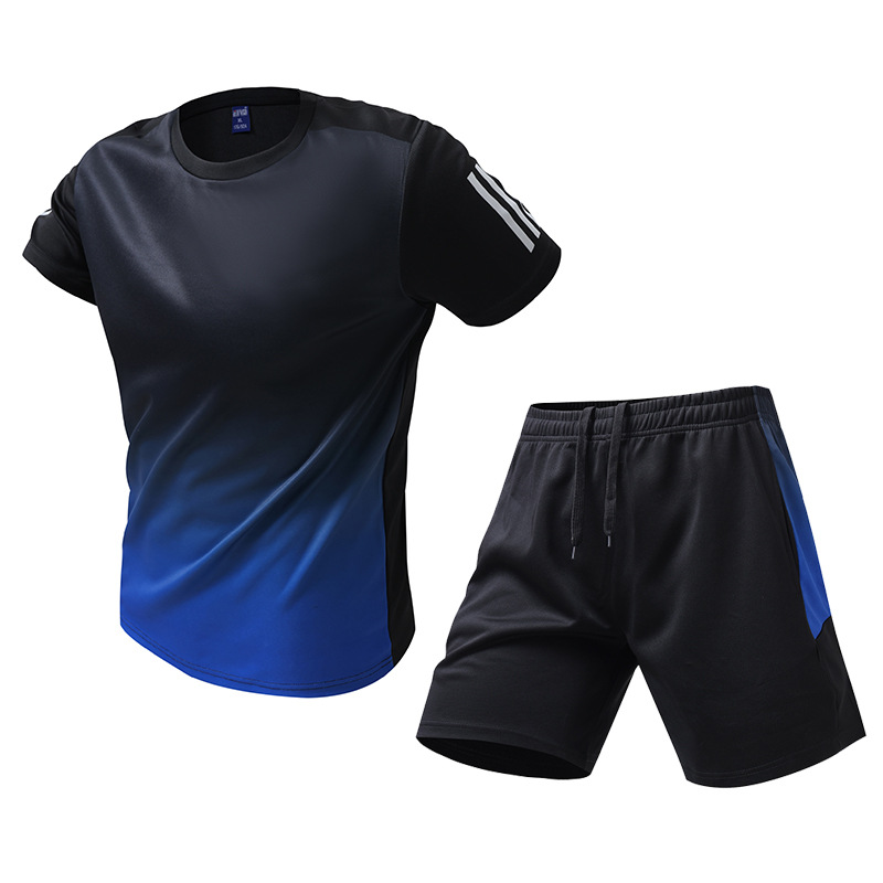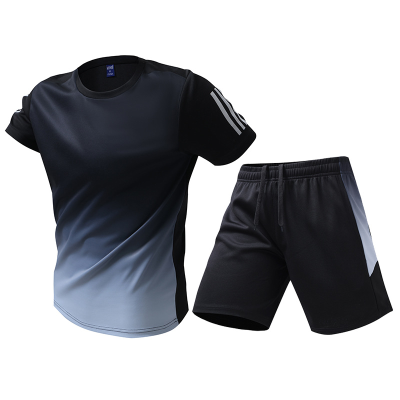 플러스 사이즈 반팔 스포츠 세트 남자 2024 여름 지방 플러스 사이즈 달리기 피트니스 느슨한 투피스 반팔 반바지