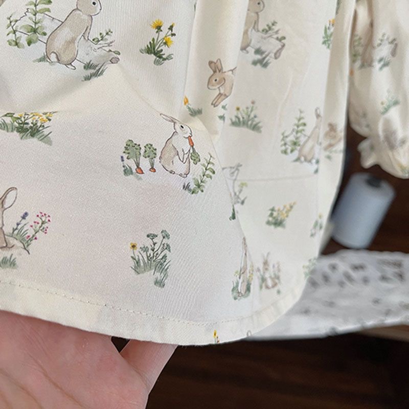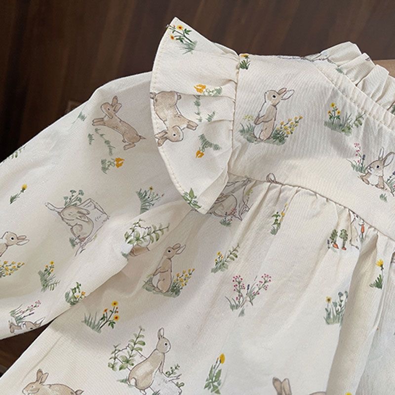아기 소녀의 봄 옷 신선한 꽃 토끼 인형 셔츠 아기 소녀의 봄 새 소녀의 올 매치 셔츠 탑스토어 가기