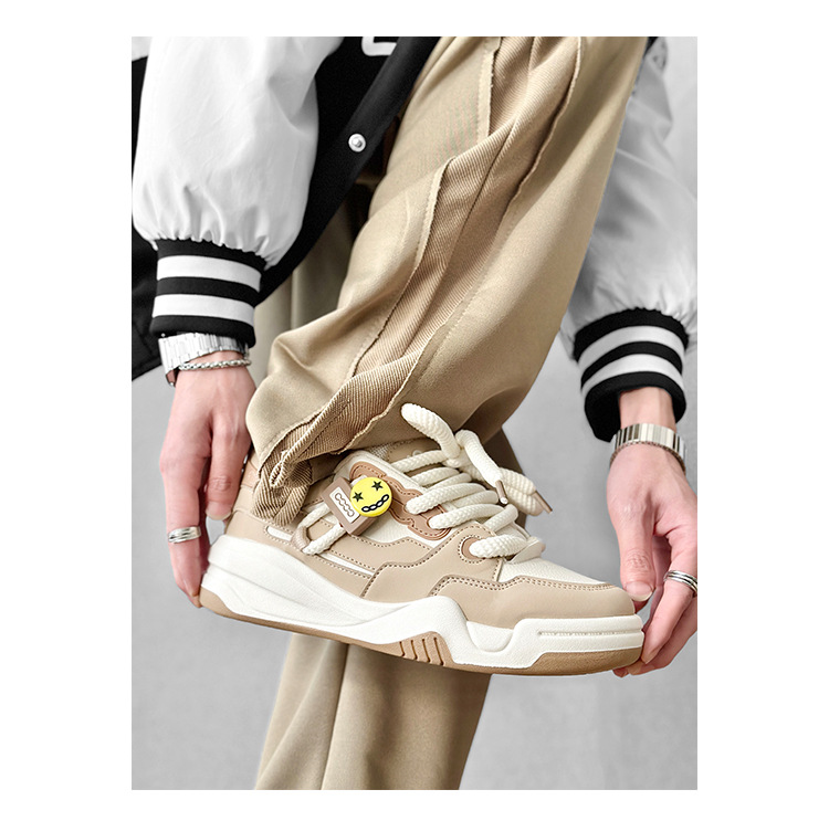 남자 신발 2024 새로운 봄 청소년 두꺼운 단독 증가 스포츠 캐주얼 보드 신발 폭발 빵 신발 아빠 트렌디 신발