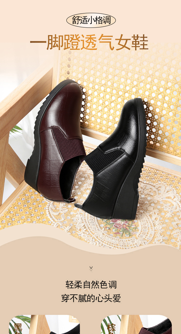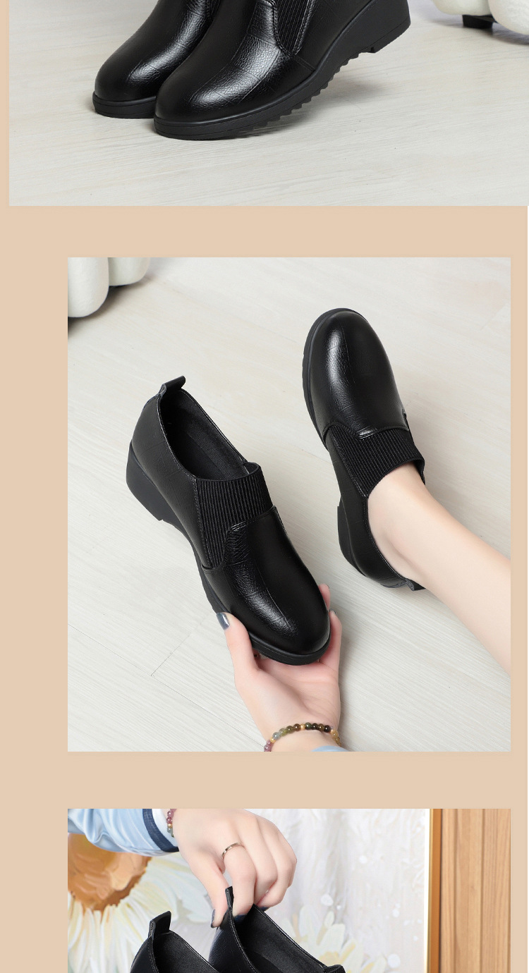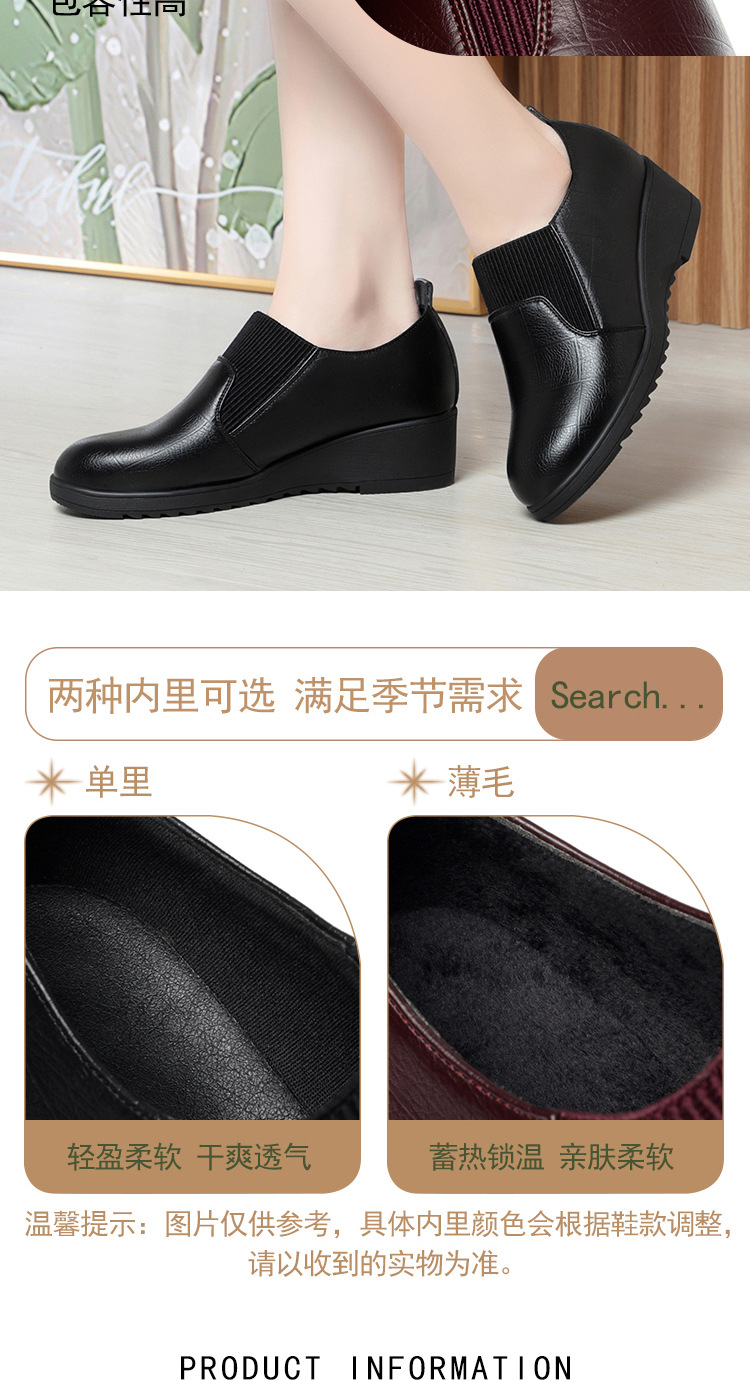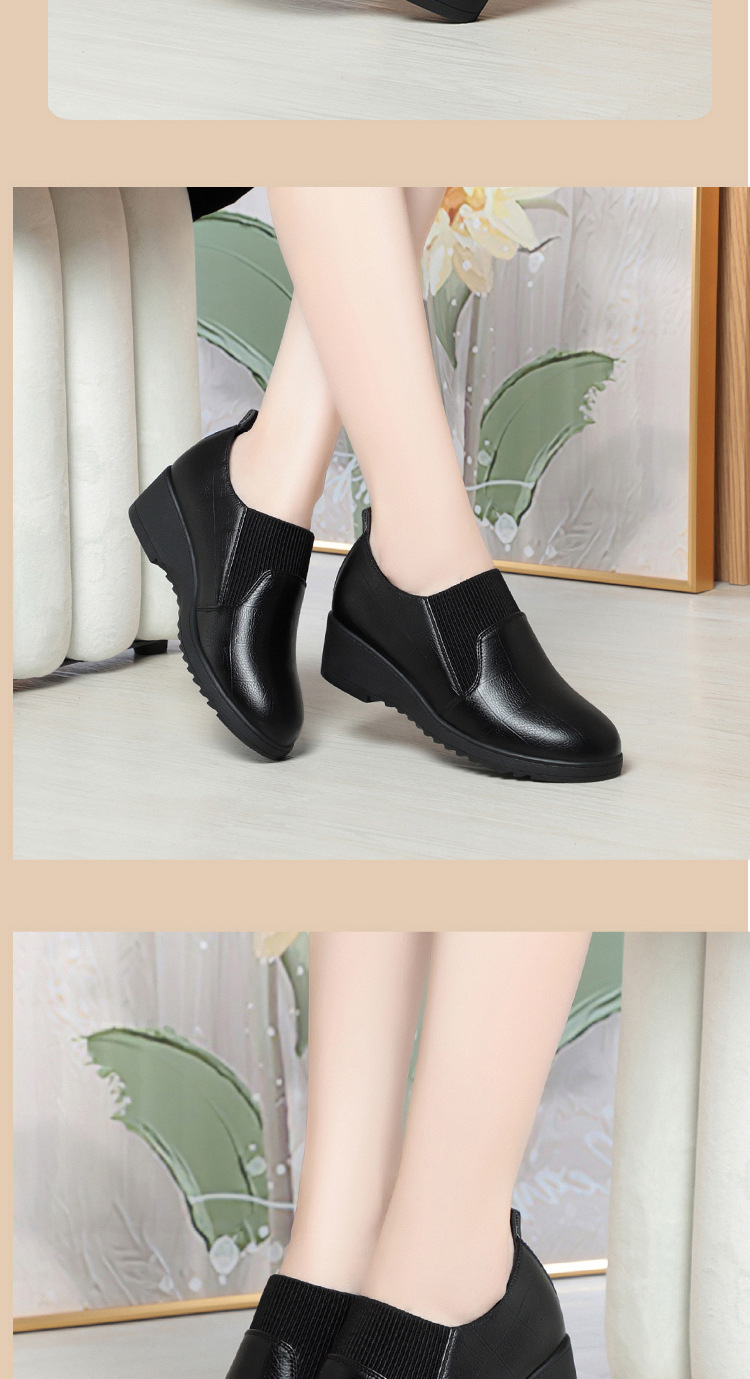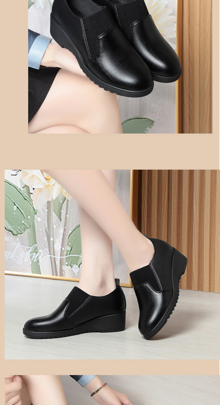 봄과 가을 쐐기 깊은 입 부드러운 바닥 편안한 중년 엄마 신발 여성 가죽 신발 작업 신발 블랙 플랫 힐 싱글 레이어 신발 여성 신발스토어 가기