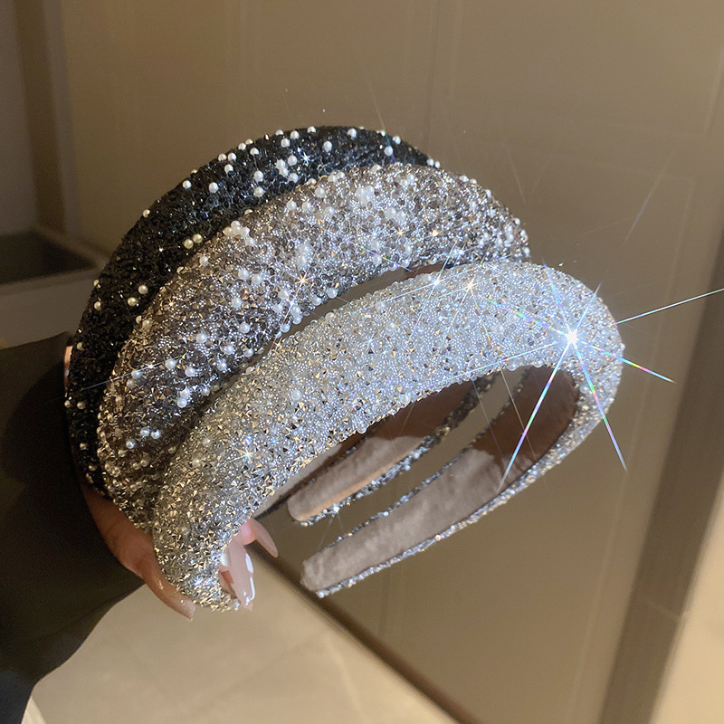 진주 다이아몬드 머리띠 한국 작은 신선한 패션 높은 두개골 상단 압력 머리 머리띠 틈새 빛 고급 고급 헤어 액세서리스토어 가기