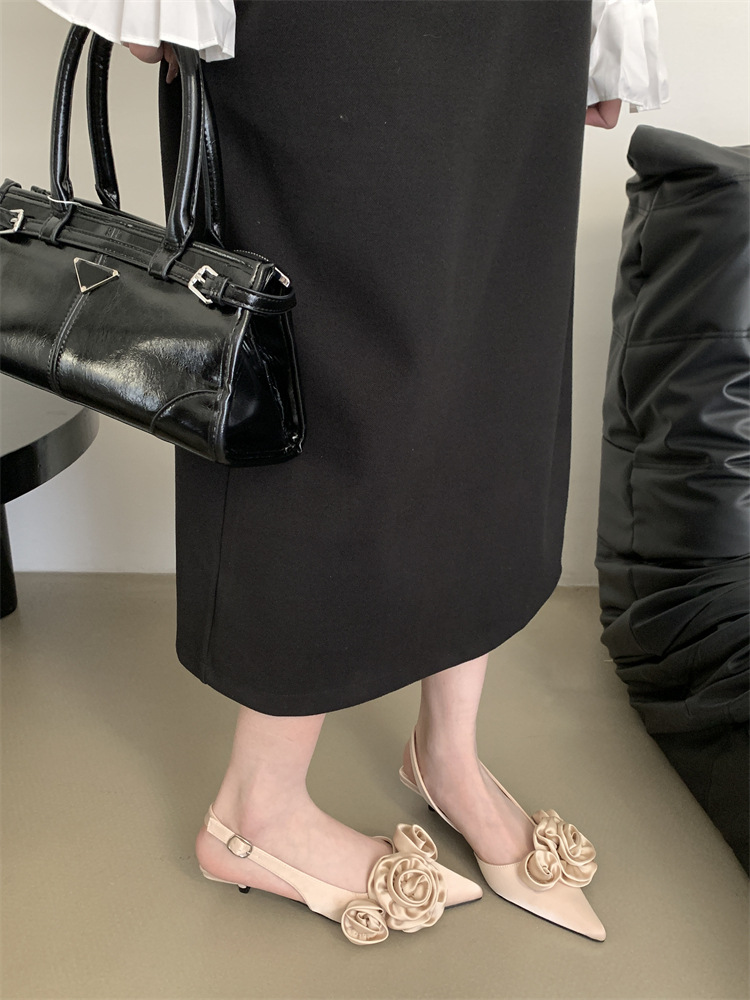 뾰족한 발가락 프랑스 꽃 검은 닫힌 발가락 샌들 요정 신발 2024 새로운 봄과 여름 저녁 여성 싱글 레이어 신발스토어 가기