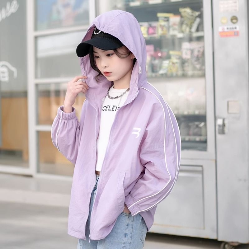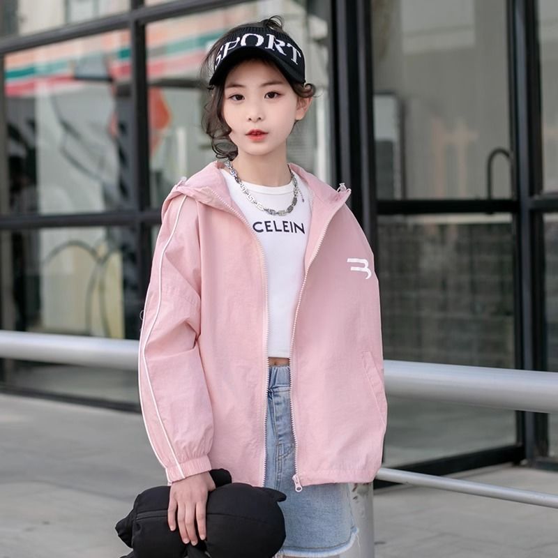 봄과 가을의 새로운 어린이 카디건 얇은 코트 미디어와 큰 아이들 소녀 서양식 후드 재킷 소녀의 방풍 겉옷스토어 가기