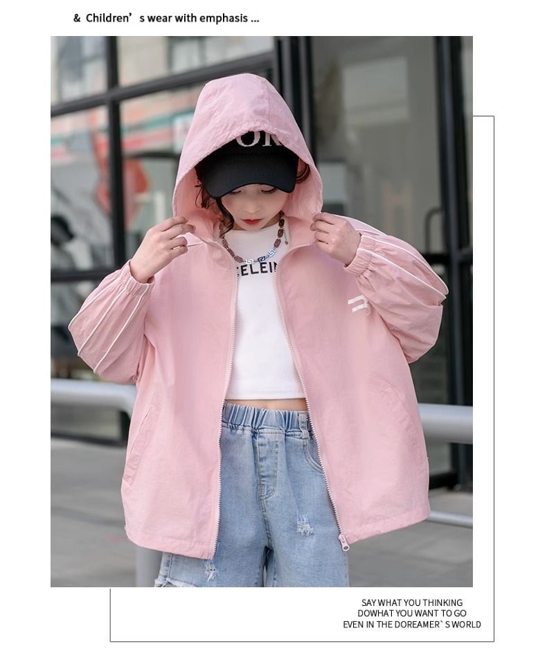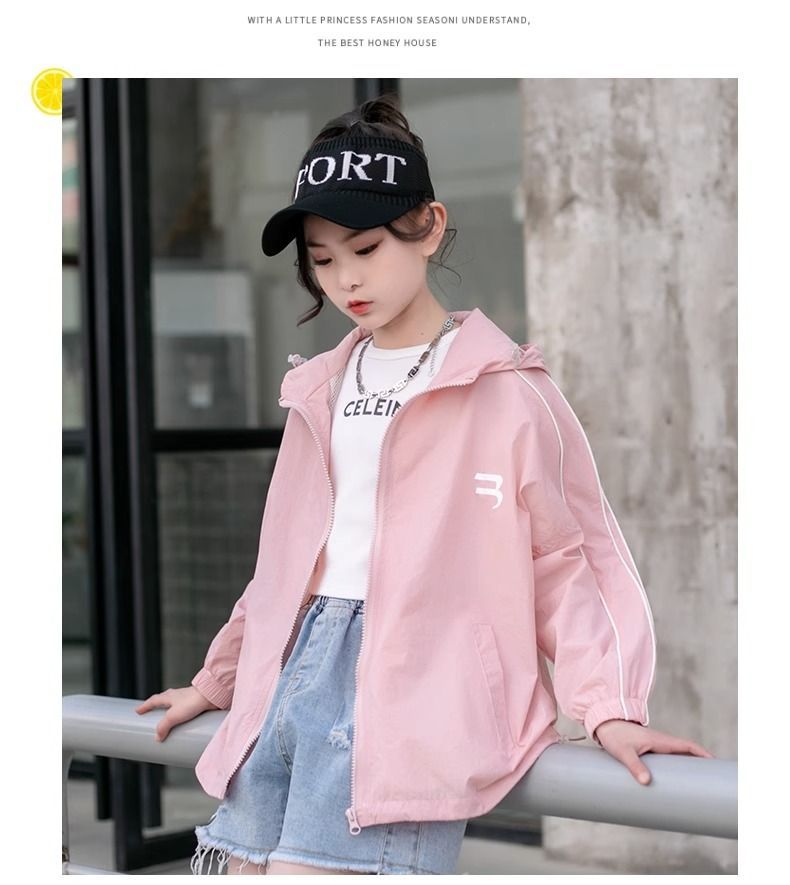 봄과 가을의 새로운 어린이 카디건 얇은 코트 미디어와 큰 아이들 소녀 서양식 후드 재킷 소녀의 방풍 겉옷