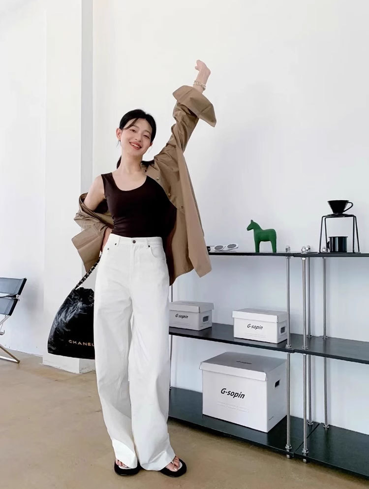 既有宽松舒适的效果,又能起到修饰腿型显瘦的;