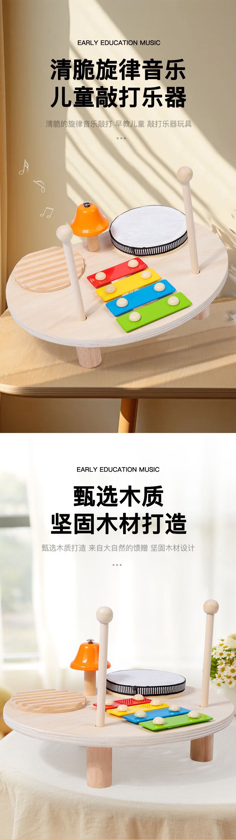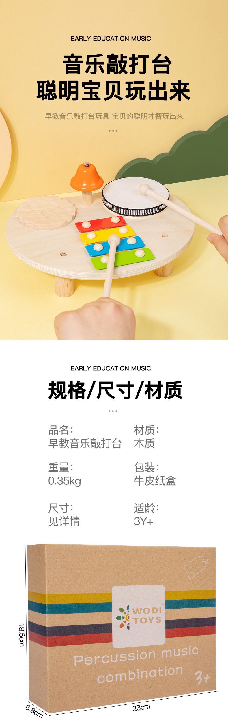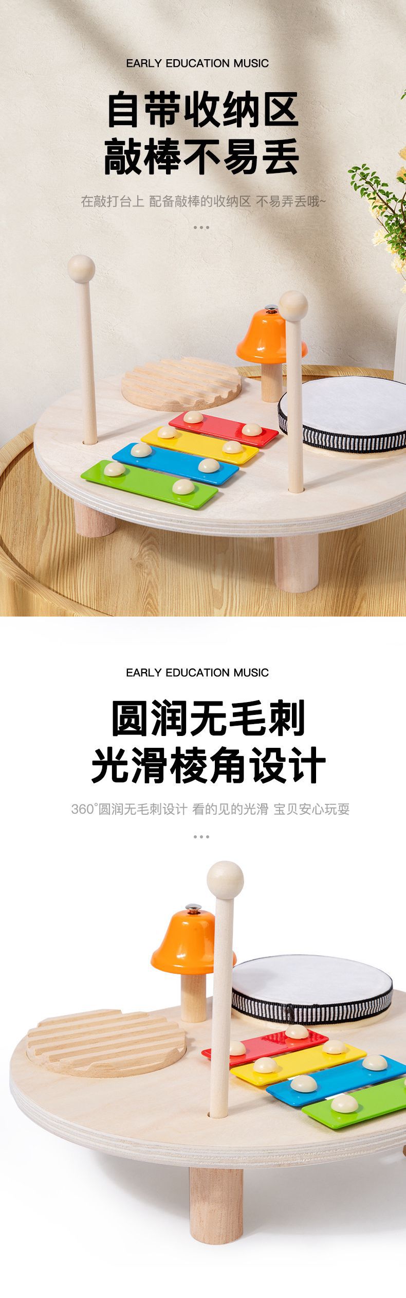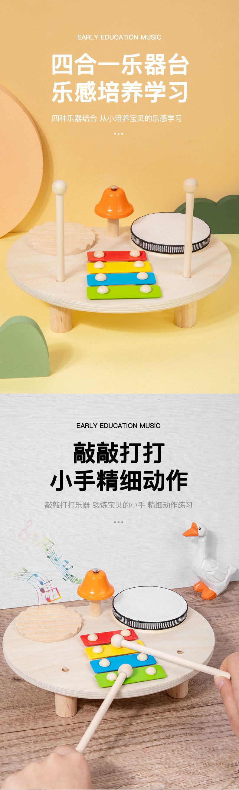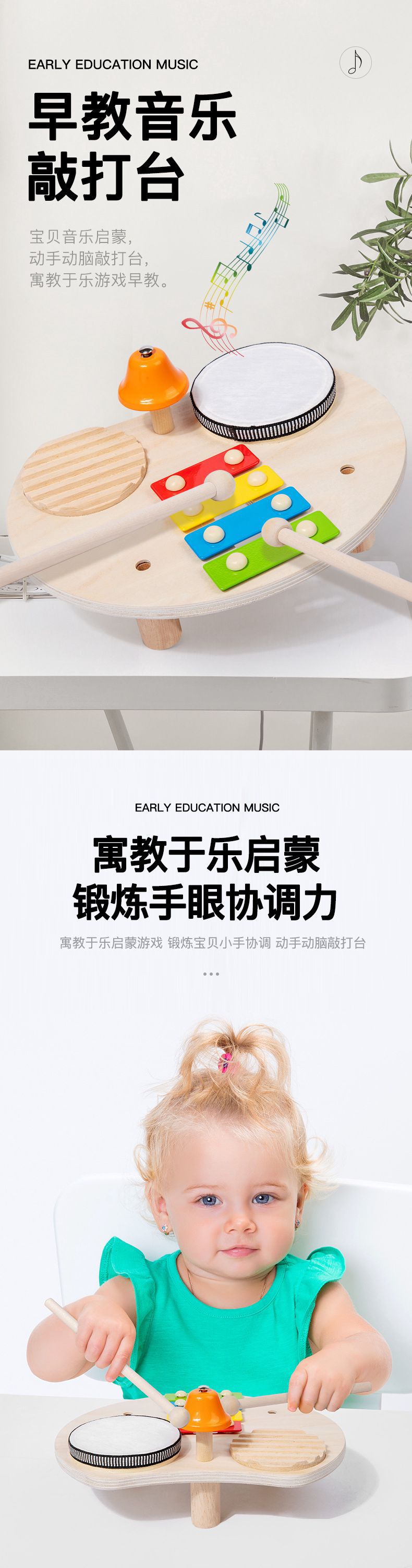 어린이 드럼 세트 음악 테이블 나무 다기능 타악기 아기 게임 테이블 교육 장난감스토어 가기