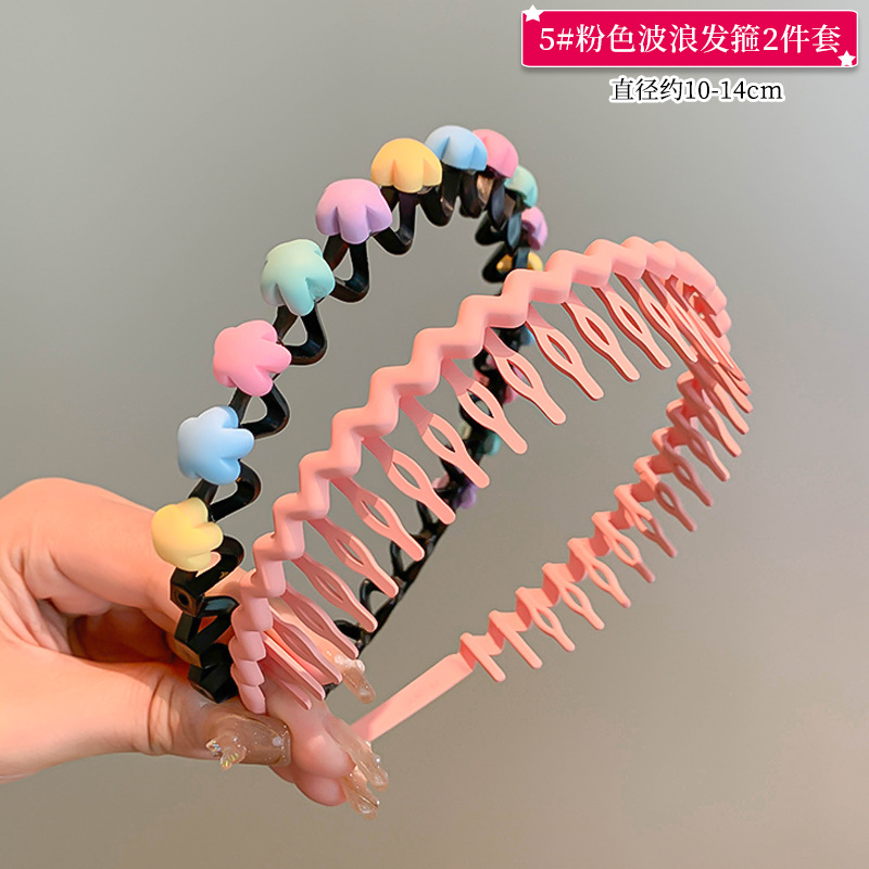 • 5 # 핑크 웨이브 헤어 밴드 2 피스 세트