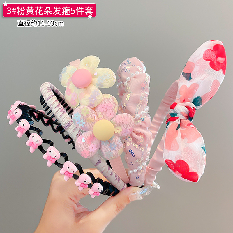 • 3 # 핑크 노란 꽃 머리띠 5 피스 세트