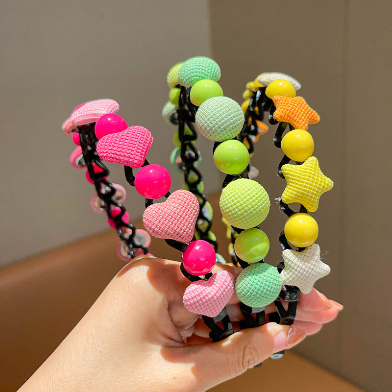 • 1 # 핑크 사랑 하트 + 녹색 점 + 노란색 다섯개 별 머리띠