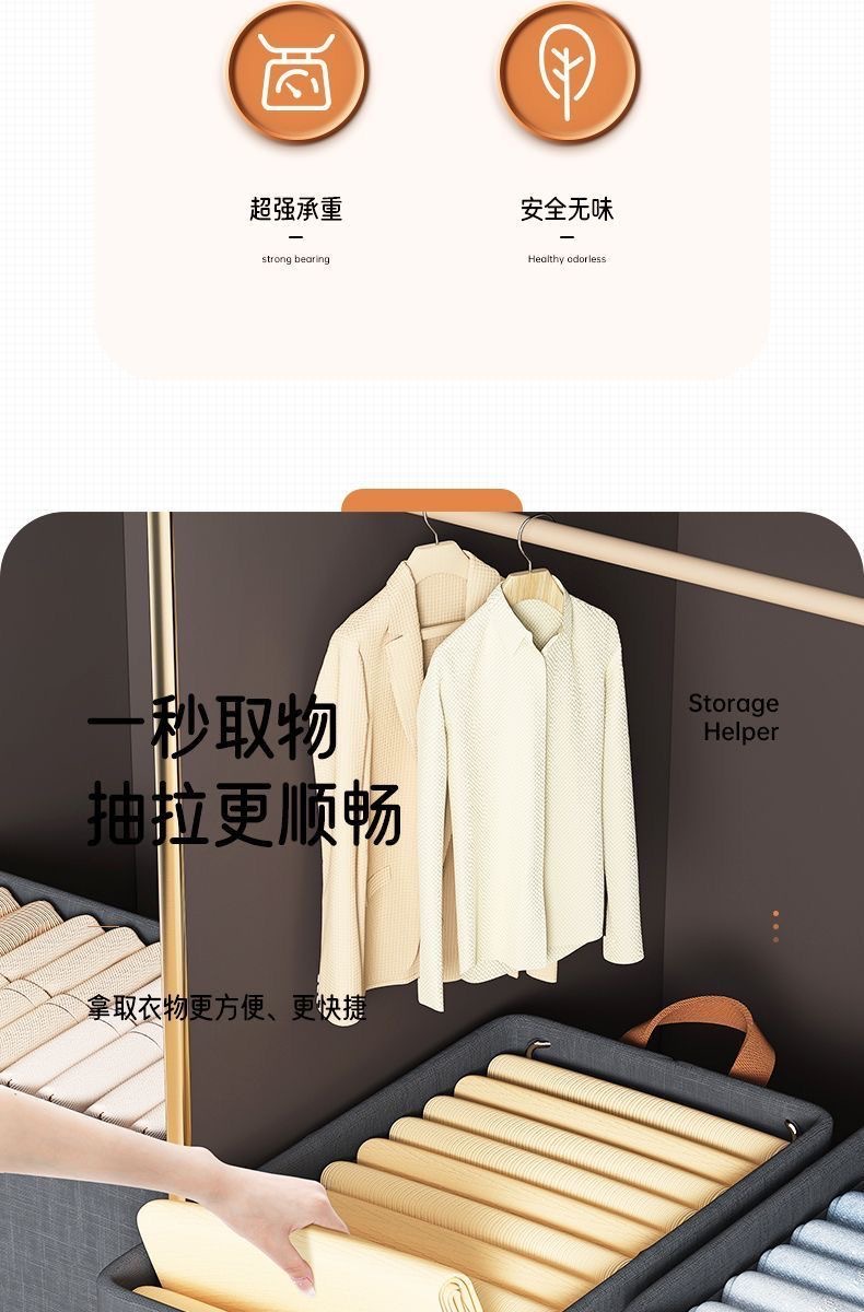 의류 양이온 저장 상자 대형 서랍 형 스웨터 팬츠 마감 상자 가정용 옷장 접이식 스틸 프레임 상자