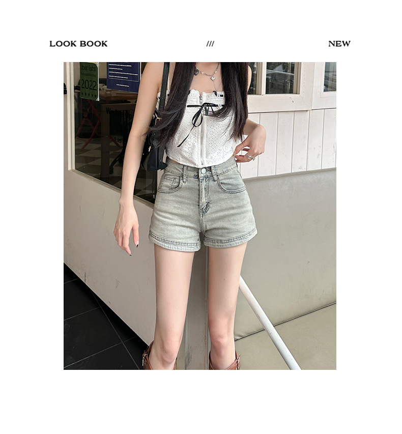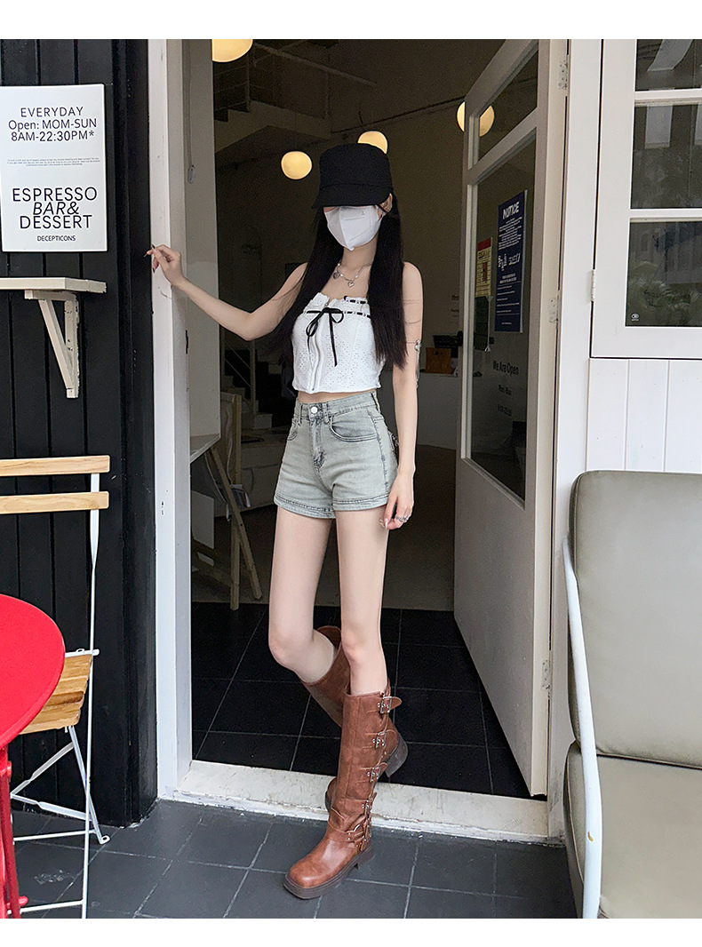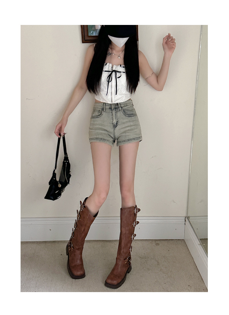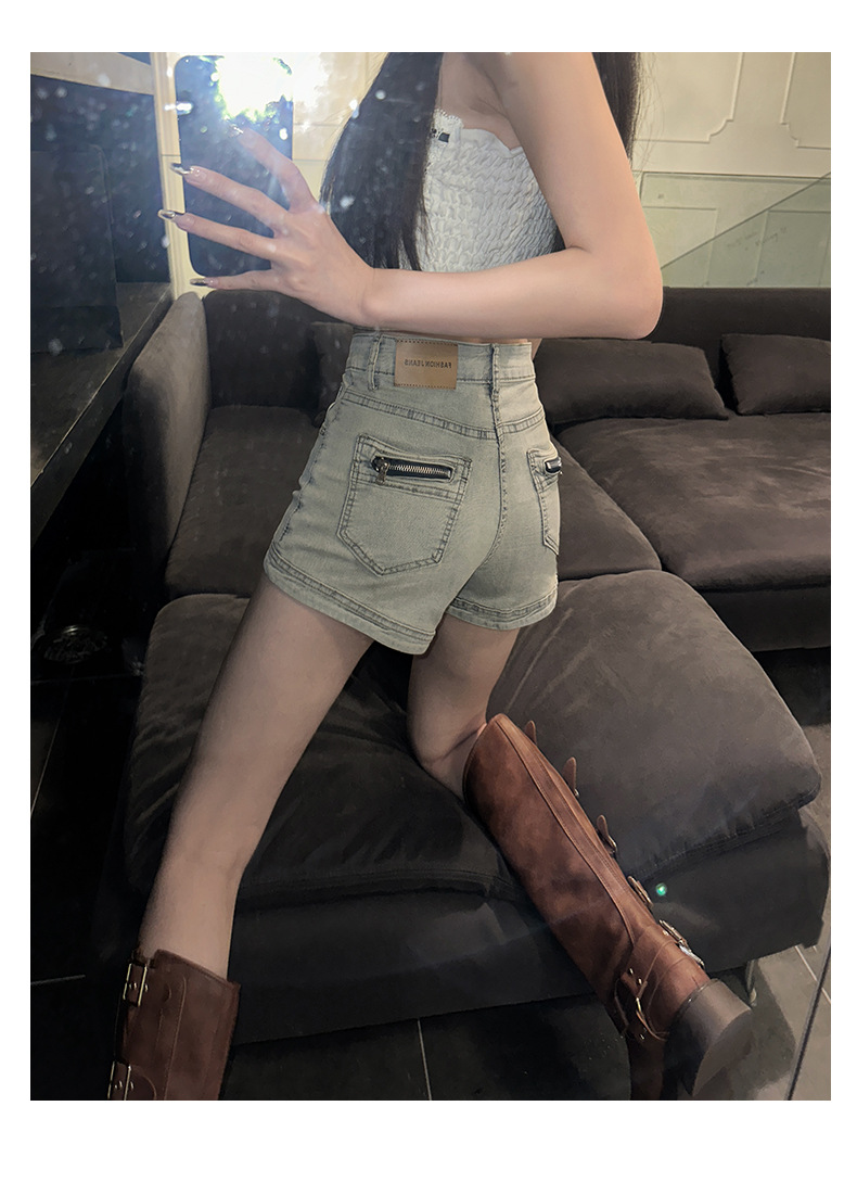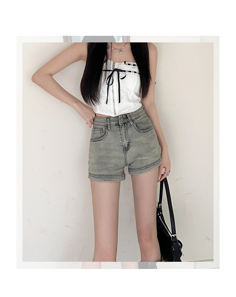 꽉 뜨거운 소녀 복고풍 데님 반바지 여성 여름 작은 높은 허리 섹시한 A 라인 핫팬츠 스트레이트 와이드 다리 바지스토어 가기