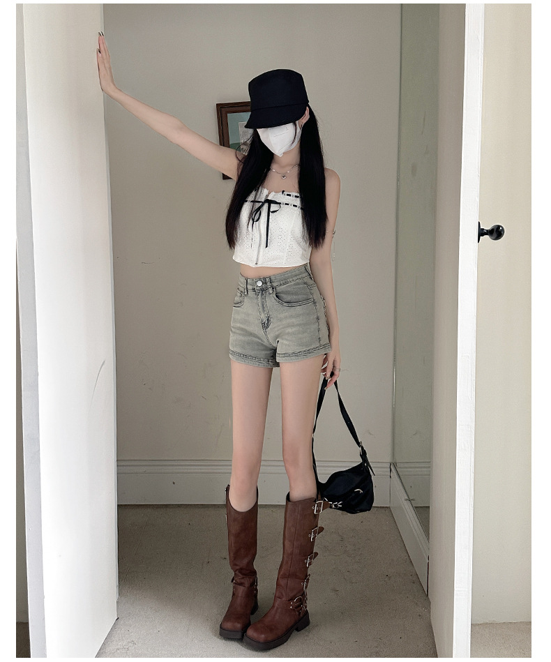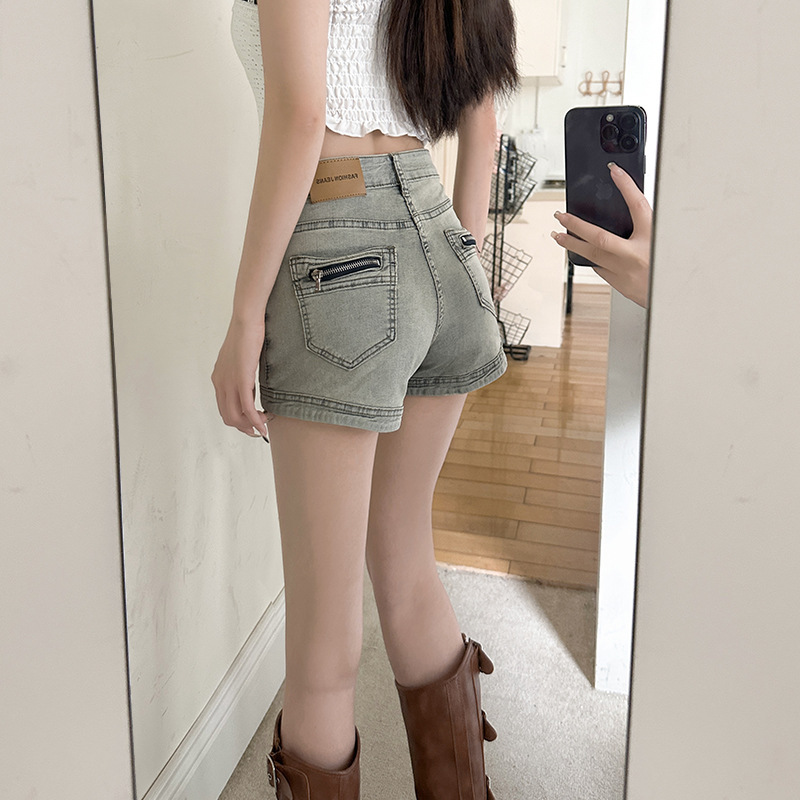 꽉 뜨거운 소녀 복고풍 데님 반바지 여성 여름 작은 높은 허리 섹시한 A 라인 핫팬츠 스트레이트 와이드 다리 바지