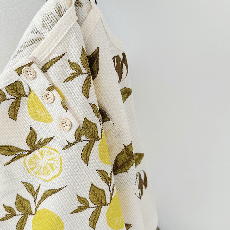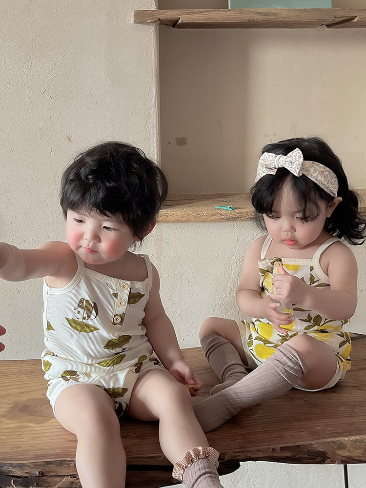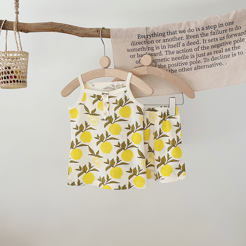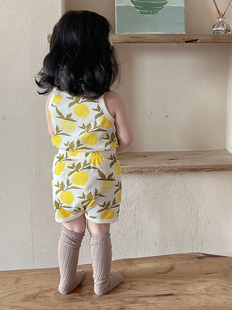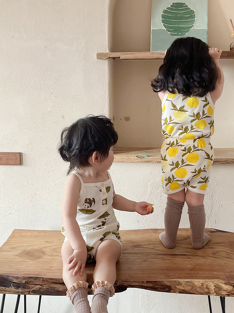 2024 여름 북유럽 스타일 어린이 잠옷 순수한면 와플 소녀 홈웨어 베이비 조끼 캐미솔 세트스토어 가기