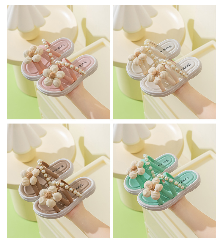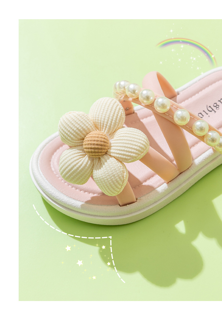 여성 두꺼운 밑창 꽃 슬리퍼 여름 야외 착용 2024 새로운 요정 스타일 스커트 로마 진주 샌들스토어 가기