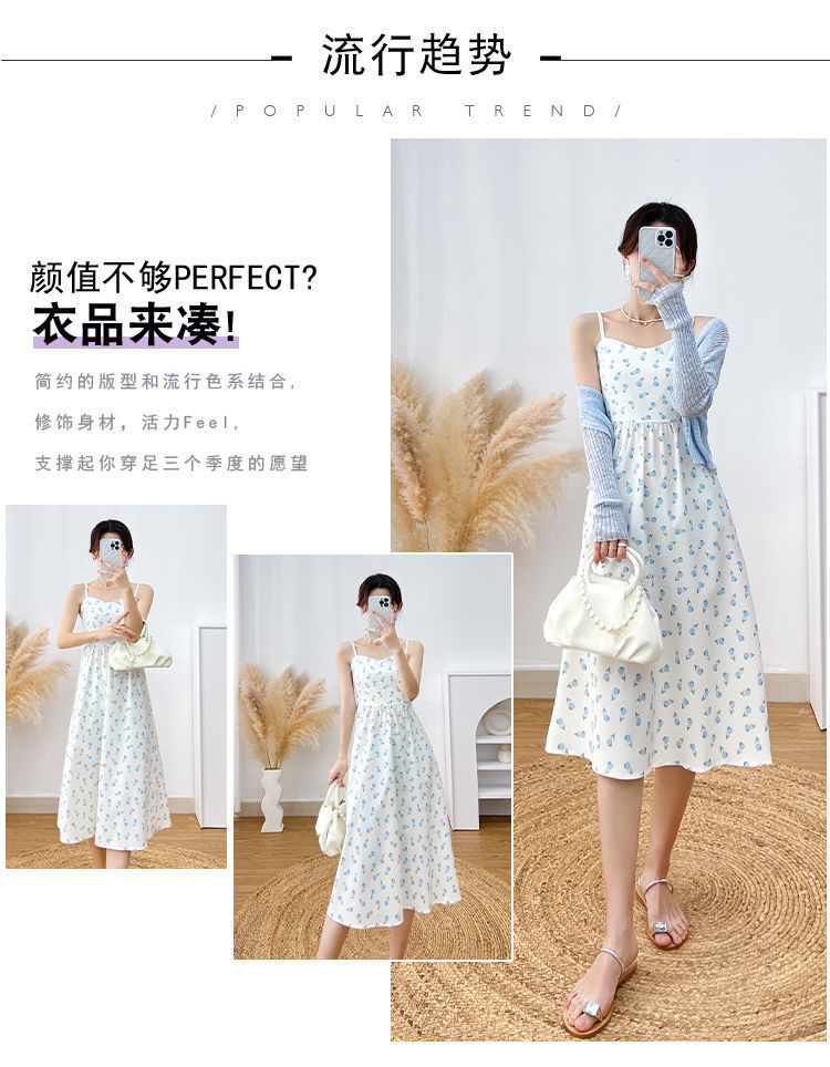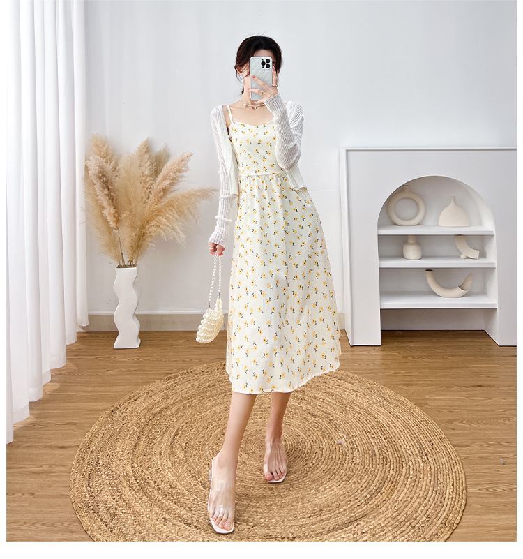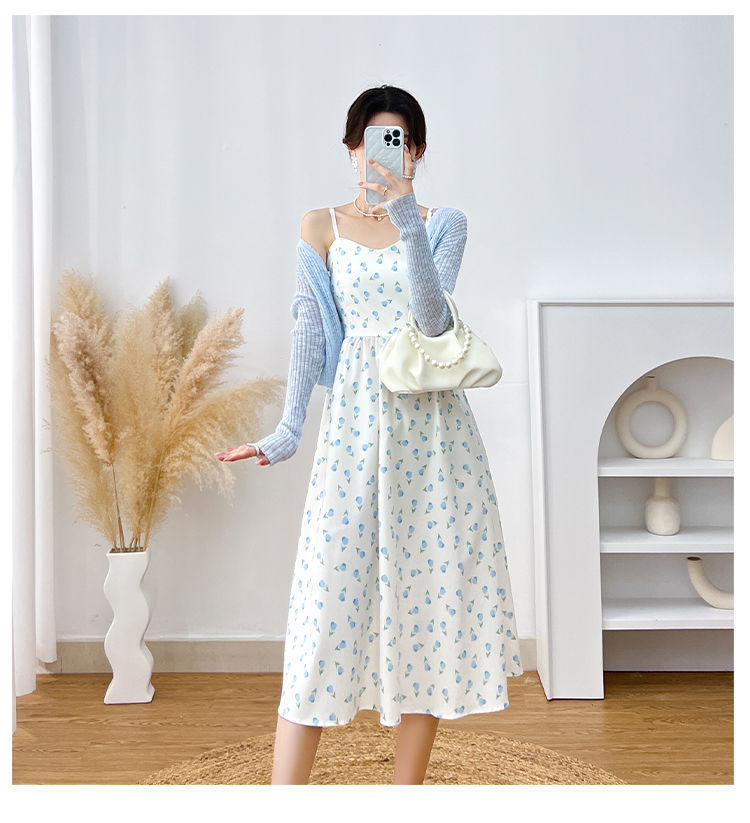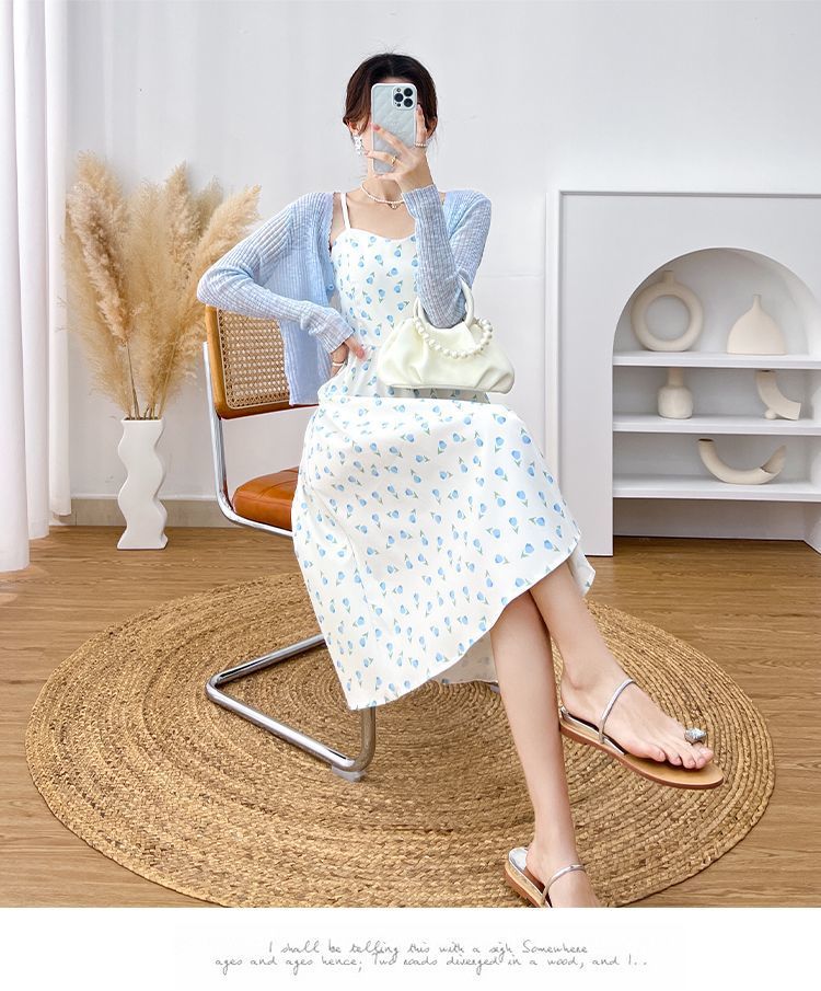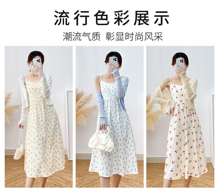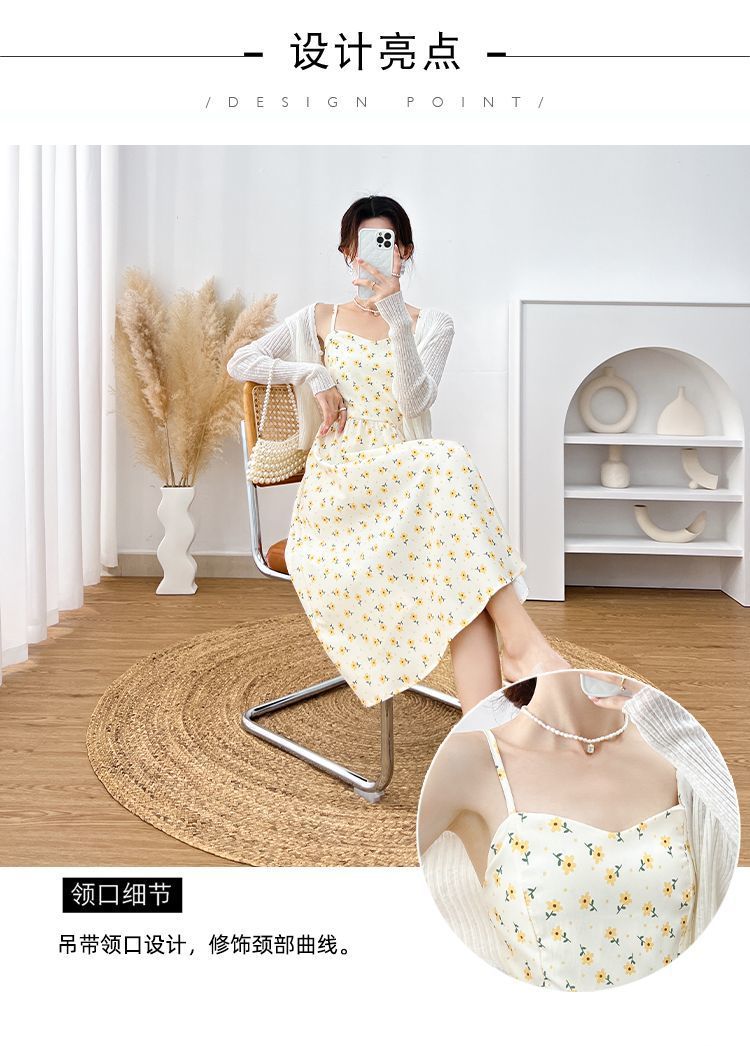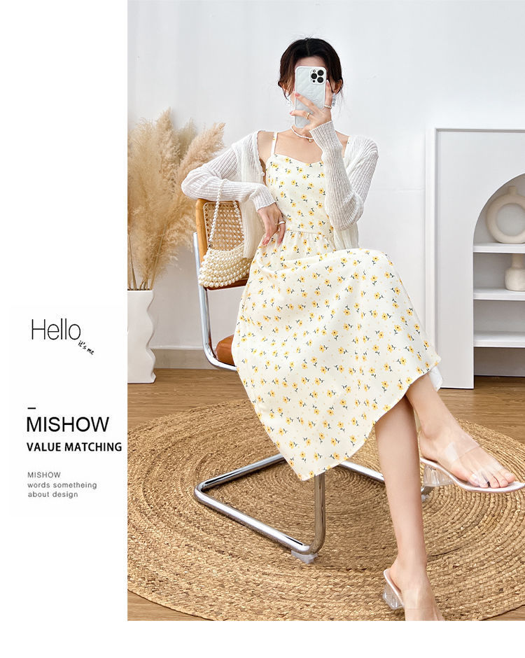 2024 새로운 멋진 여성 의류 프랑스 첫사랑 디자인 감각 틈새 꽃 끈 원피스 투피스 스커트스토어 가기