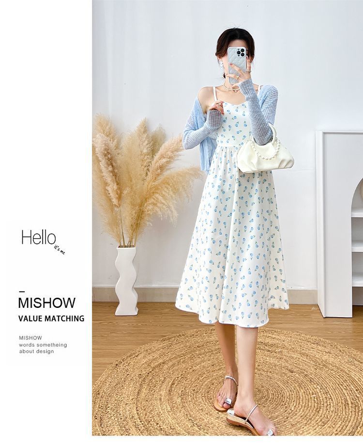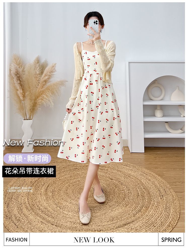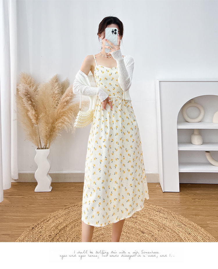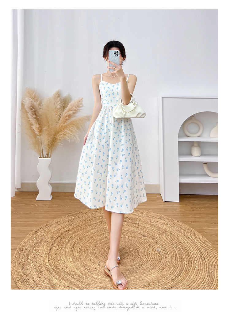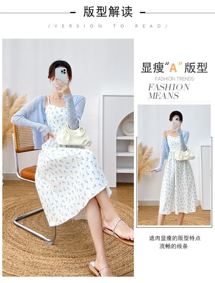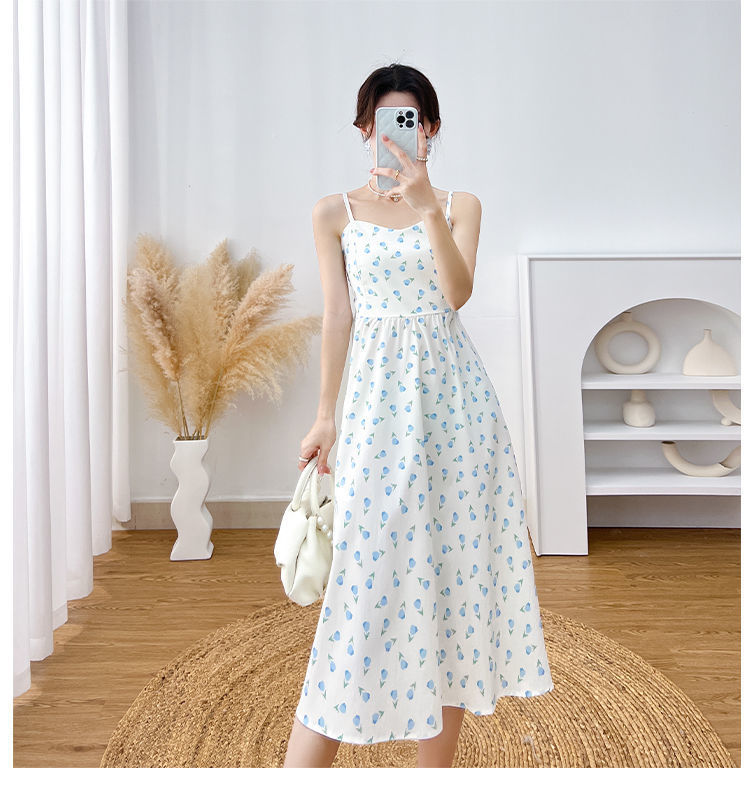 2024 새로운 멋진 여성 의류 프랑스 첫사랑 디자인 감각 틈새 꽃 끈 원피스 투피스 스커트스토어 가기