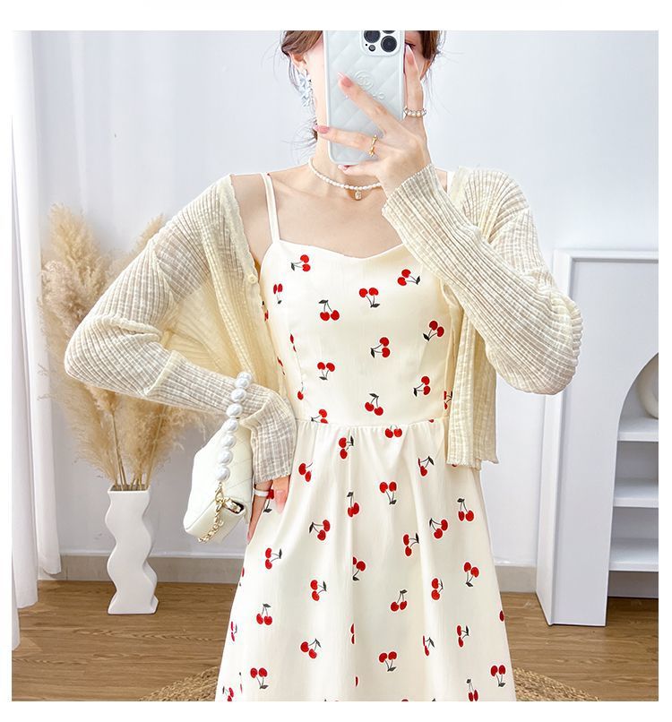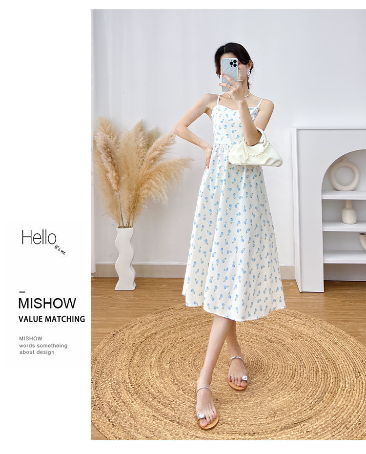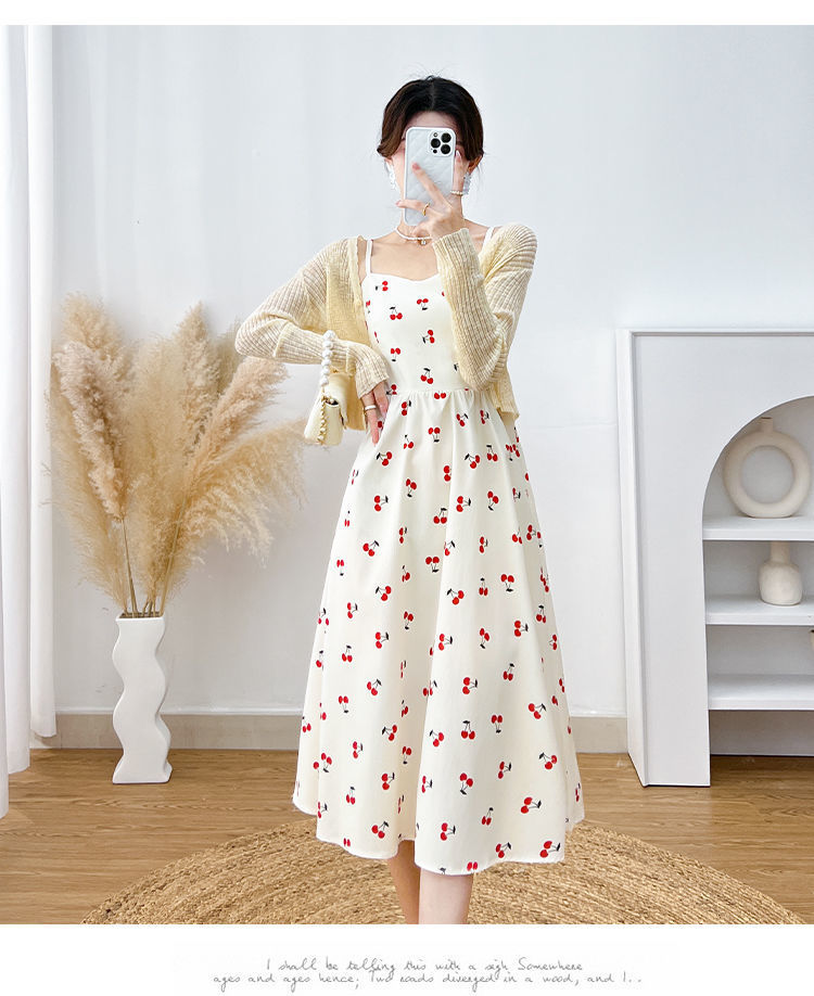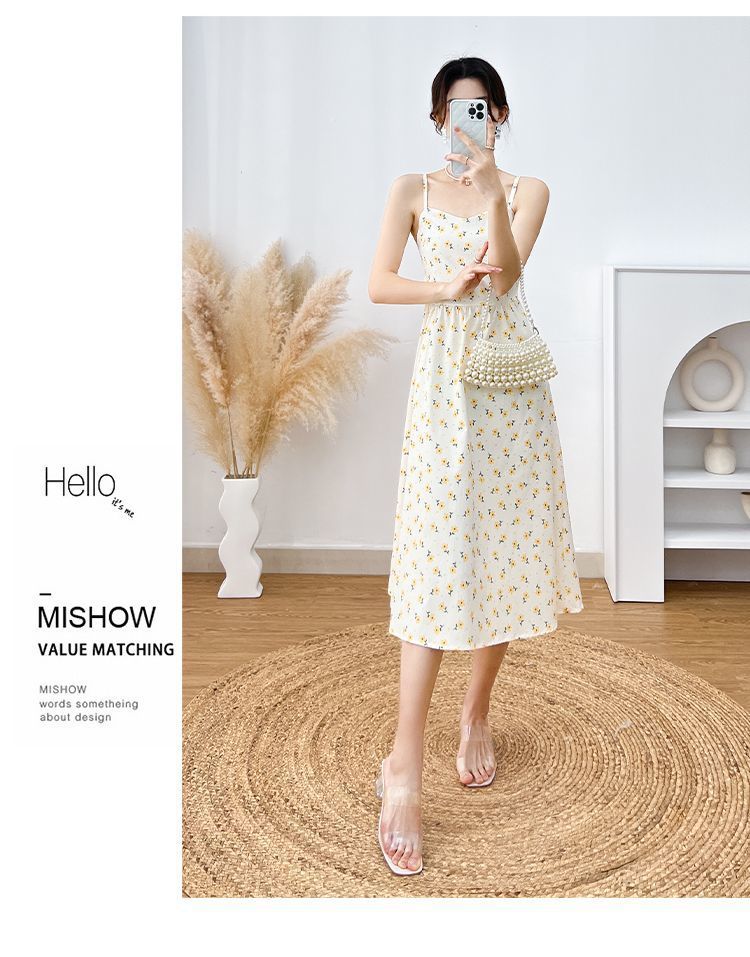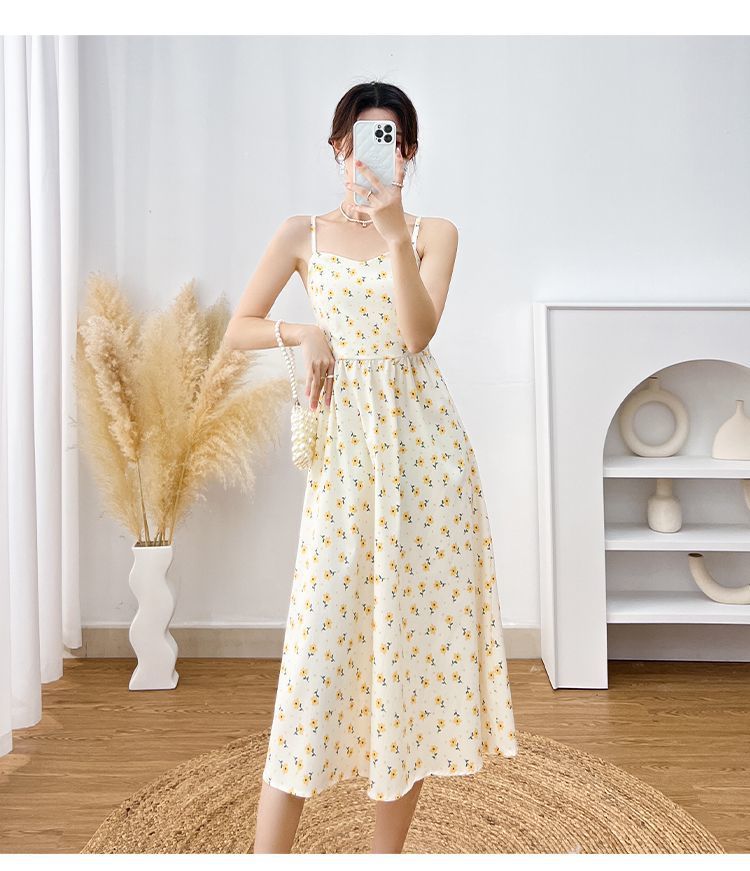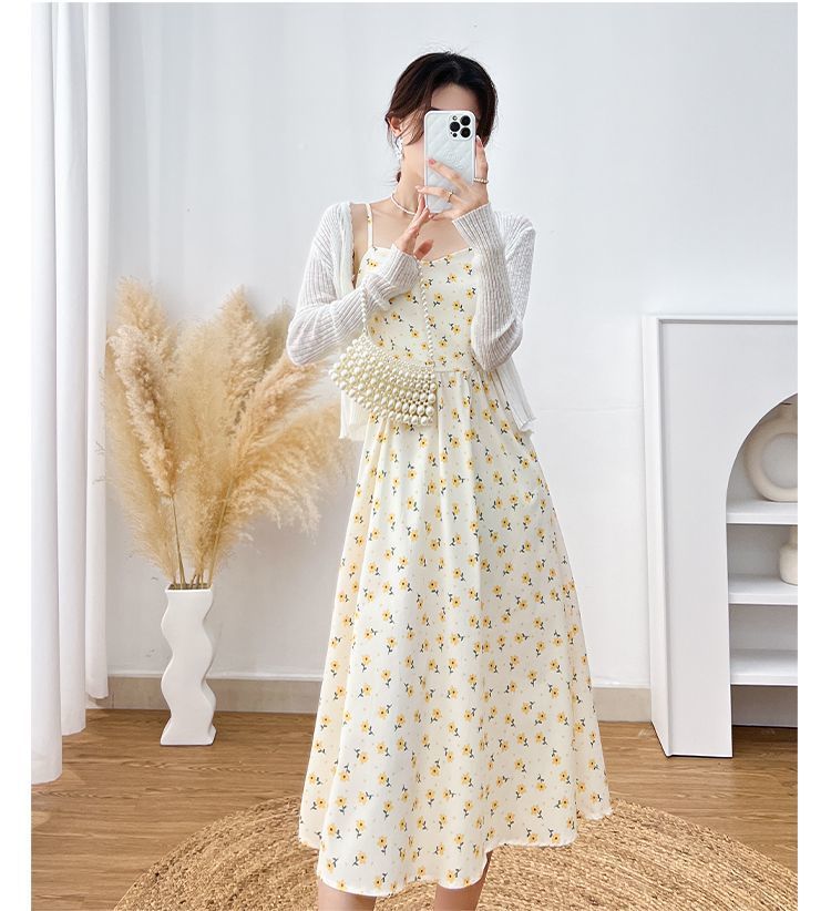 2024 새로운 멋진 여성 의류 프랑스 첫사랑 디자인 감각 틈새 꽃 끈 원피스 투피스 스커트스토어 가기