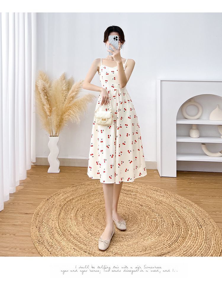 2024 새로운 멋진 여성 의류 프랑스 첫사랑 디자인 감각 틈새 꽃 끈 원피스 투피스 스커트