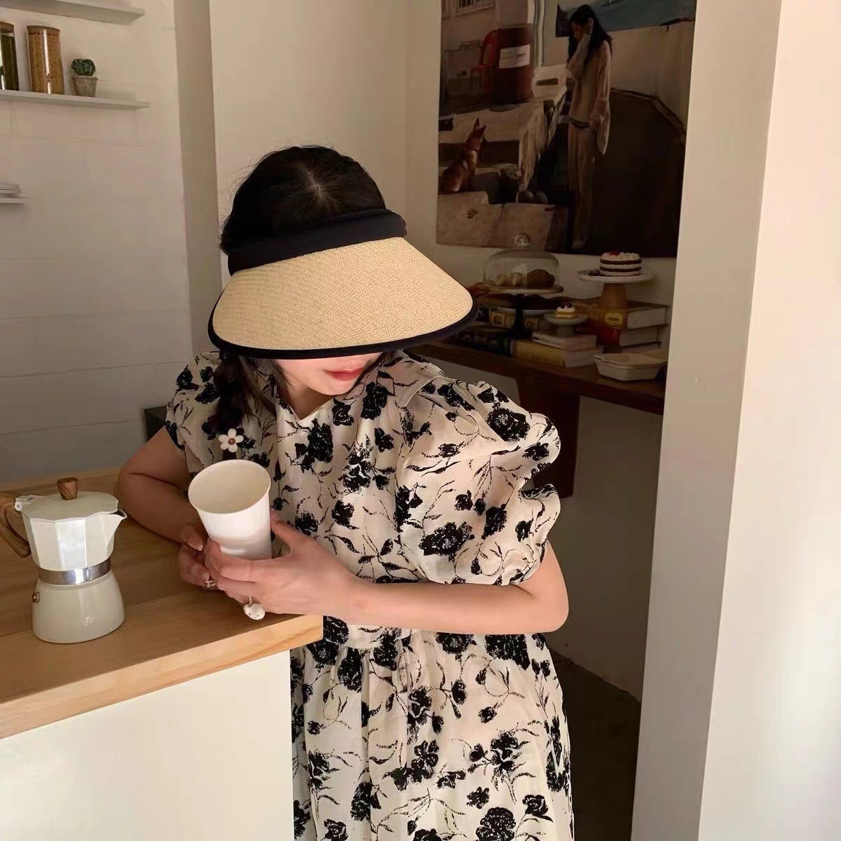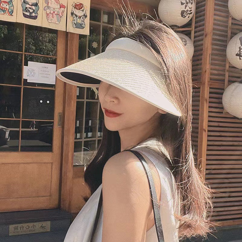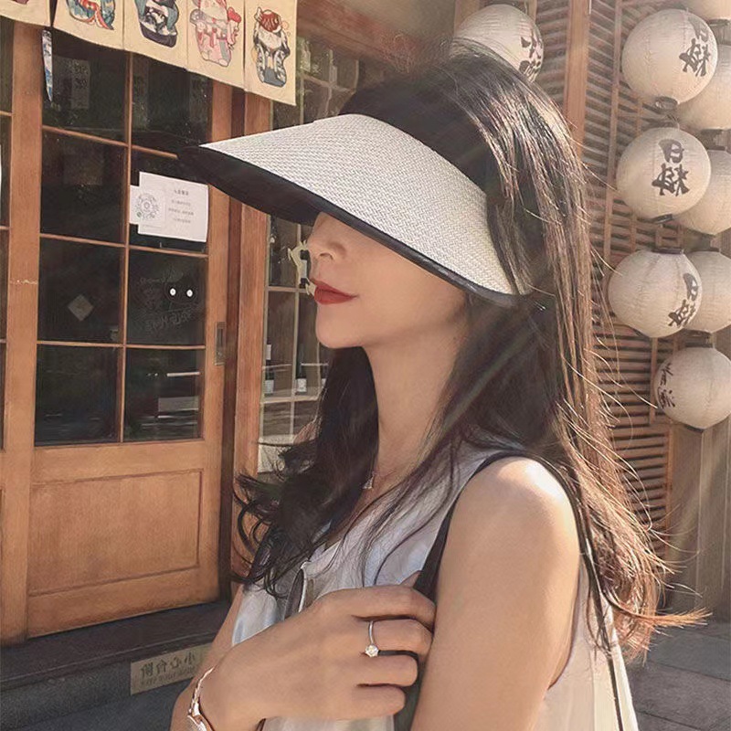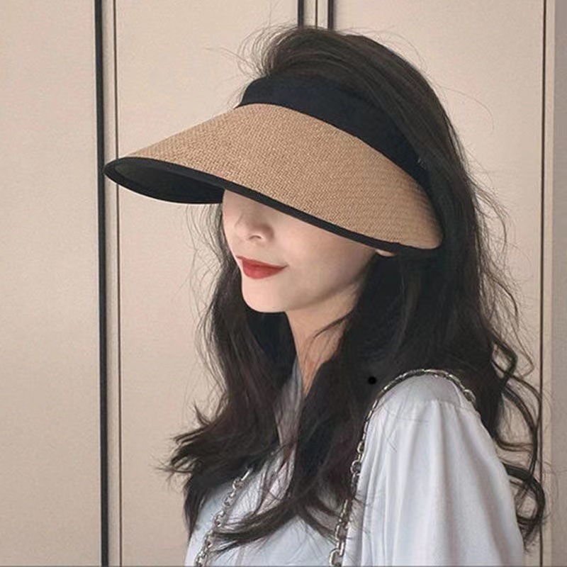 여름 큰 테두리 밀짚 모자 태양 보호 자외선 보호 태양 모자 패션 올 매치 야외 여성 그물 빨간 태양 모자스토어 가기
