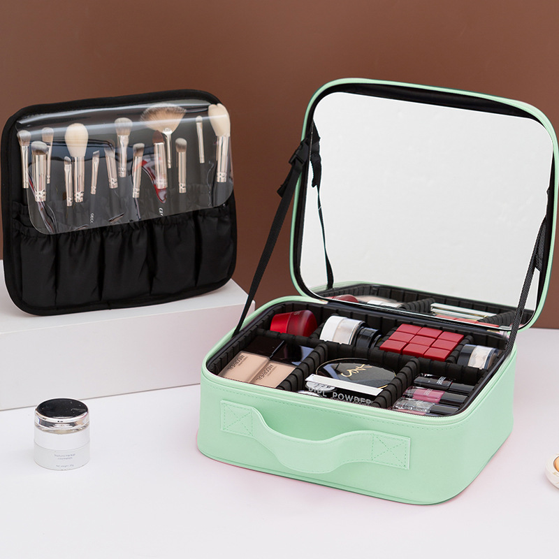 국경 간 재고 전체 화면 거울 휴대용 여행 화장품 보관 가방 PU 방수 대용량 화장품 케이스