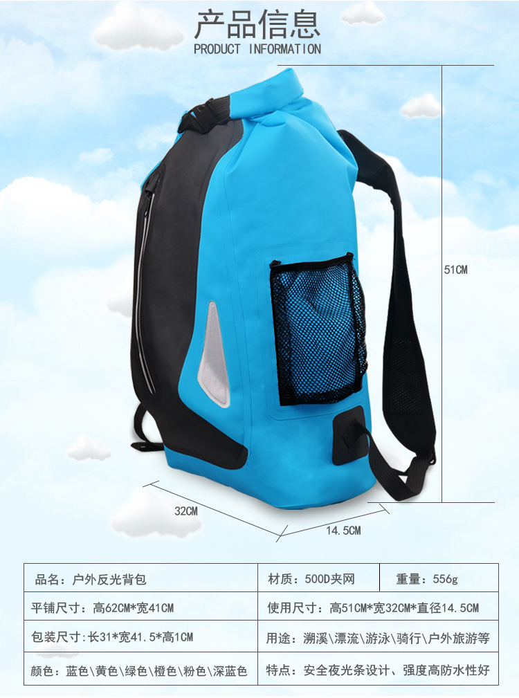 반사 야외 방수 배낭 방수 가방 방수 가방 드리프트 방수 가방 야외 PVC 드리프트 방수 배럴 가방 Luminous