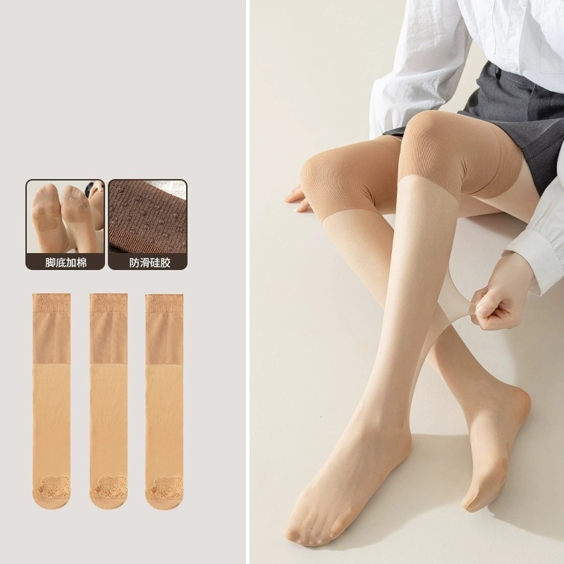무릎 보호 스타킹 여성의 무릎 위 에어컨 양말 여름 얇은 안티-snagging 보이지 않는 피부색 스타킹 여성의 오래된 차가운 다리