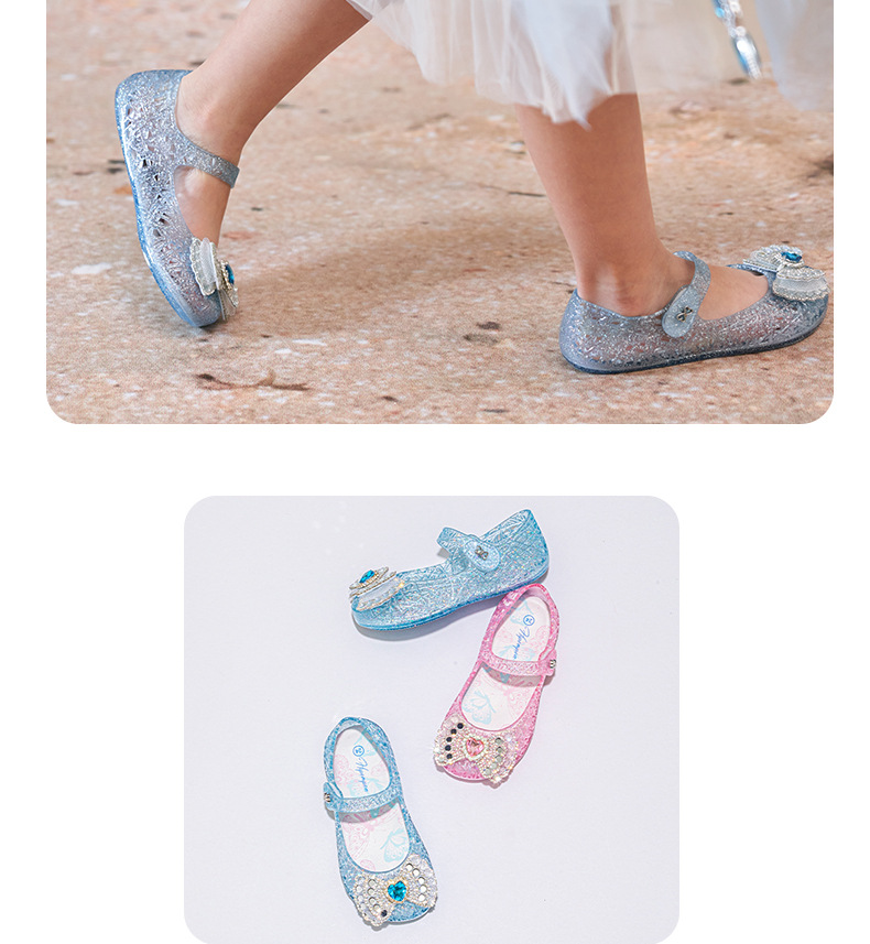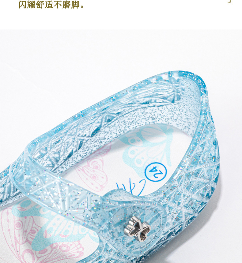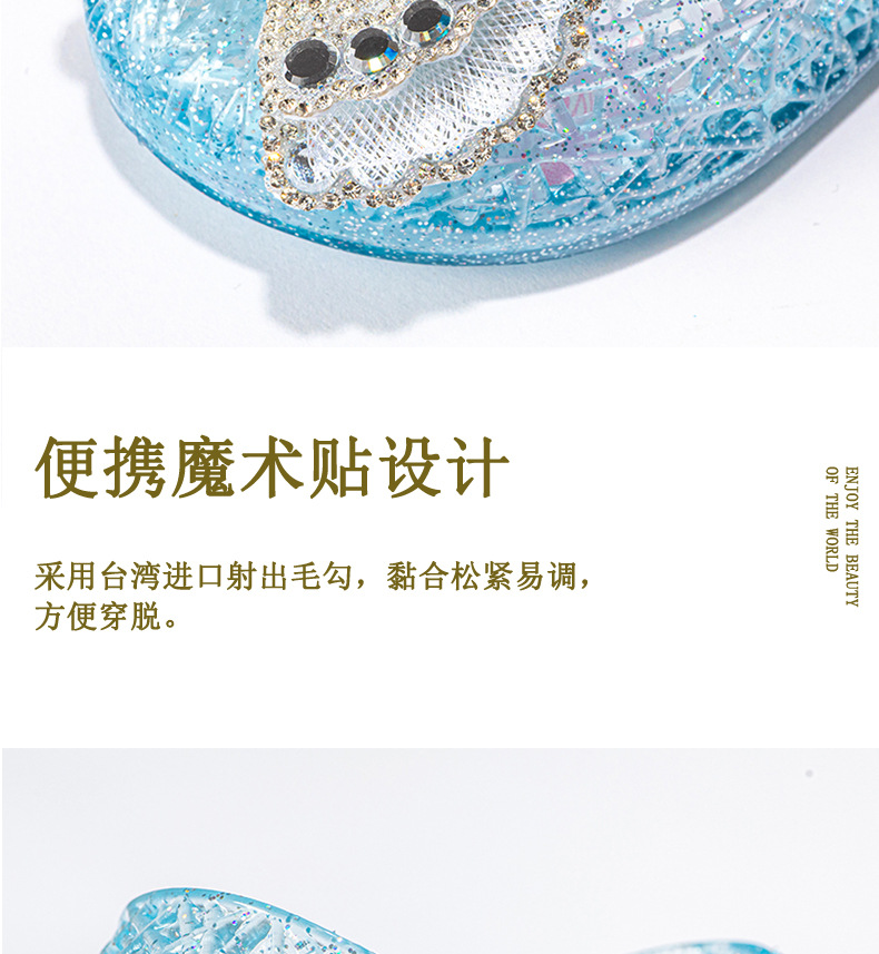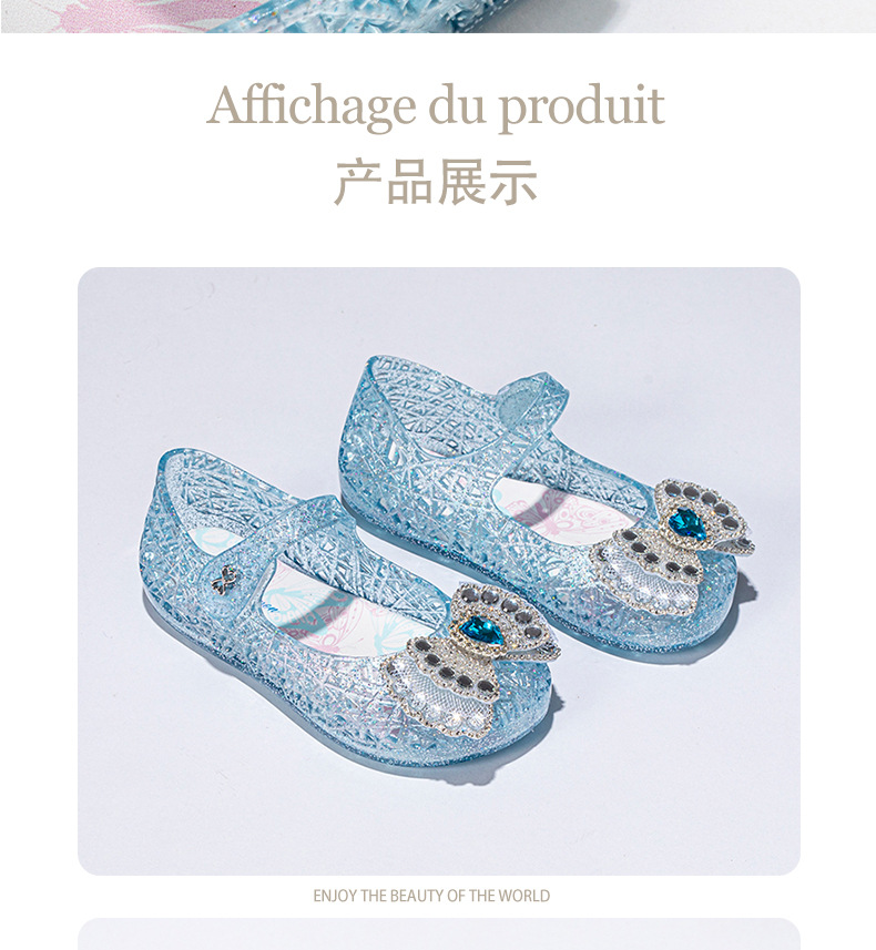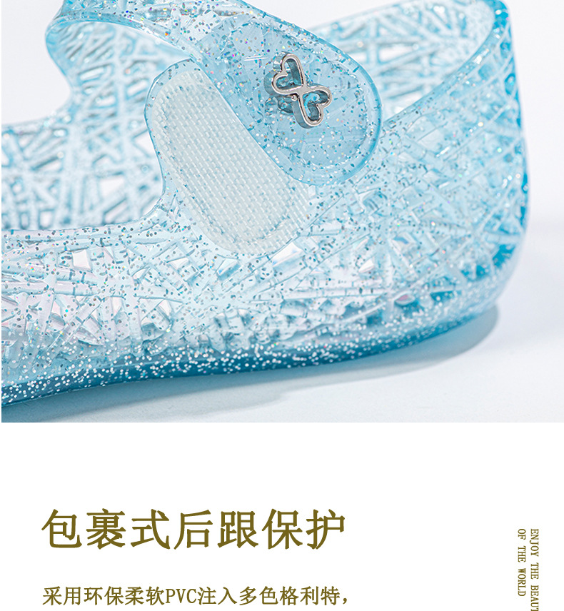 공주 엘사 소녀 샌들 2024 새로운 여름 패션 부드러운 바닥 인기있는 인기있는 어린이 크리스탈 신발 중형 및 대형 어린이 신발