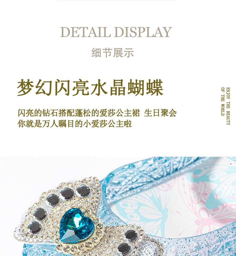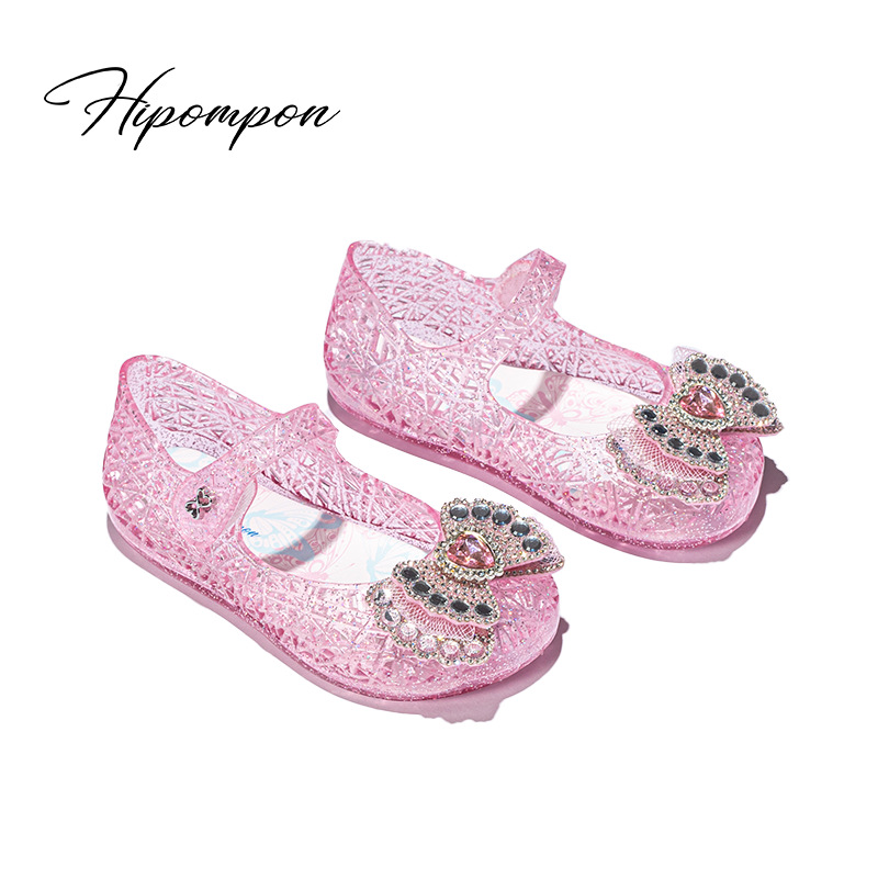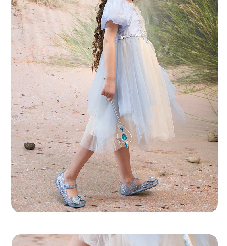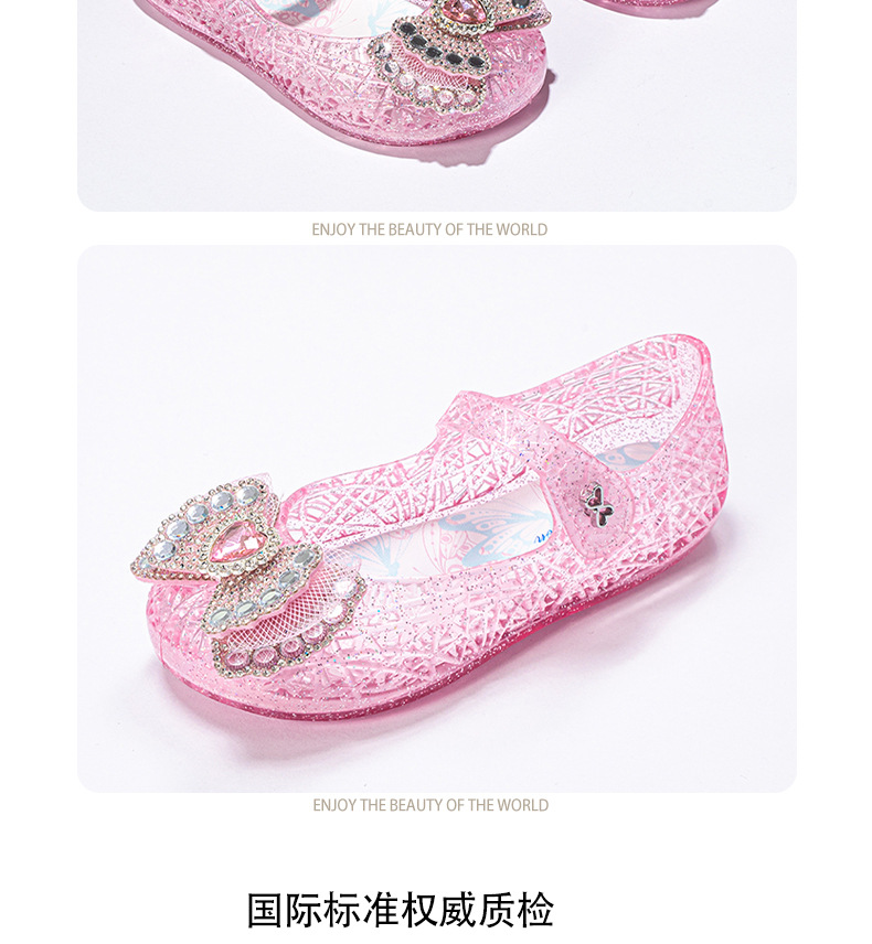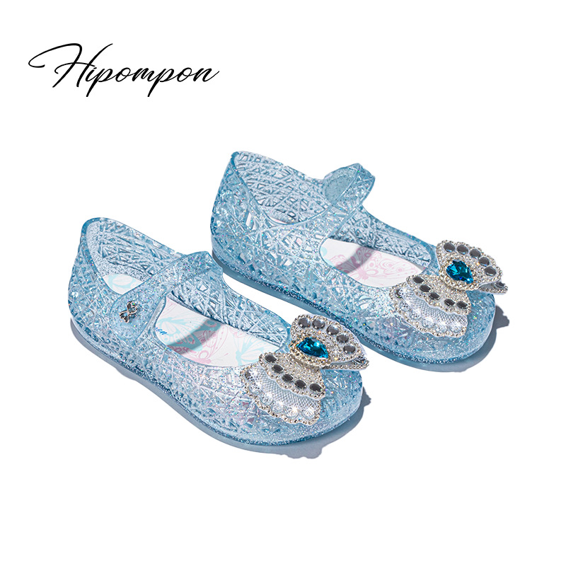 공주 엘사 소녀 샌들 2024 새로운 여름 패션 부드러운 바닥 인기있는 인기있는 어린이 크리스탈 신발 중형 및 대형 어린이 신발