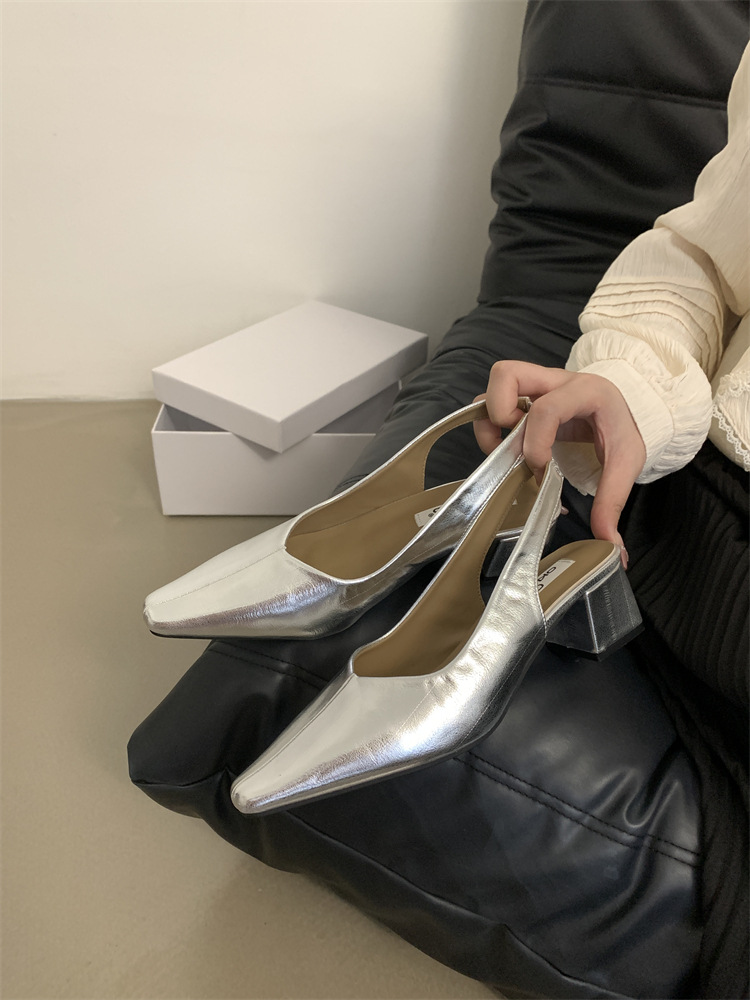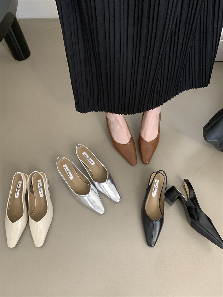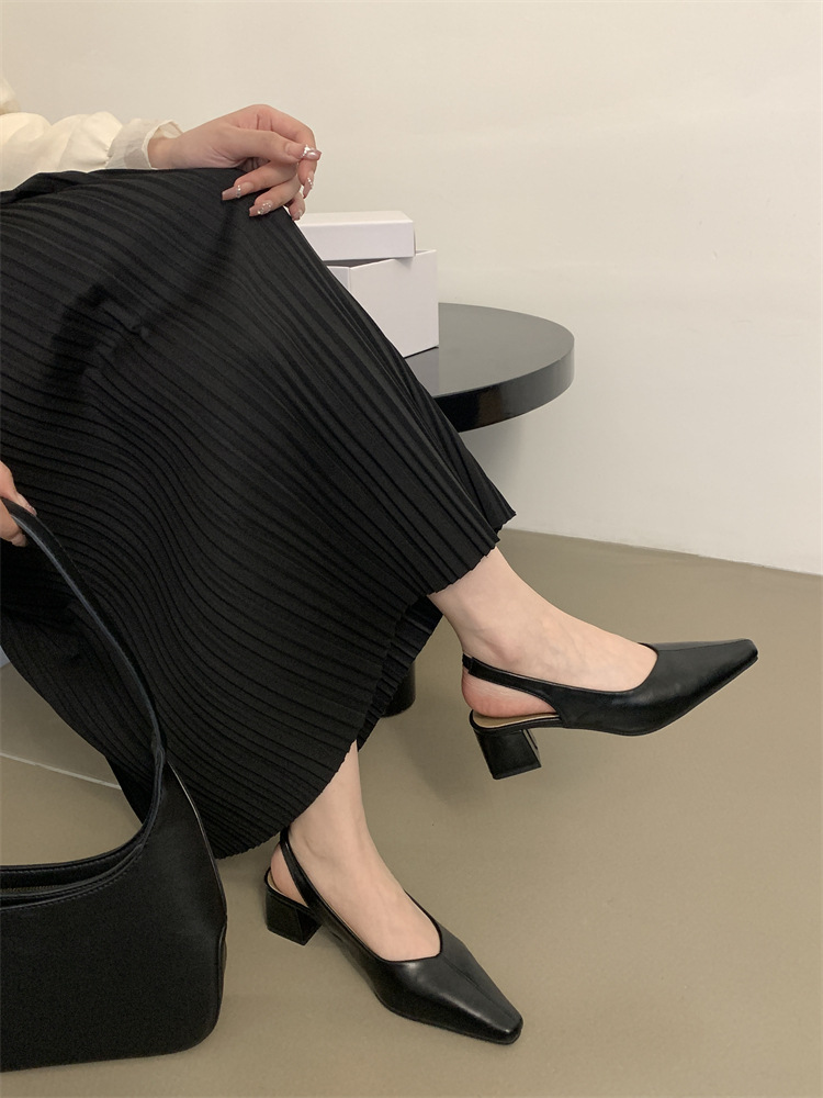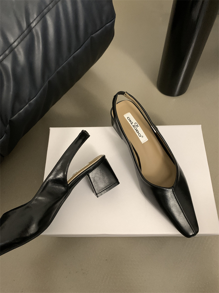 프랑스 스타일의 우아한 청키 힐 하이힐 싱글 레이어 신발 봄과 가을 2024 새로운 저녁 바람 부드러운 신발 Mary Jane 여성 신발스토어 가기