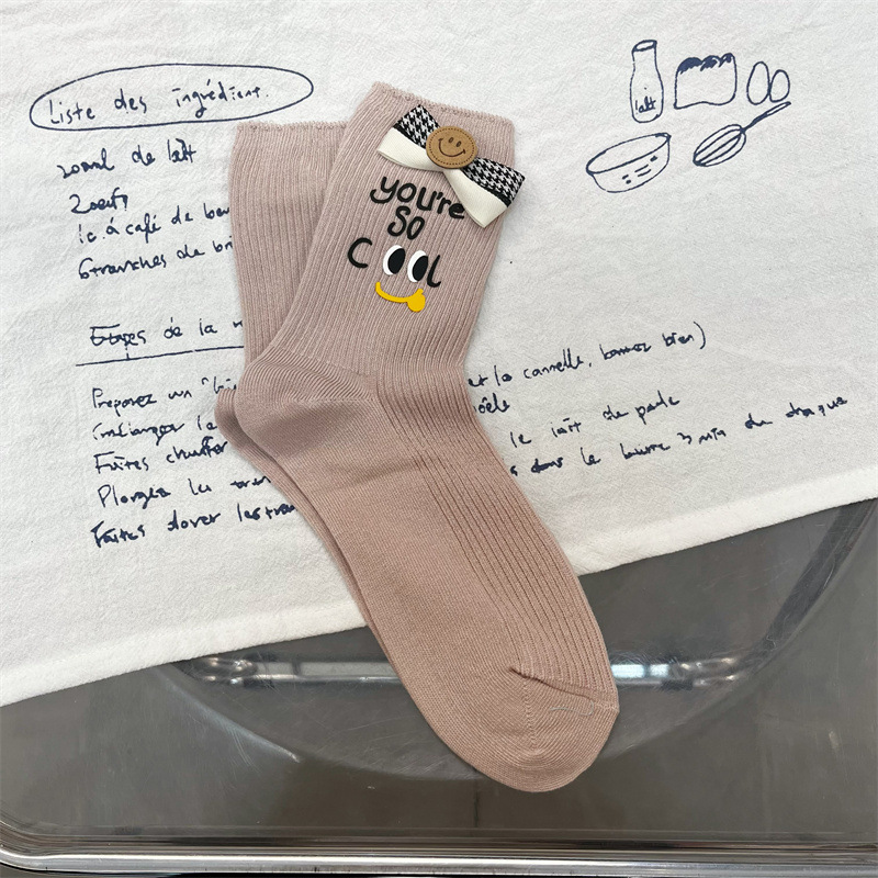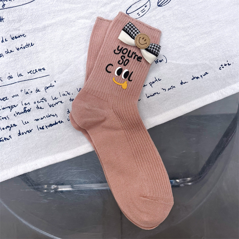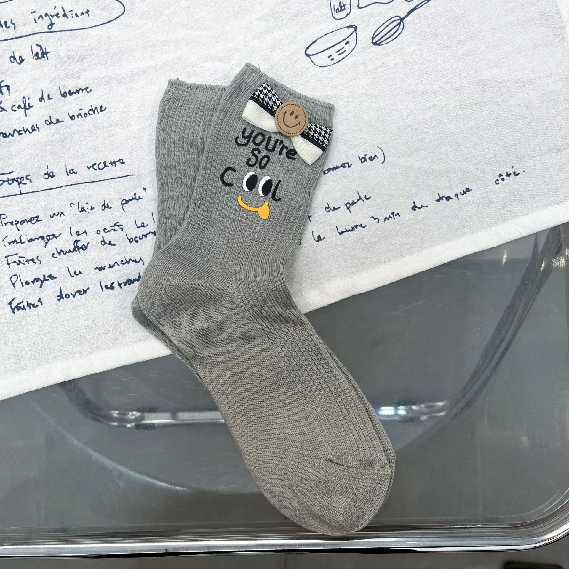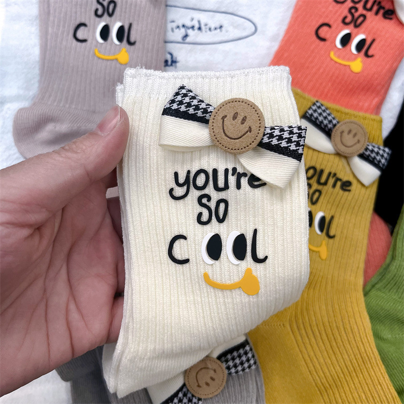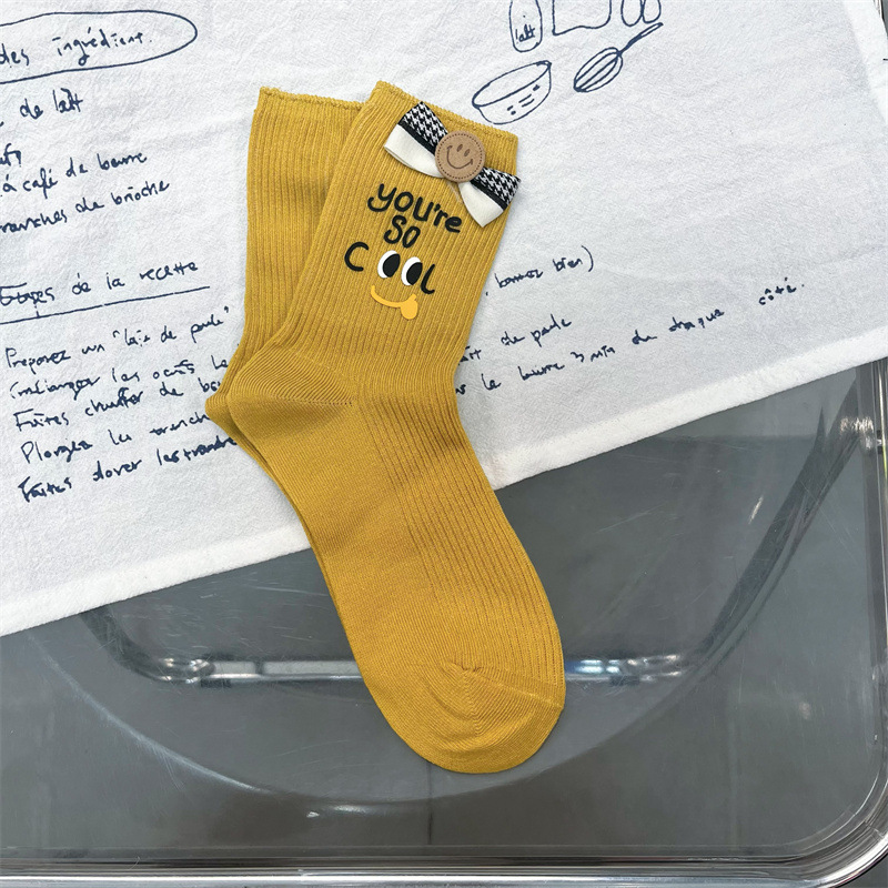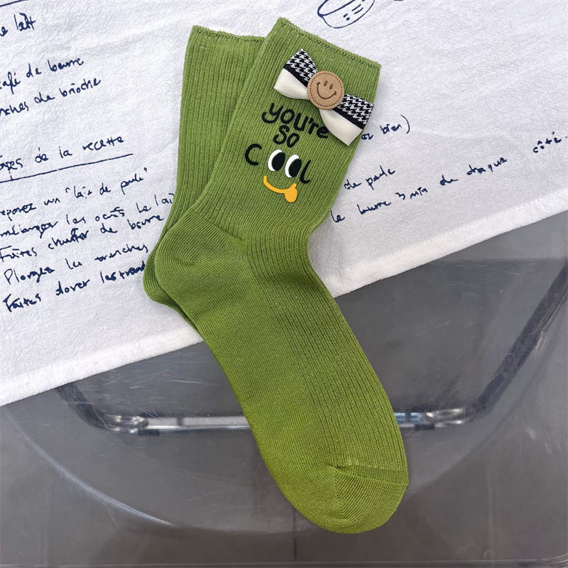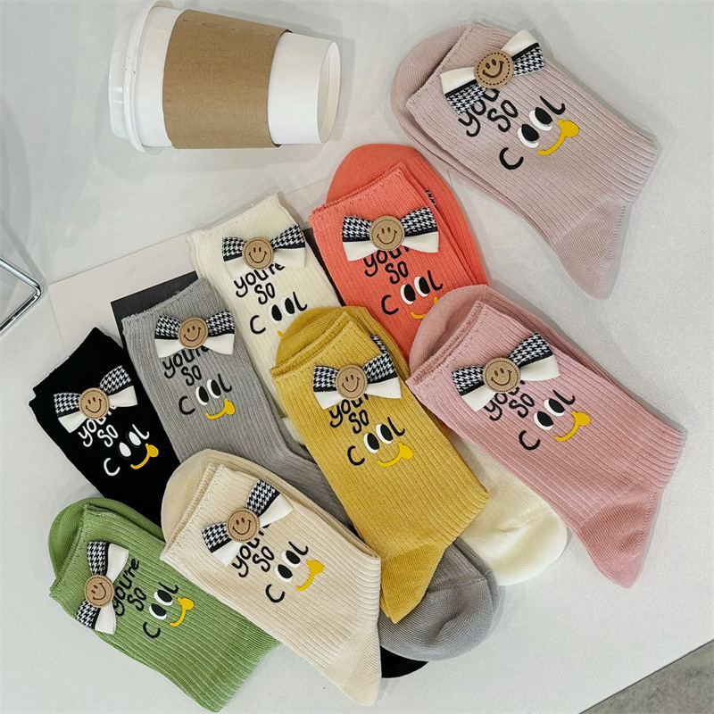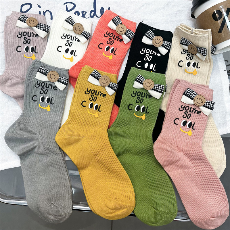 2024春夏跨女袜欧货可爱蝴蝶结烫印搞怪表情糖果色个性甜美潮袜
