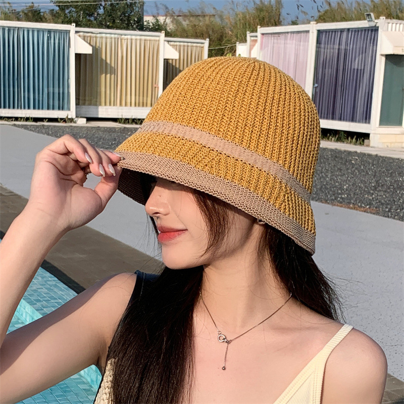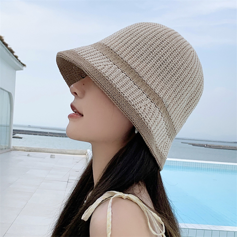 한국 모자 여름 니트 얇은 어부 모자 태양 보호 여성 버킷 모자 접이식 여행 태양 모자 대학 스타일스토어 가기